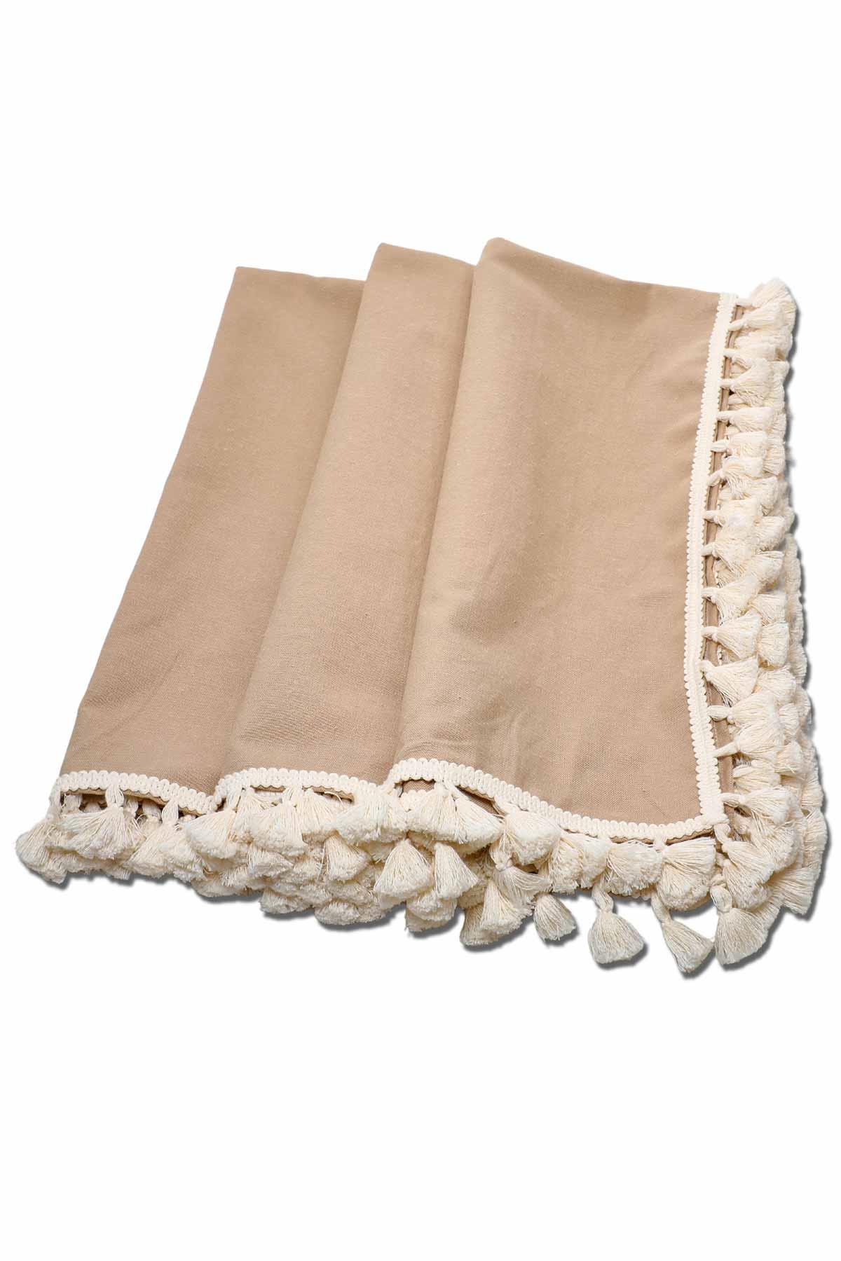 160x220 Püsküllü Masa Örtüsü,M-1B Bej