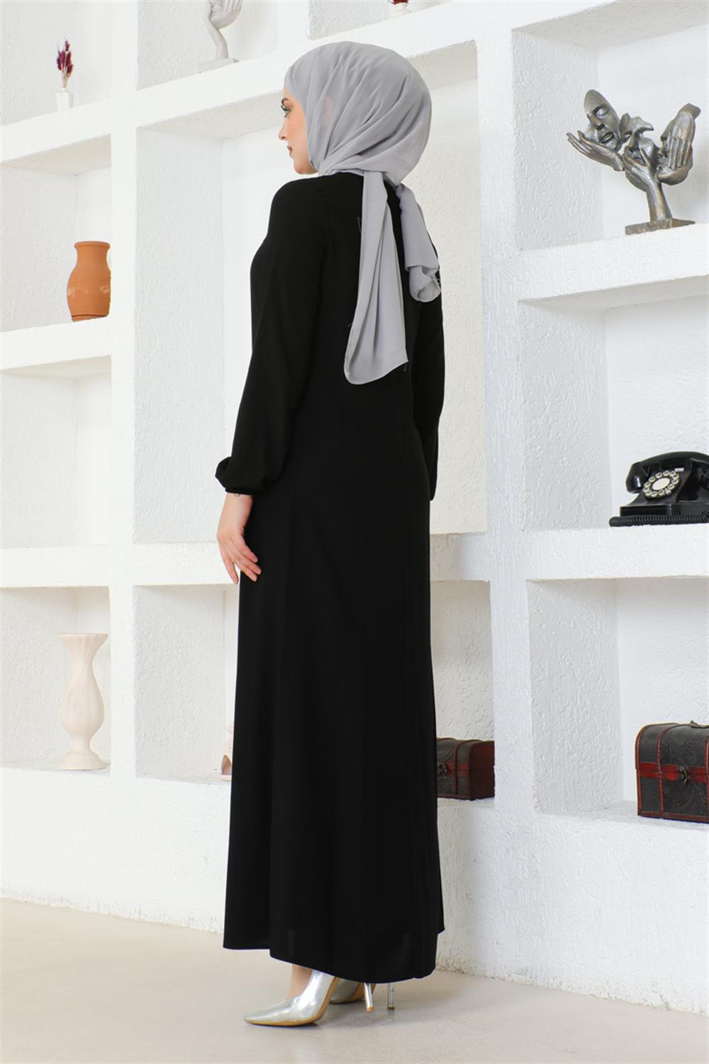 A Pile Viskon Elbise SİYAH