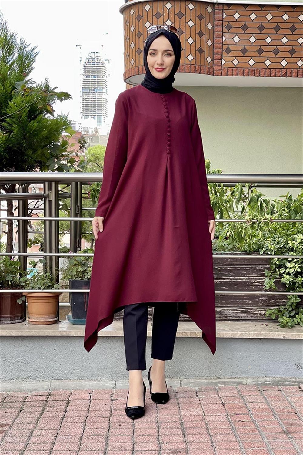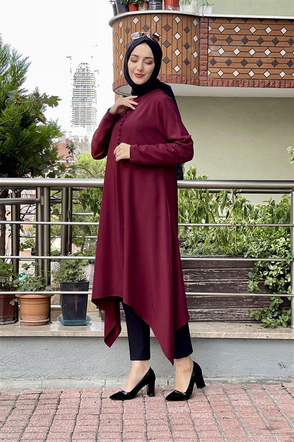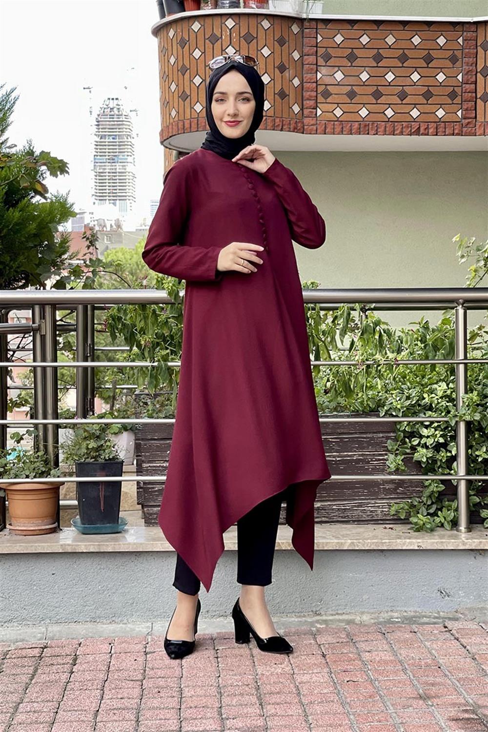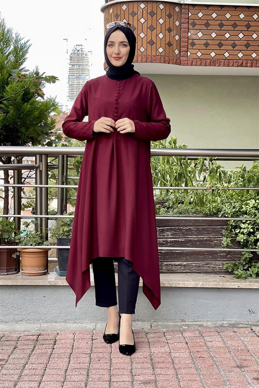 Aksesuar Düğmeli Tesettür Tunik Bordo