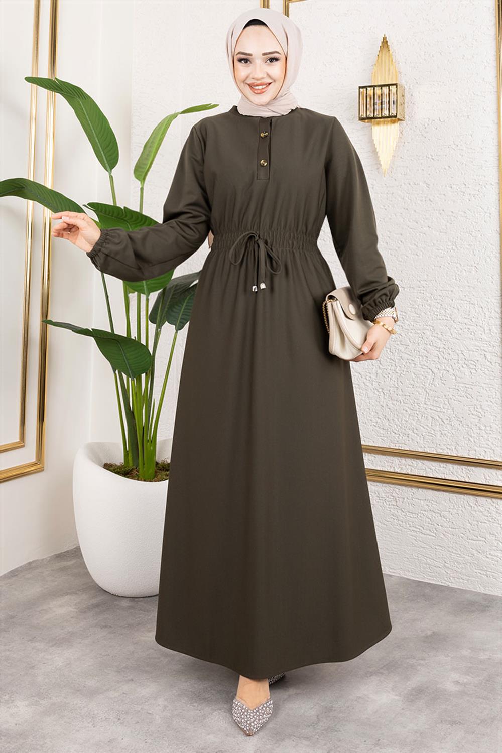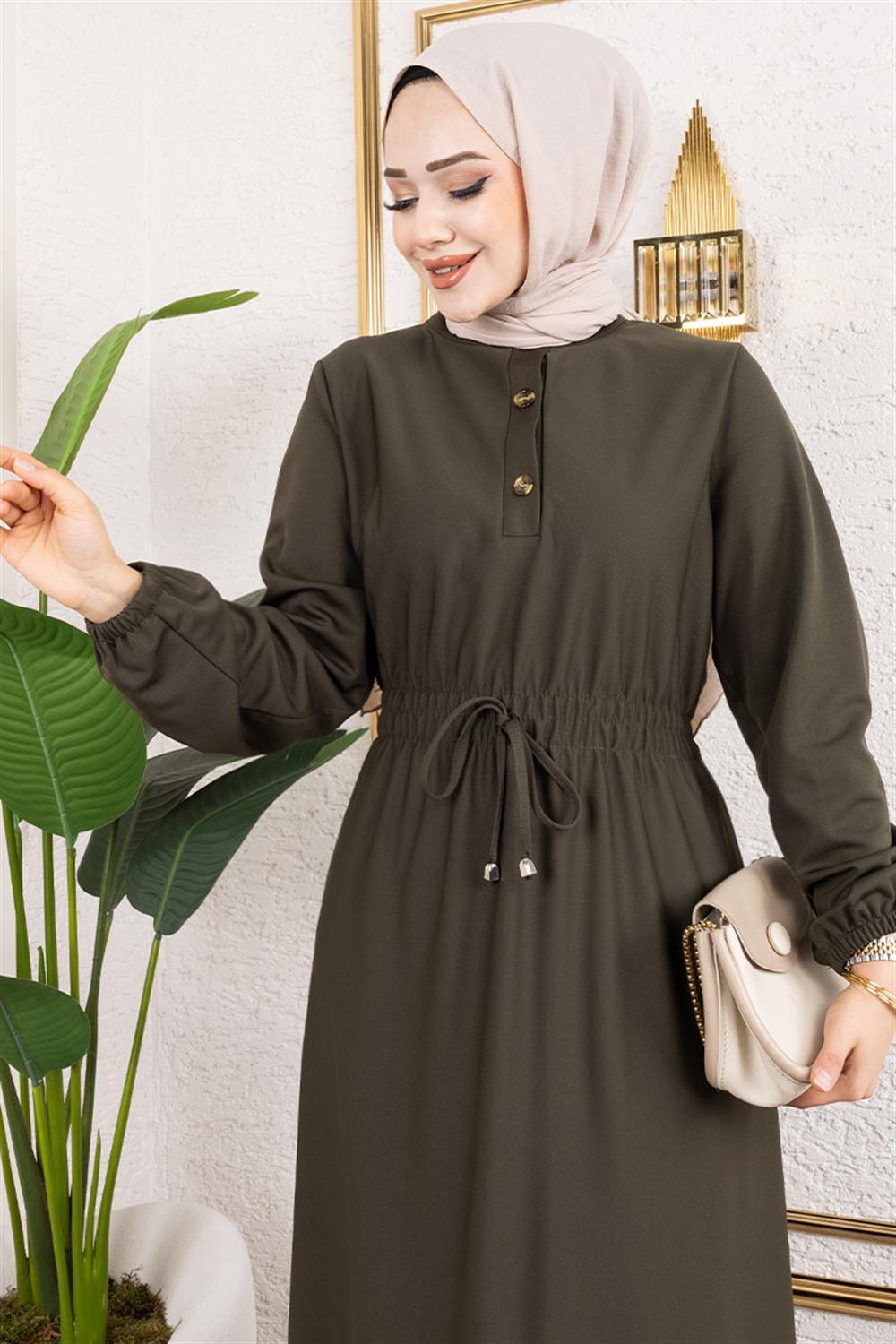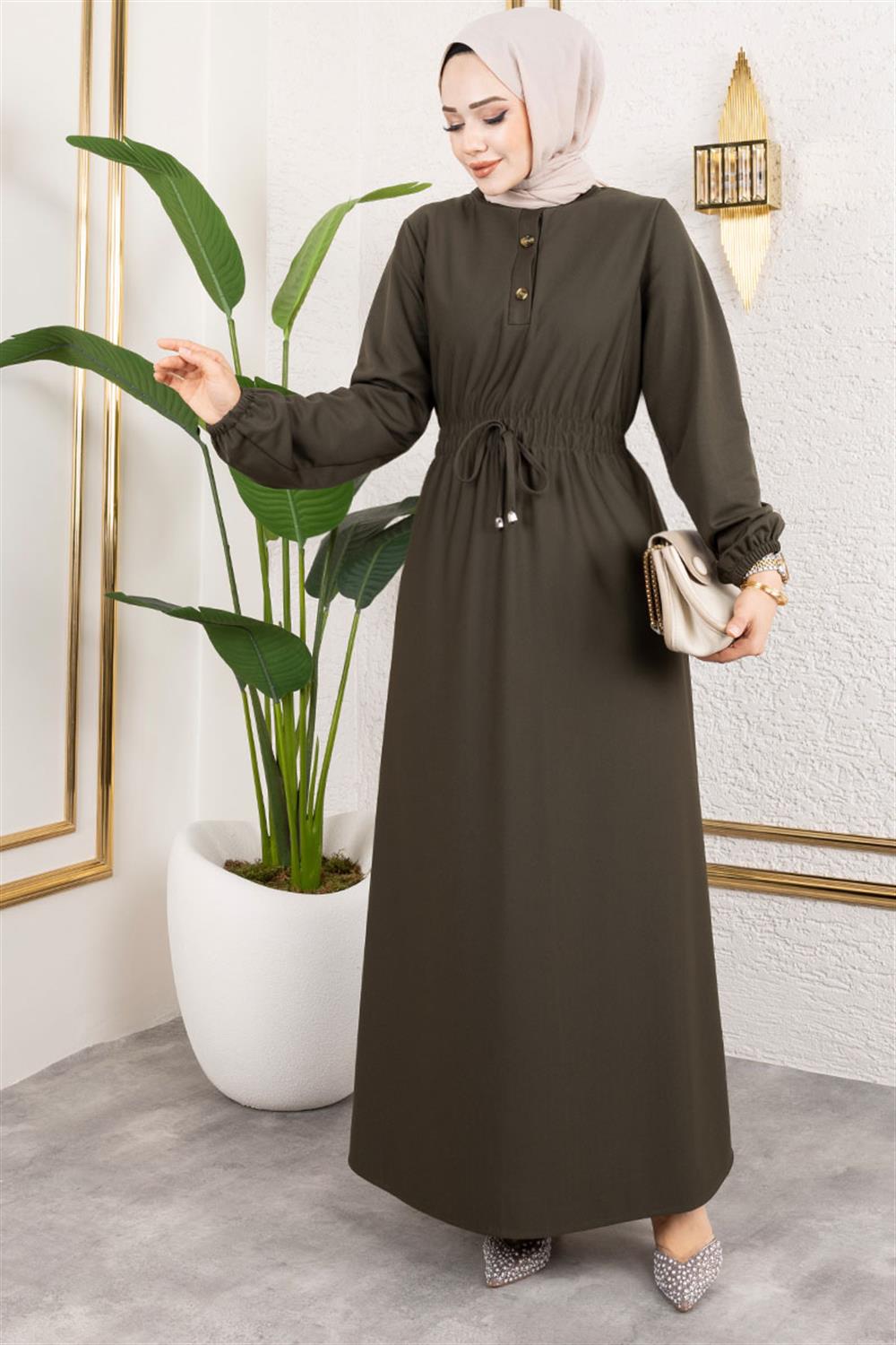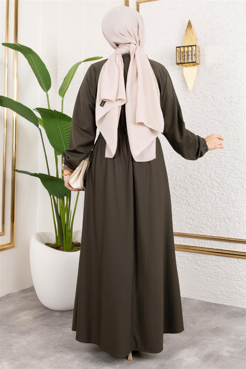 Bade Büzgülü Elbise HAKİ