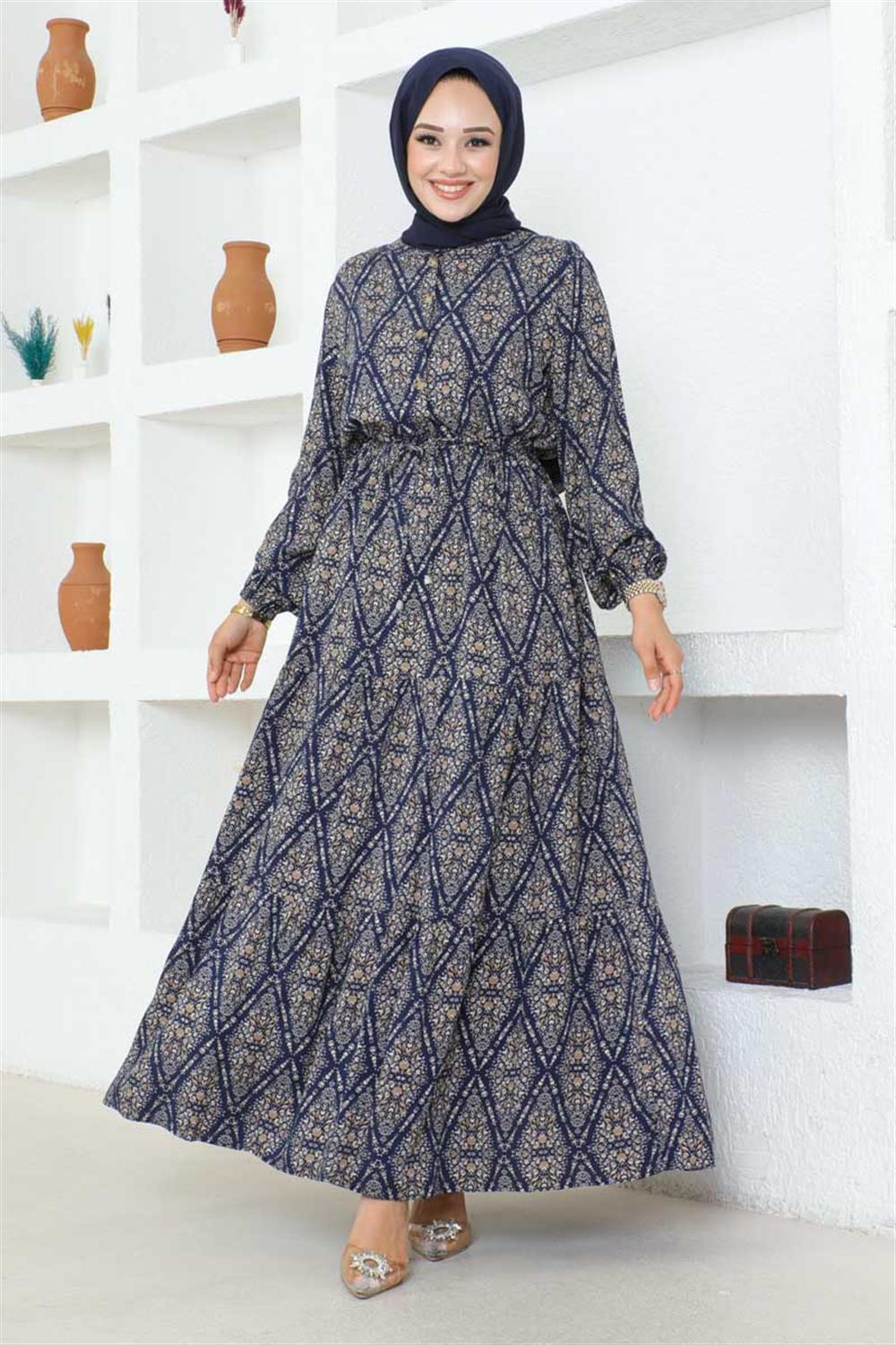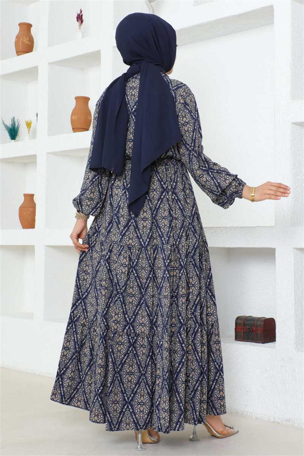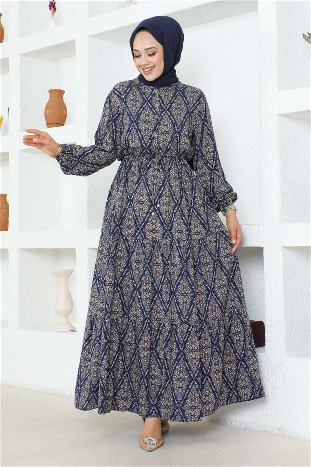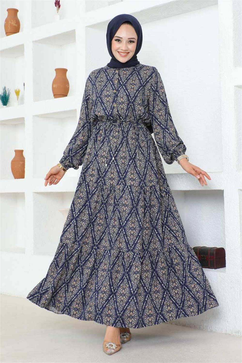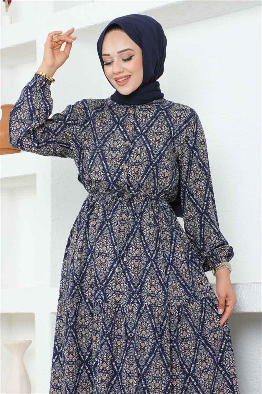 Bağcıklı Desenli Viskon Elbise