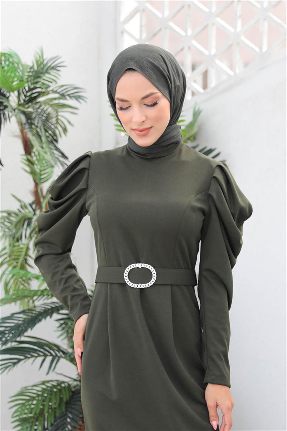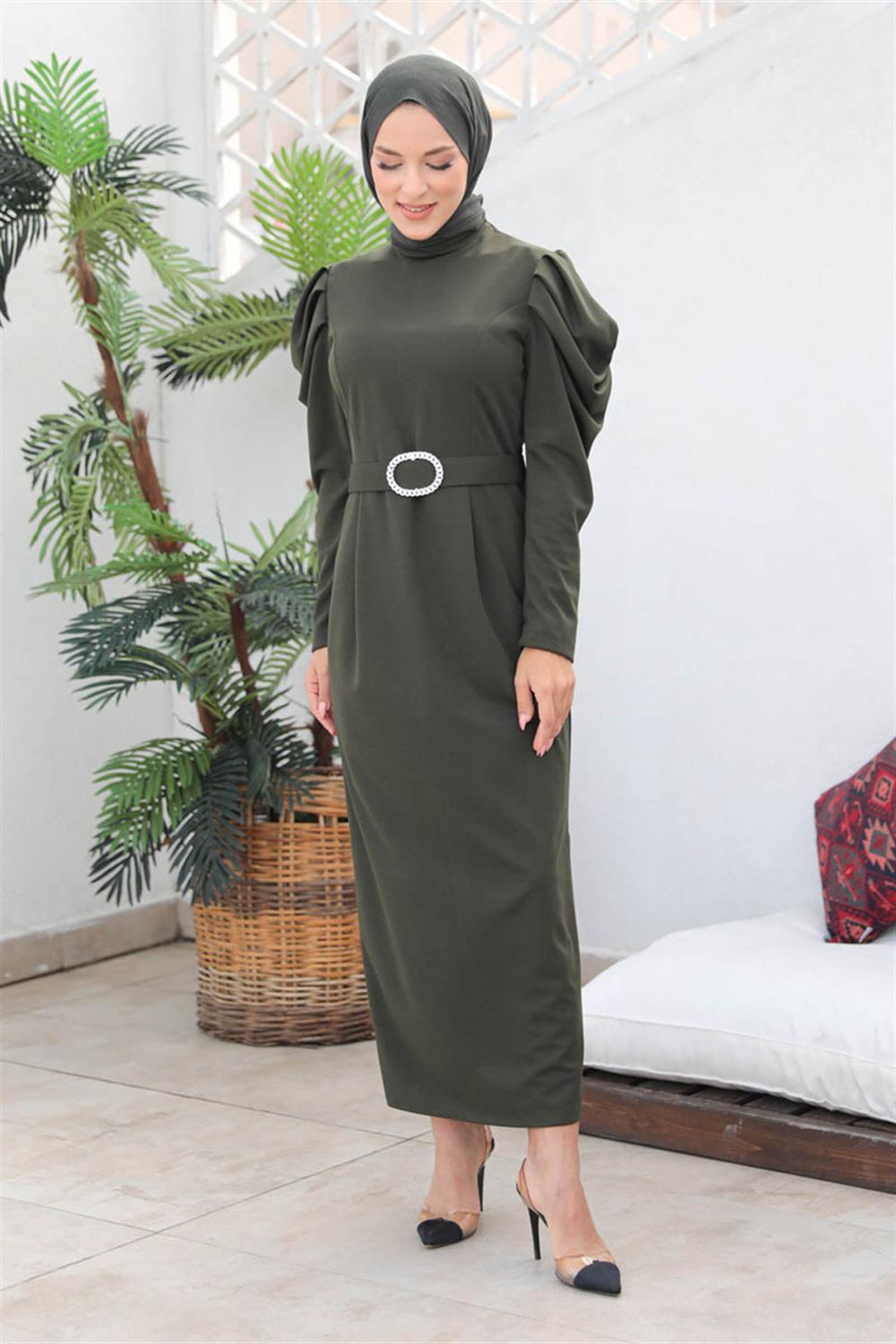 Balon Kol Elbise HAKİ
