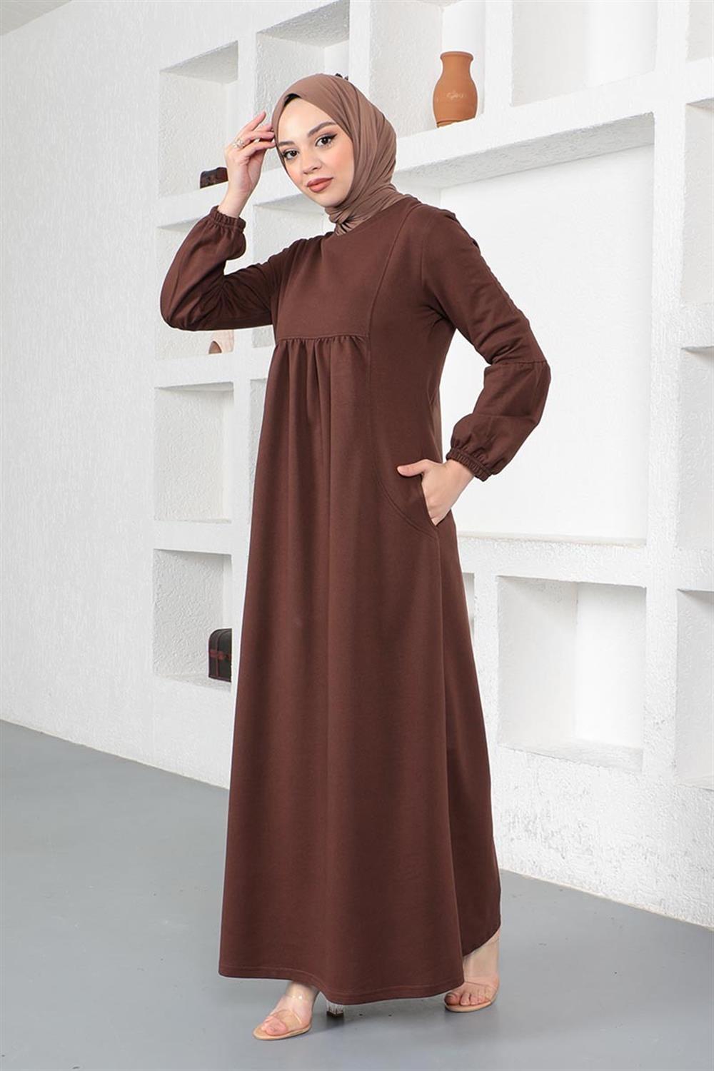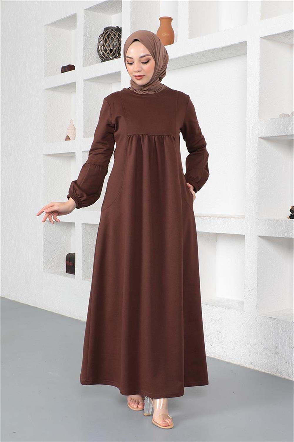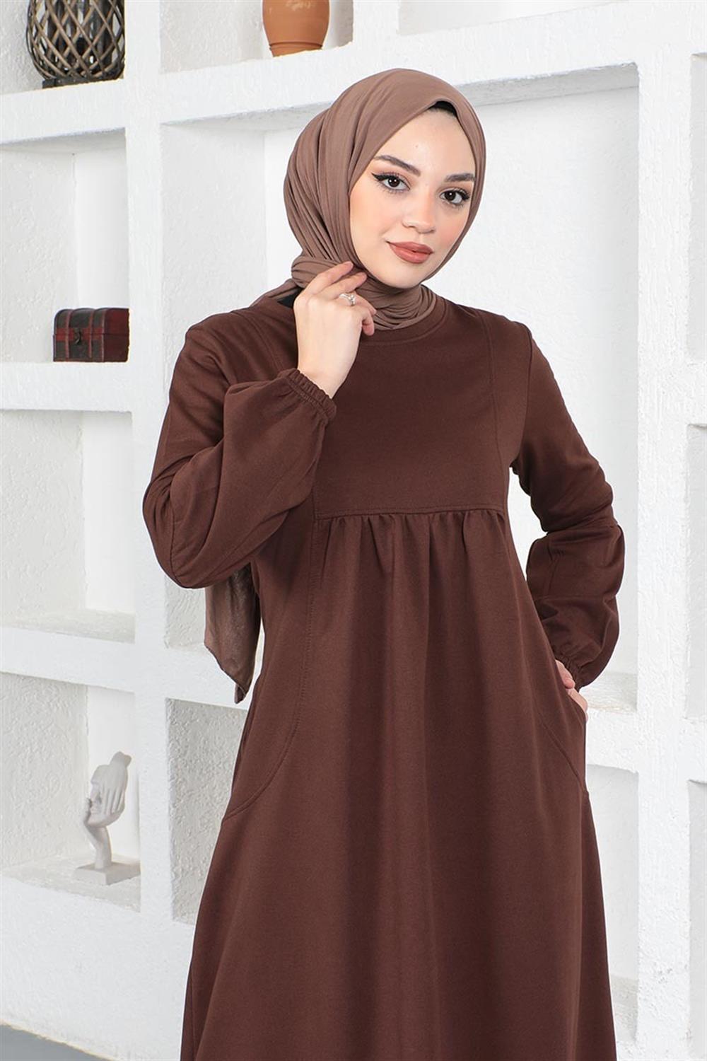 Balon Kol Spor Elbise KAHVERENGİ