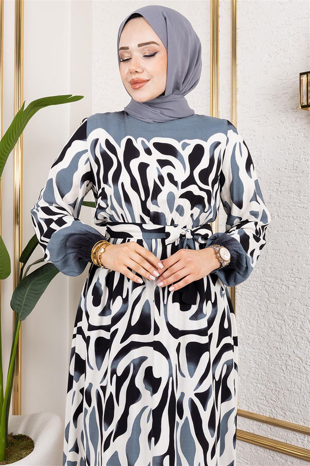 • Batik Desenli Tesettür Elbise