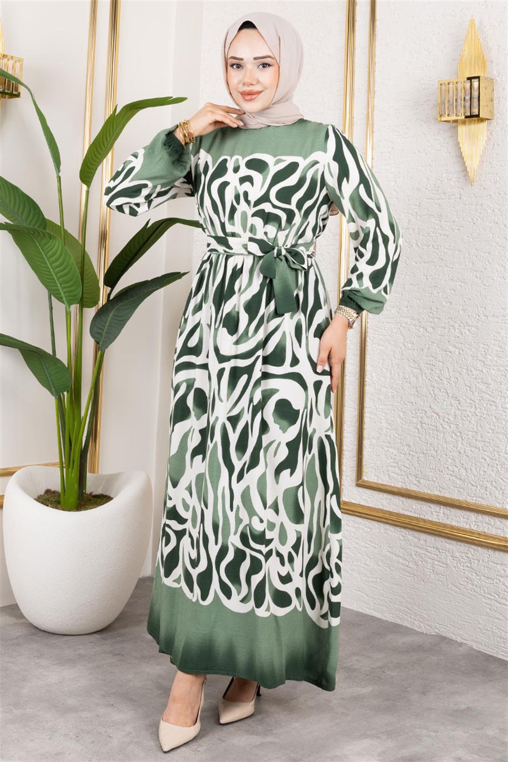 Beli Lastikli Desenli Elbise, dört mevsim kullanabileceğiniz zarif bir tesettür modelidir. Viskon kumaş kullanılarak üretilmiş olan bu elbise, hem konforlu hem de şık bir seçim sunuyor. Bisiklet yaka ve sırttan düğmeli tasarımı ile dikkat çekerken, astarsız yapısı ile hafif ve rahat bir kullanım sağlar. Elbise, elde yıkama ile temizlenmelidir ve kafadan geçirilerek giyilir. Boyu 165 cm, göğüs çevresi 80 cm, bel ölçüsü 68 cm, basen ölçüsü 96 cm olan modelin manşetleri lastikli tasarıma sahiptir. Ayrıca, dalgalanmayı önleyen dikili uçları ile kemer tasarımı ürüne zarafet katmakta ve isteğe bağlı olarak çıkarılabilir.