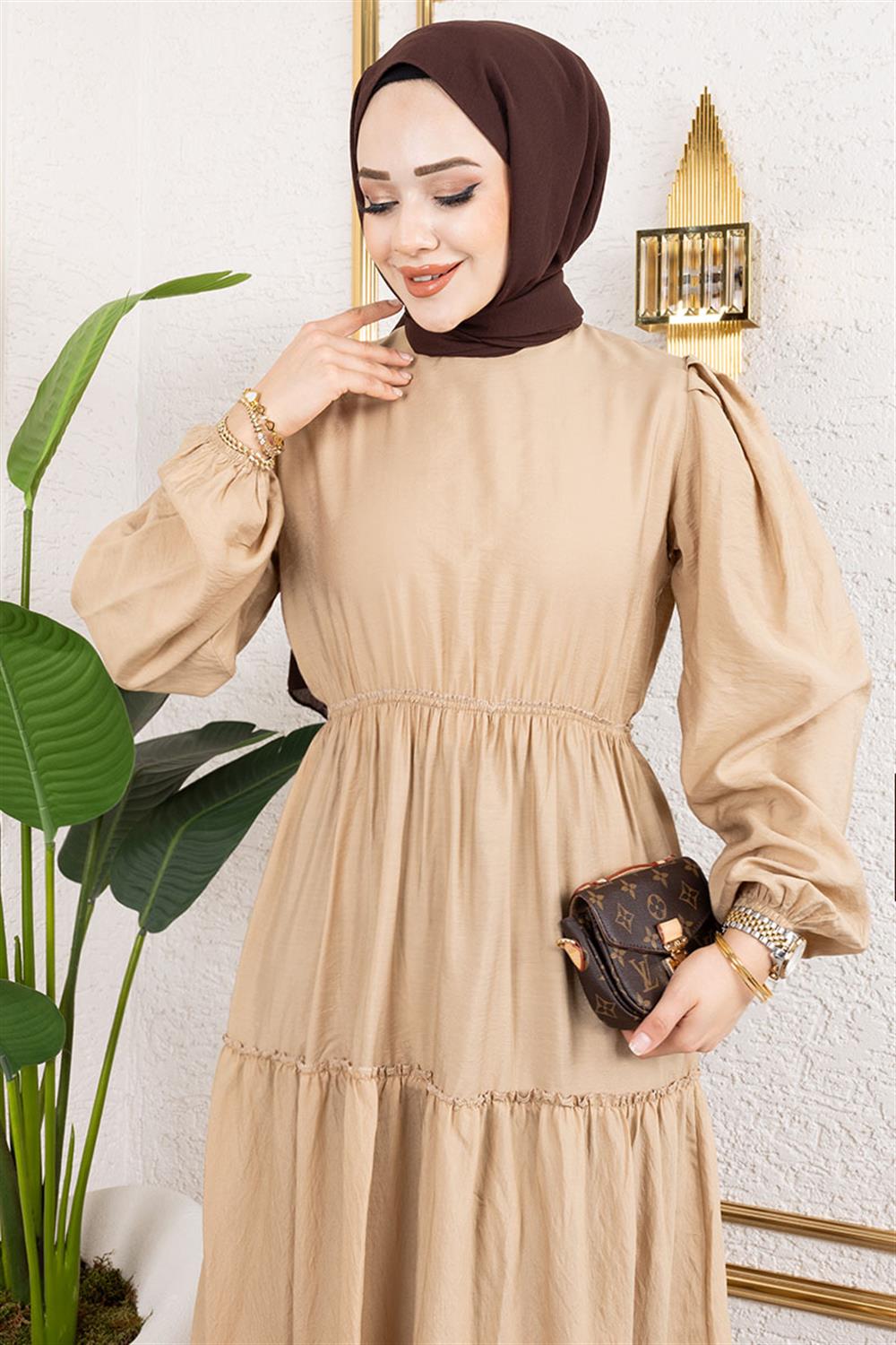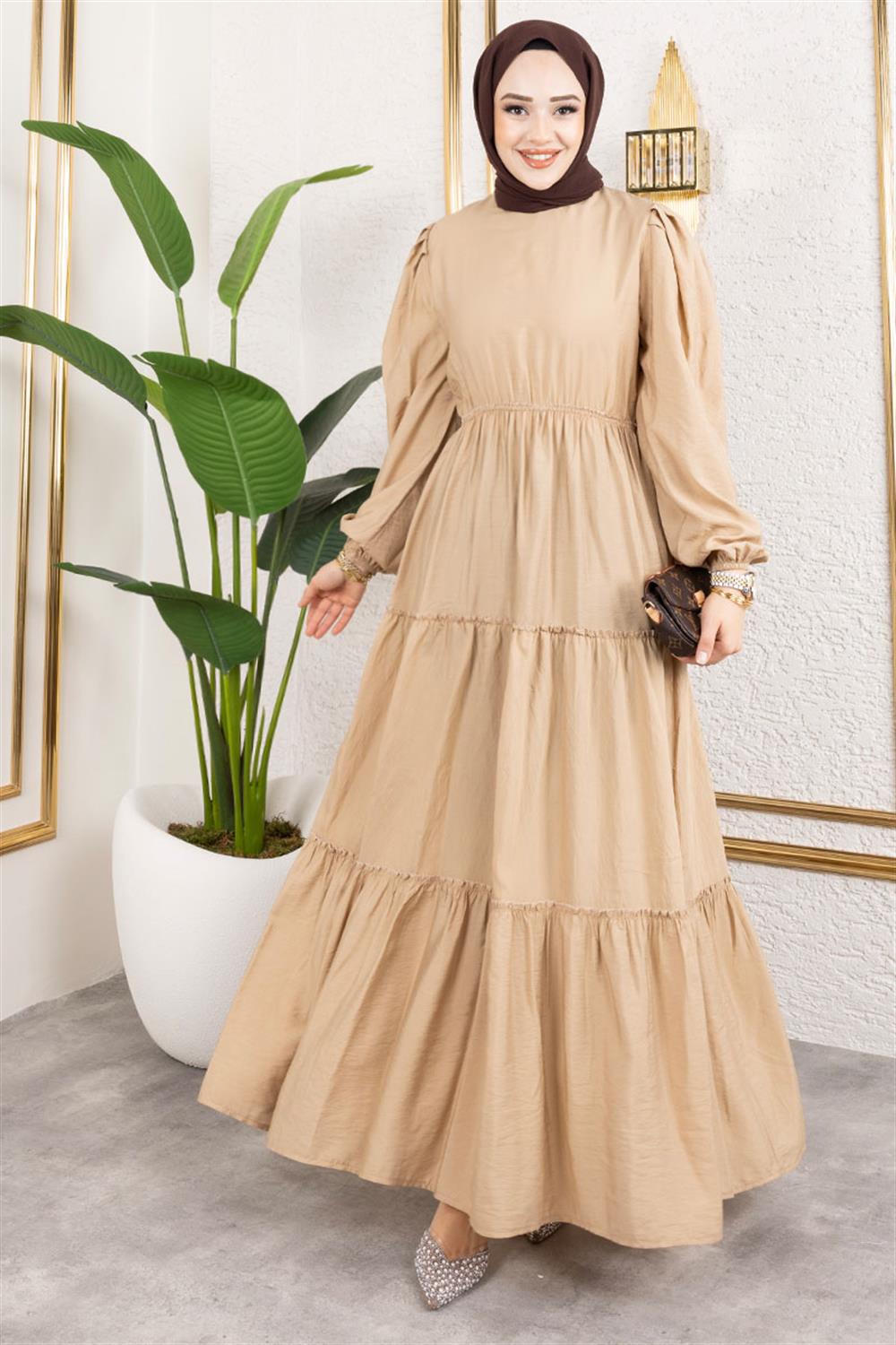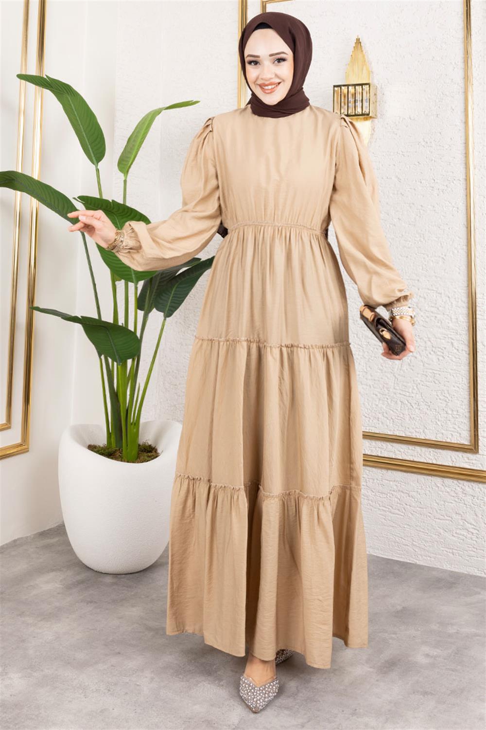 Beli Lastikli Tesettür Elbise