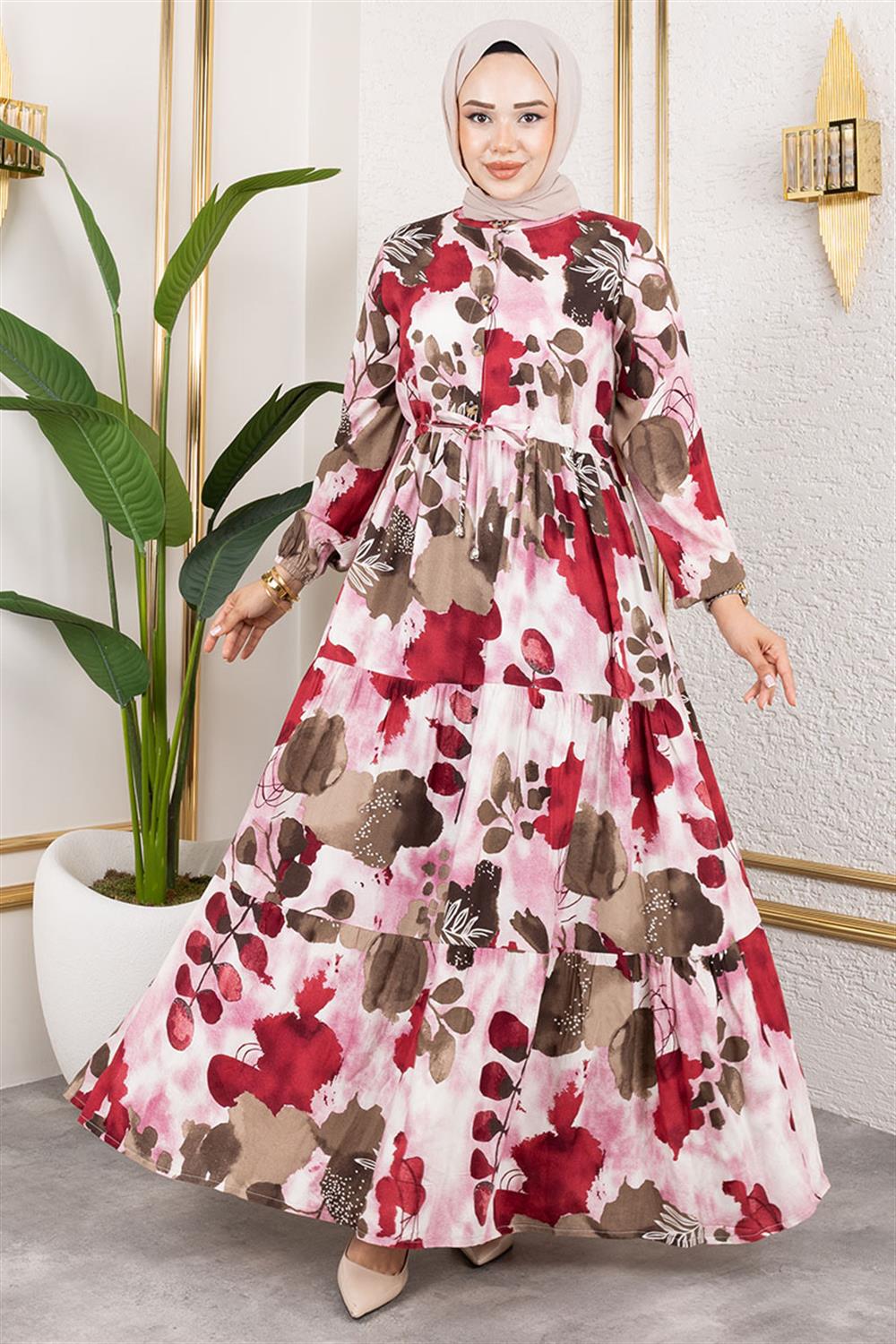 Beli Tünelli Tesettür Elbise