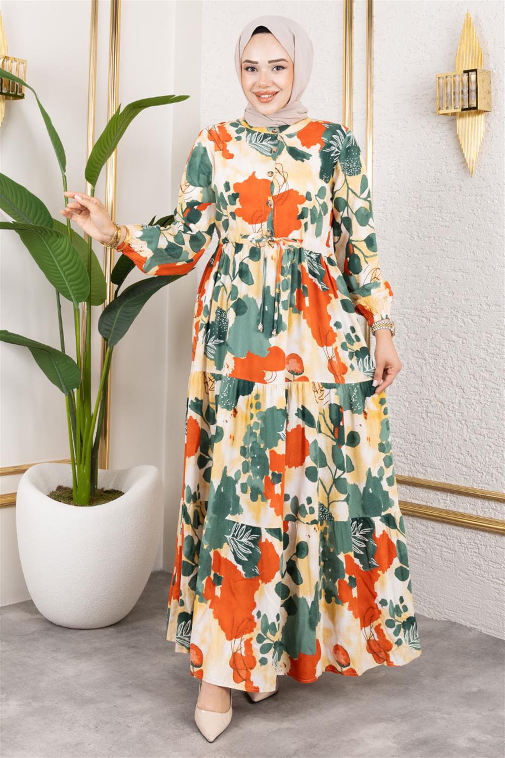 Beli Bağcıklı Viskon Elbise, dört mevsim rahatlıkla kullanabileceğiniz, tesettür tasarımına sahip şık bir seçenektir. Yumuşak viskon kumaşı, bisiklet yakası ve yarım düğmeli ön kısmı ile modern ve fonksiyonel bir görünüm sunar. Elde yıkama önerilen bu elbise, astarsız yapısıyla hafif ve konforlu bir kullanım sağlar. Bağcıklı beli sayesinde vücuda mükemmel uyum sağlayan bu model, manşet lastikli kolları ile de kullanışlıdır.