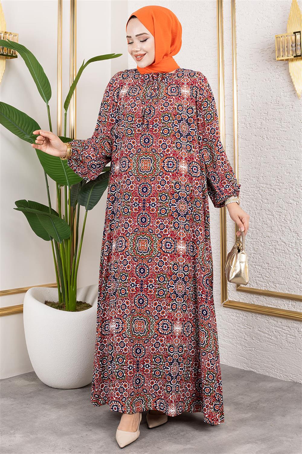 Büyük Beden Desenli Elbise KIRMIZI