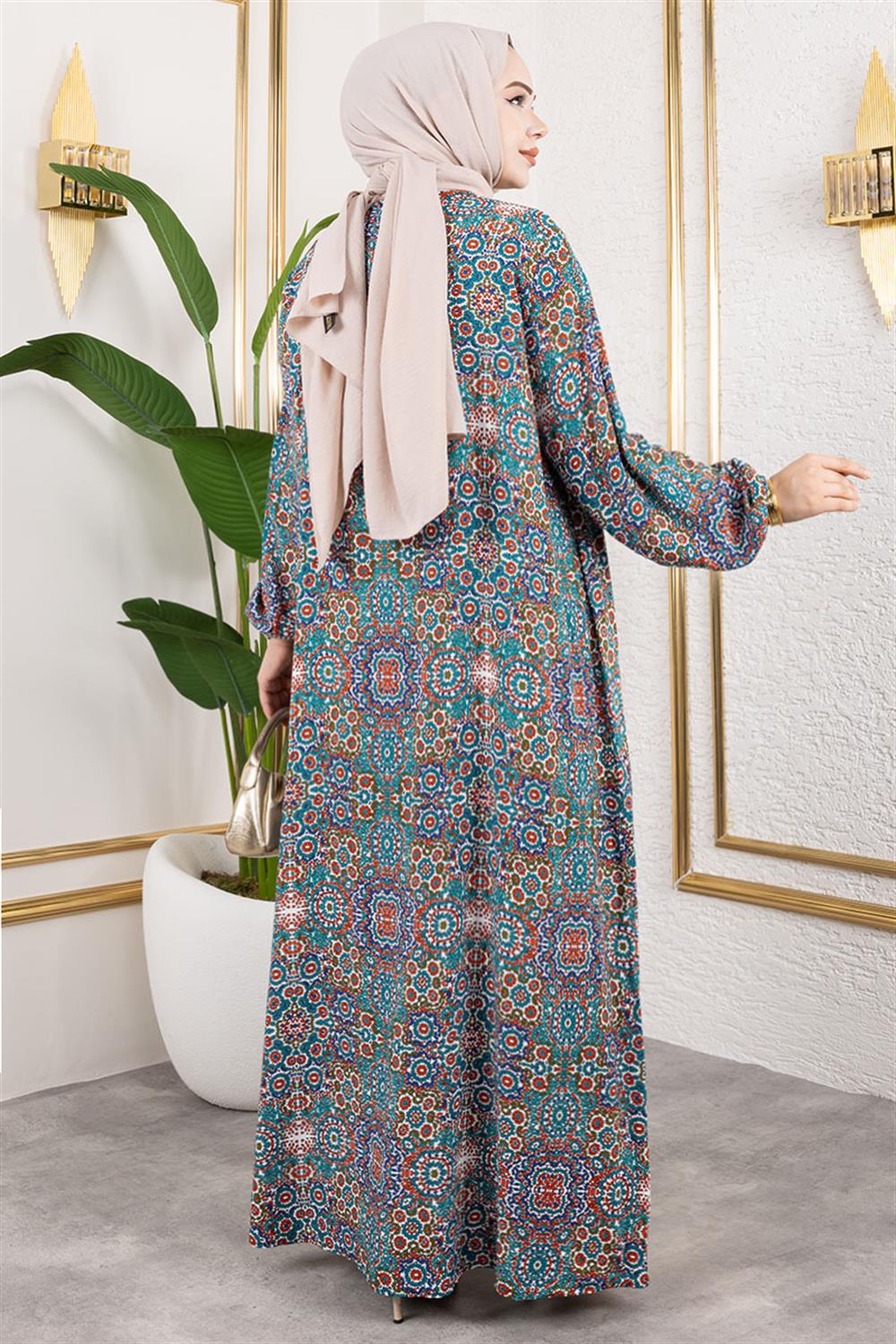 • BÜYÜK BEDEN DESENLİ ELBİSE