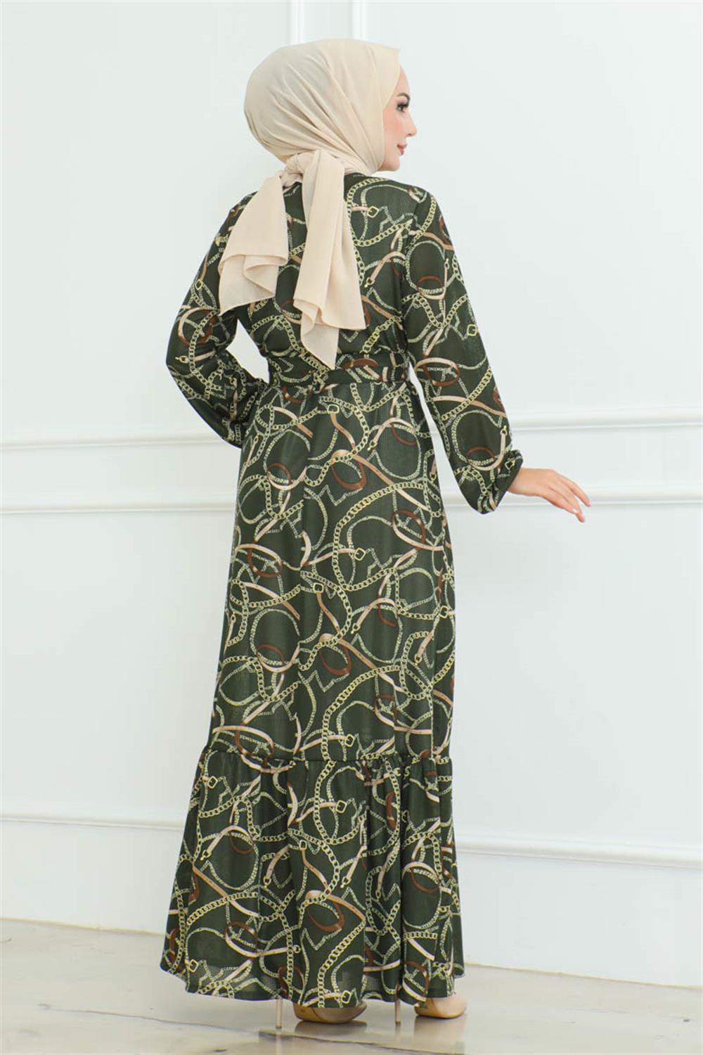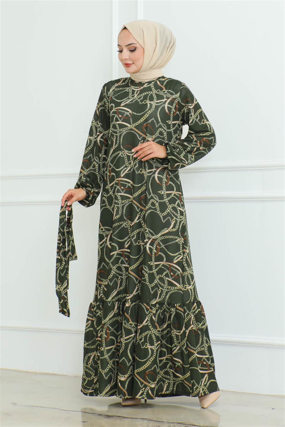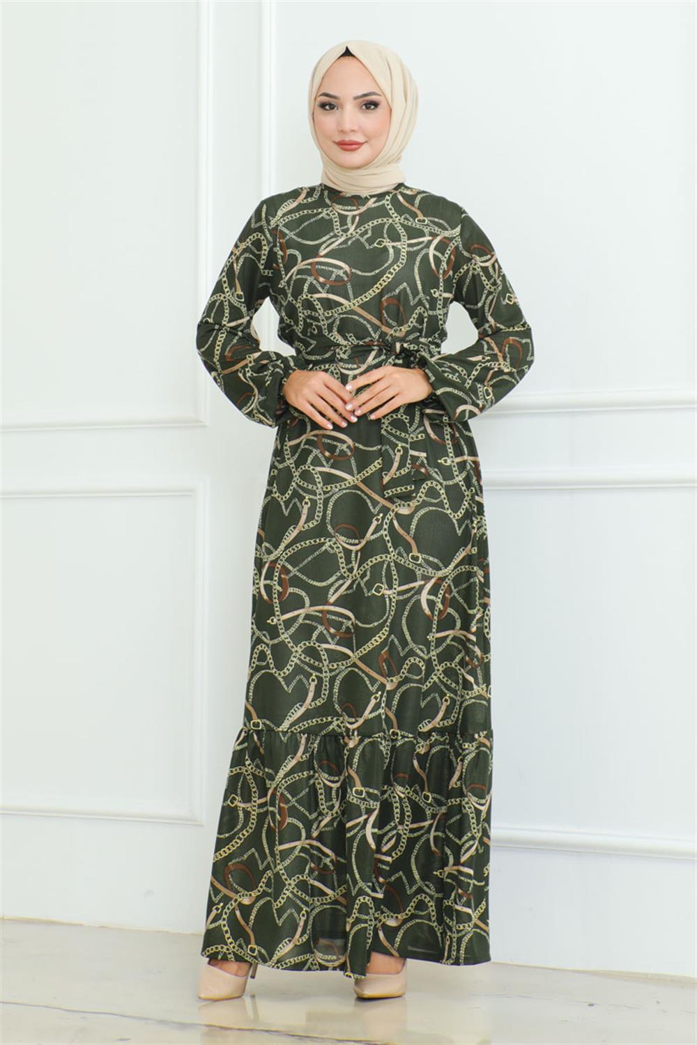 BÜZGÜLÜ ZİNCİR DESENLİ ELBİSE