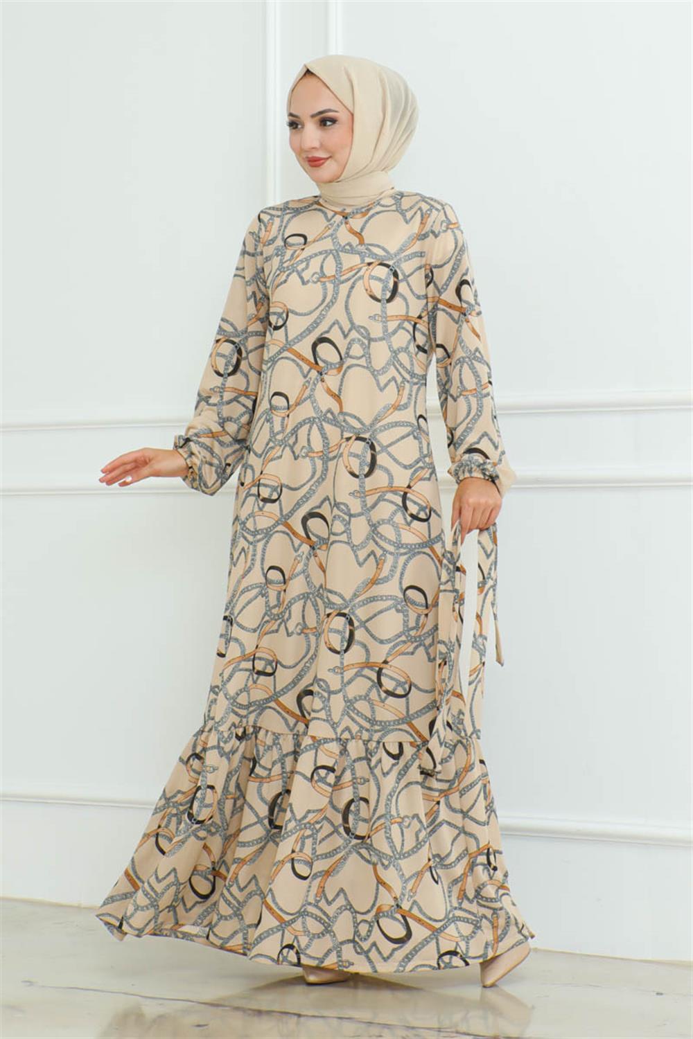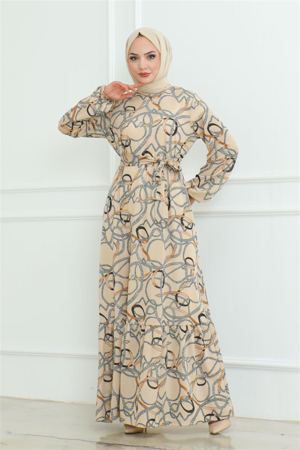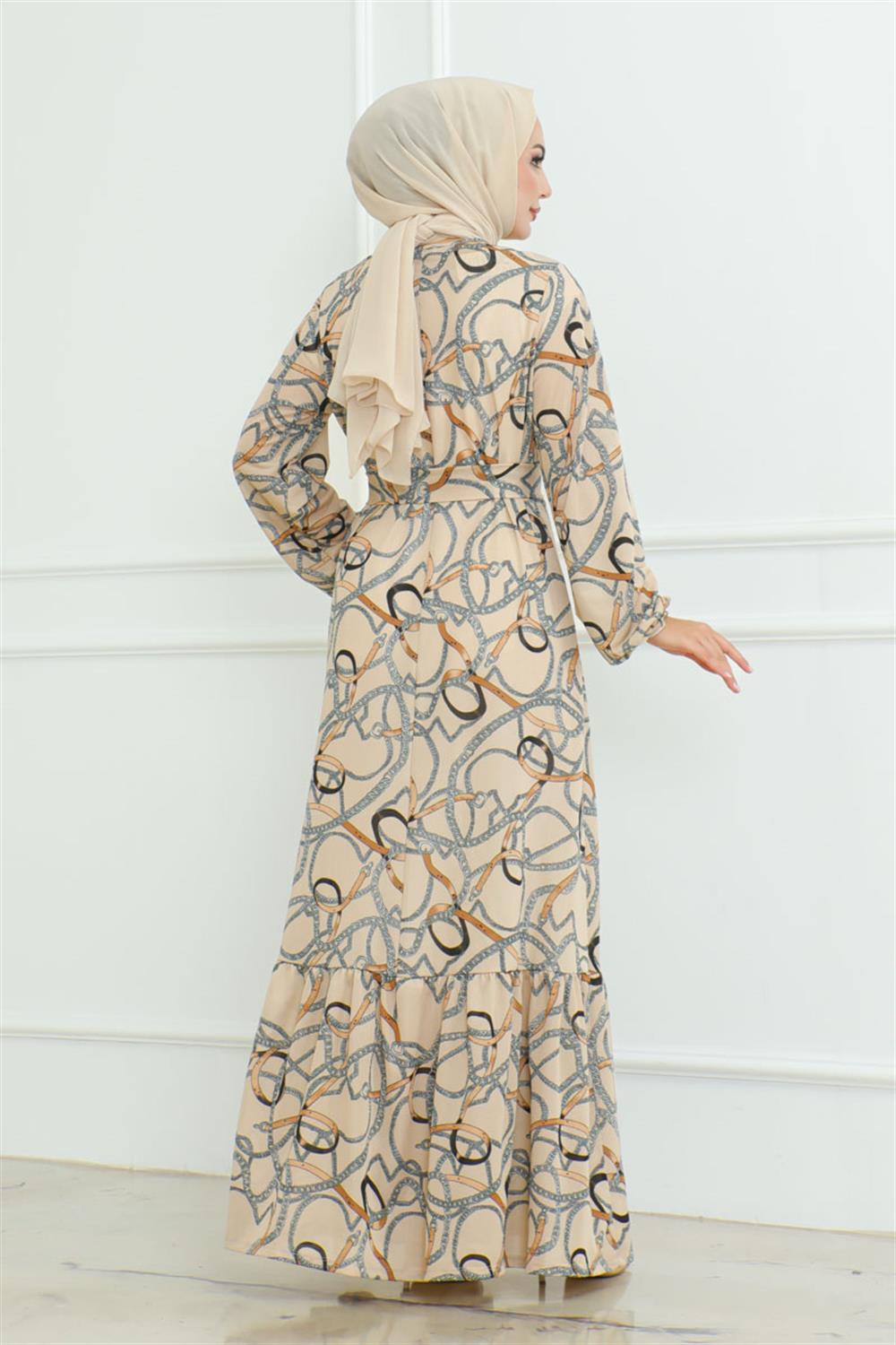 BÜZGÜLÜ ZİNCİR DESENLİ ELBİSE