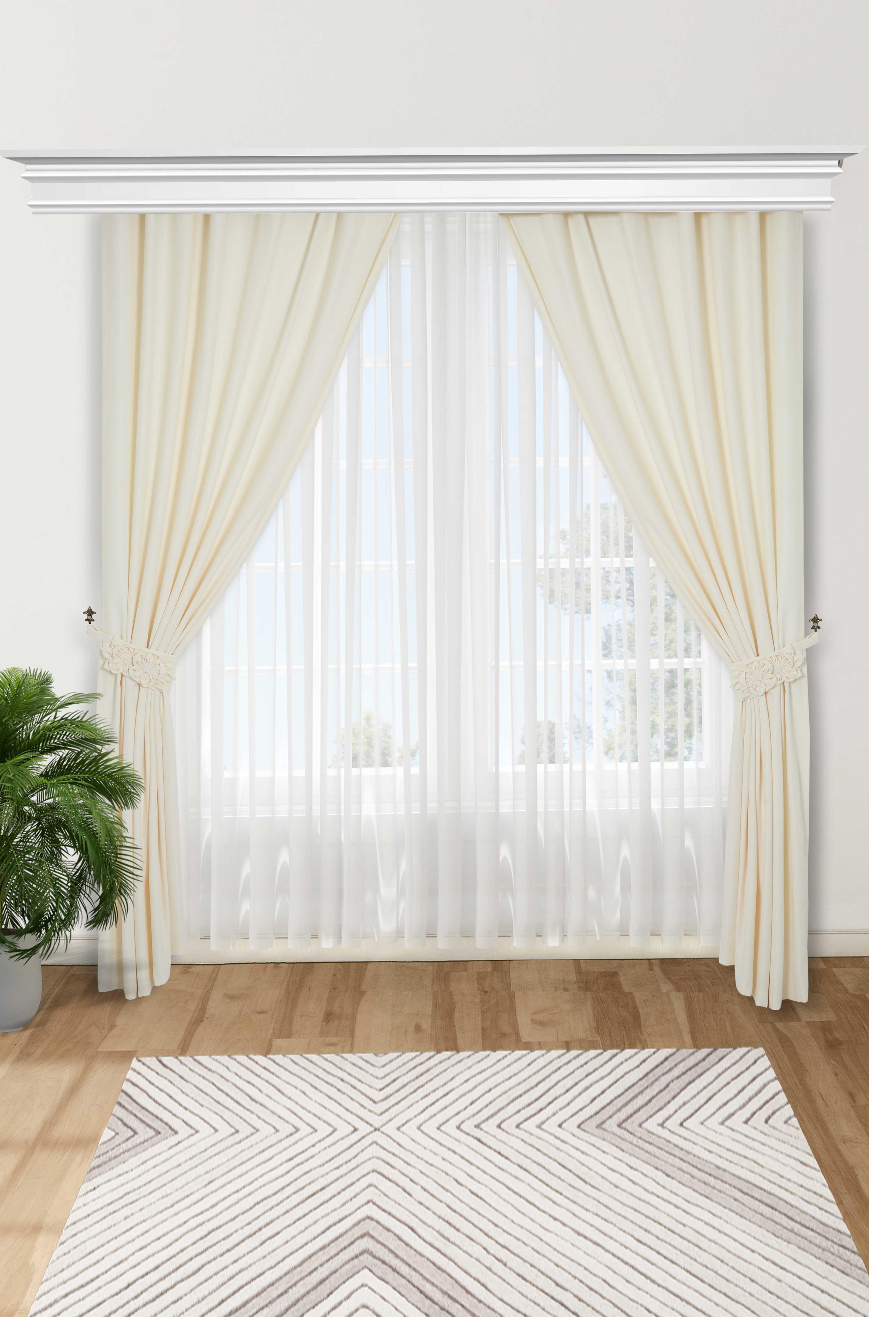 Çiçek Aksesuarlı Fon Perde Çift Kenar,PR-3 Ekru