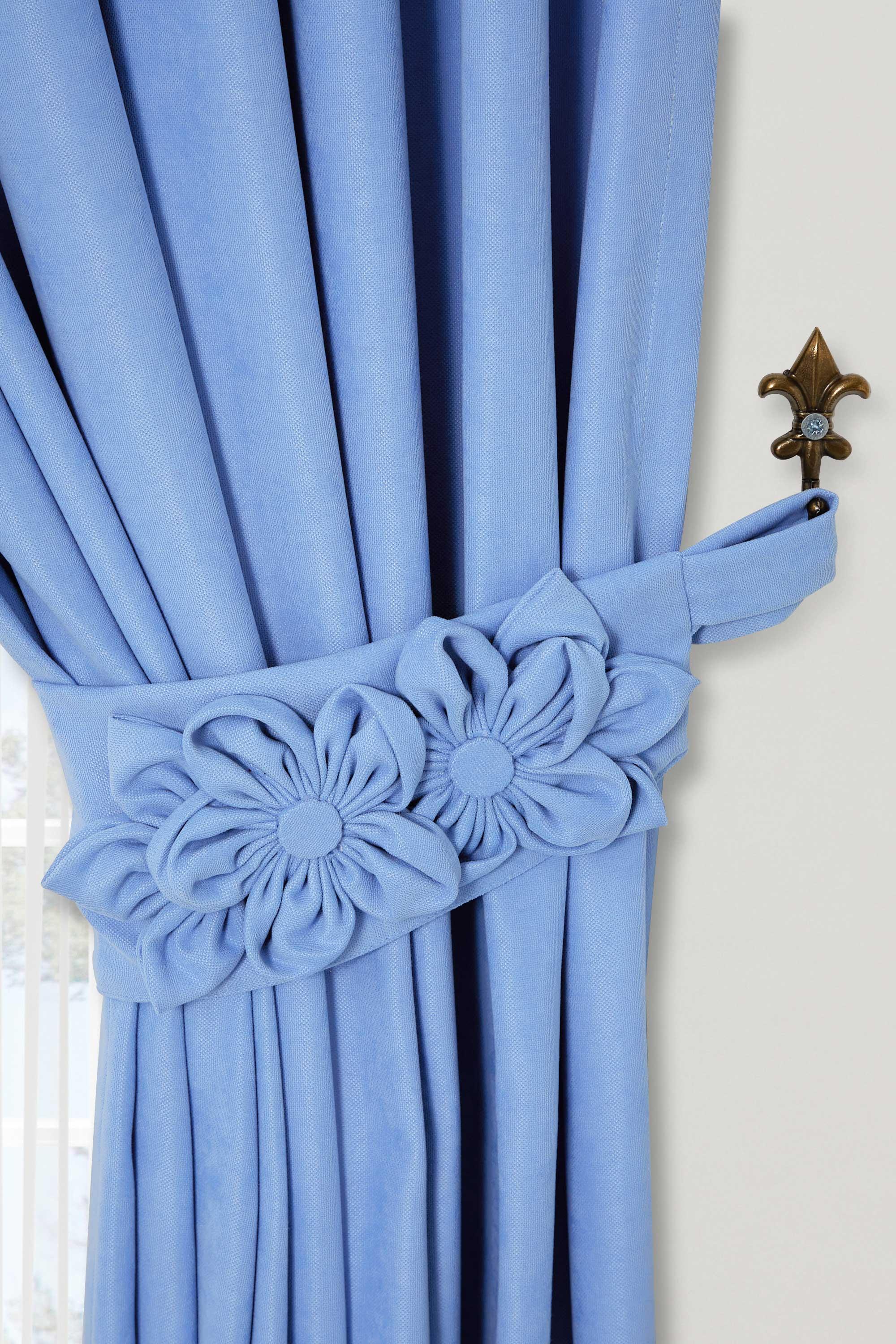 Çiçek Aksesuarlı Fon Perde Sağ Kenar,PR-3SAG Bebe Mavi