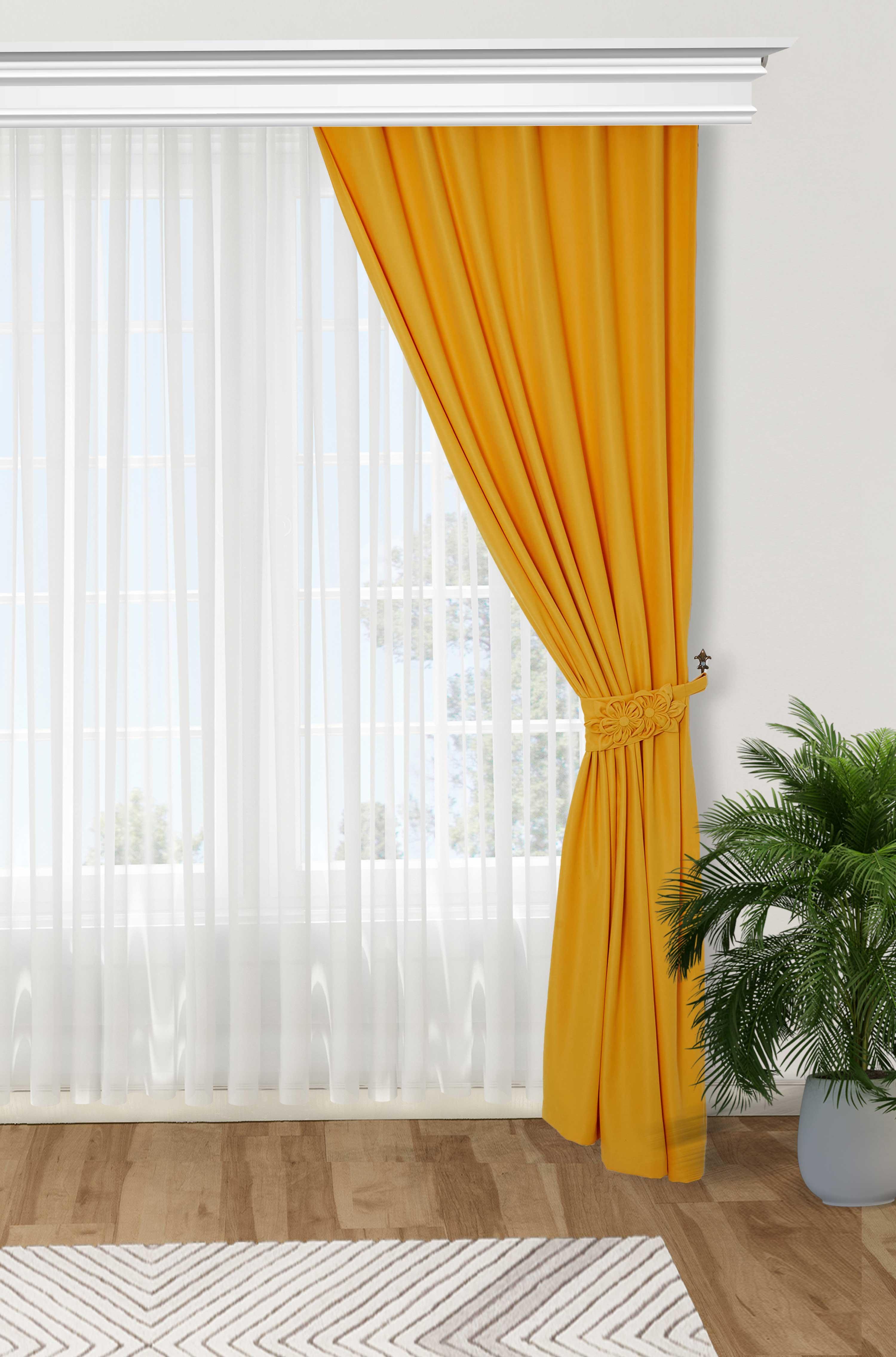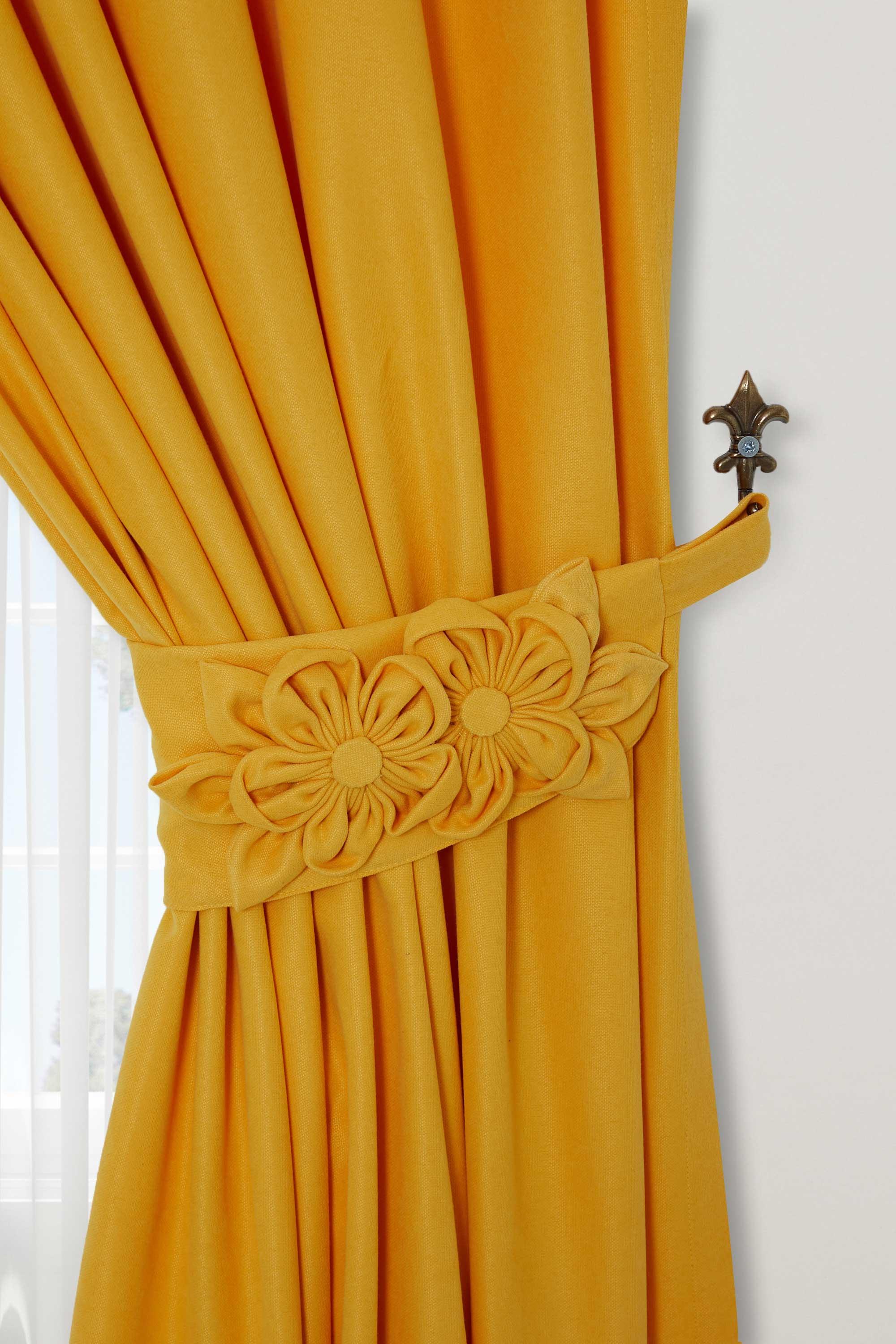 Çiçek Aksesuarlı Fon Perde Sağ Kenar,PR-3SAG Sarı