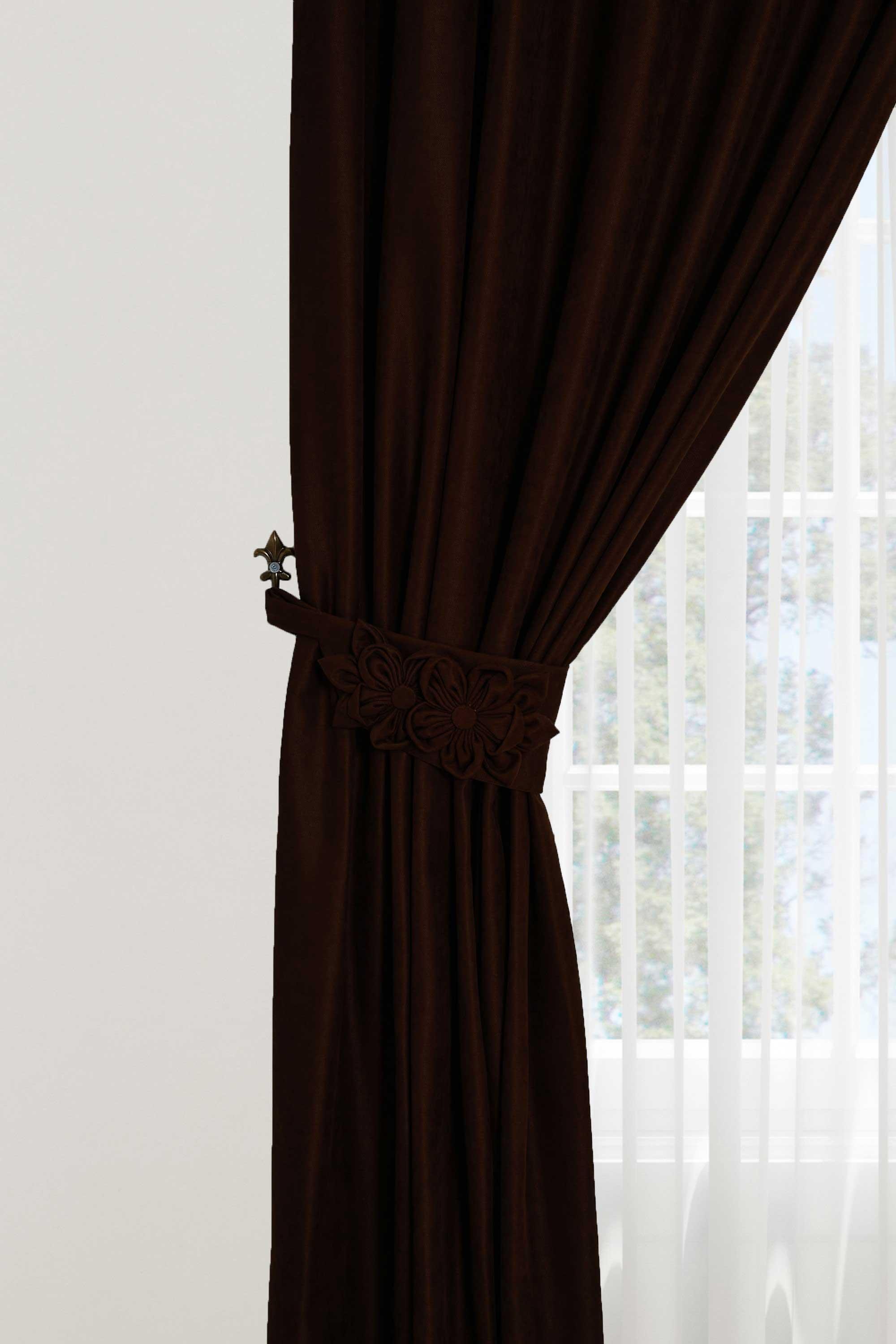 Çiçek Aksesuarlı Fon Perde Sol Kenar,PR-3SOL Kahverengi