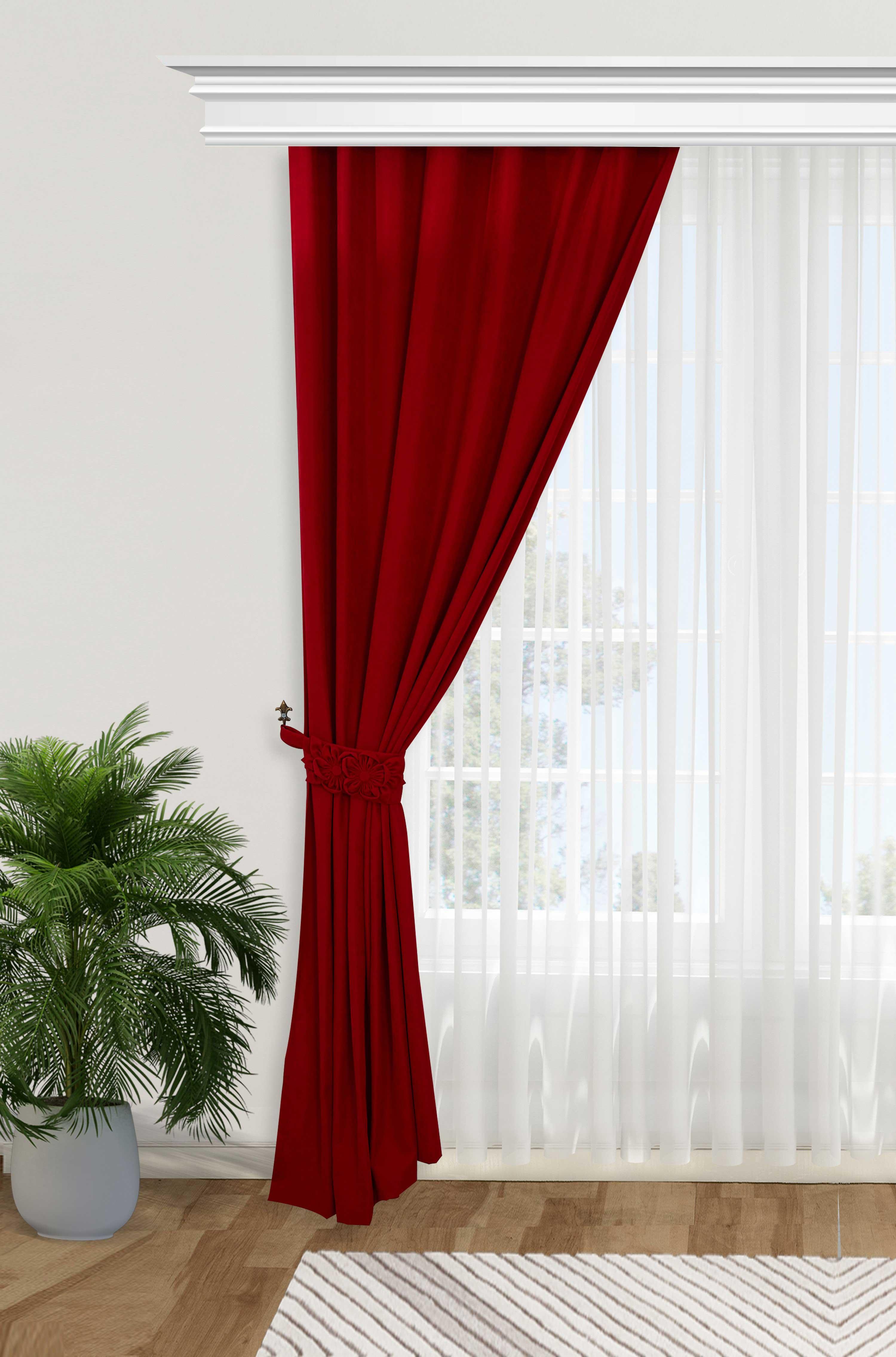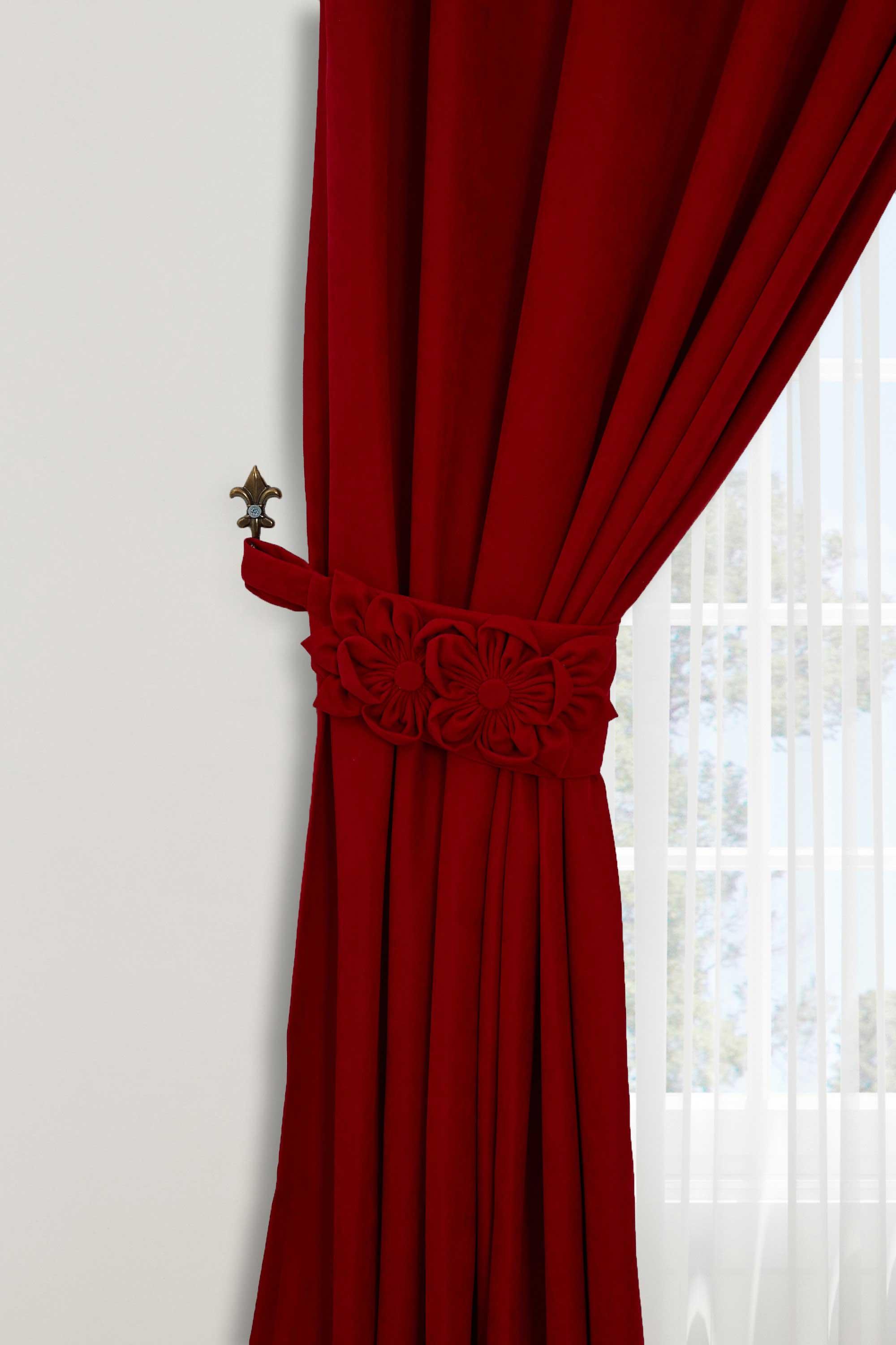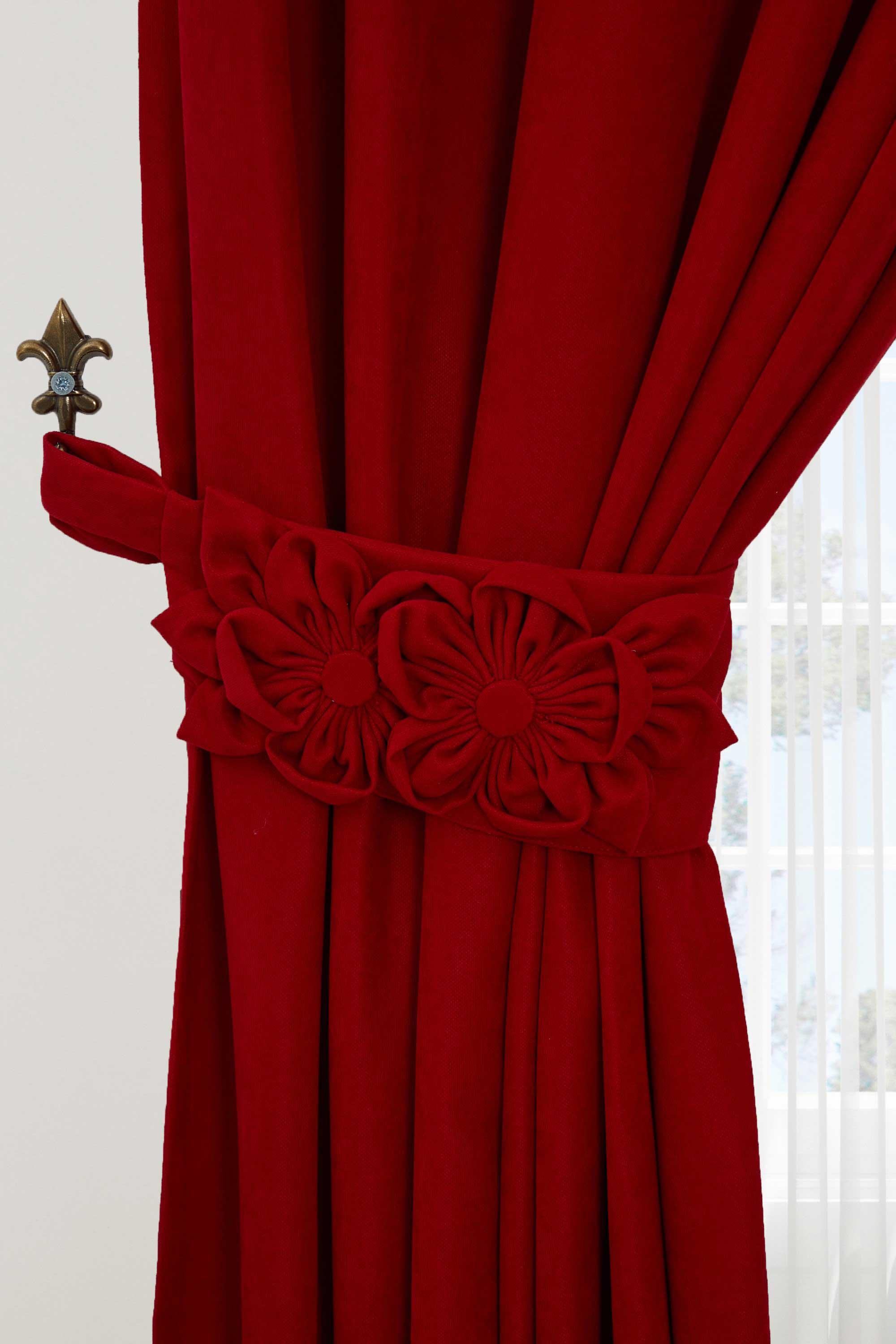 Çiçek Aksesuarlı Fon Perde Sol Kenar,PR-3SOL Kırmızı