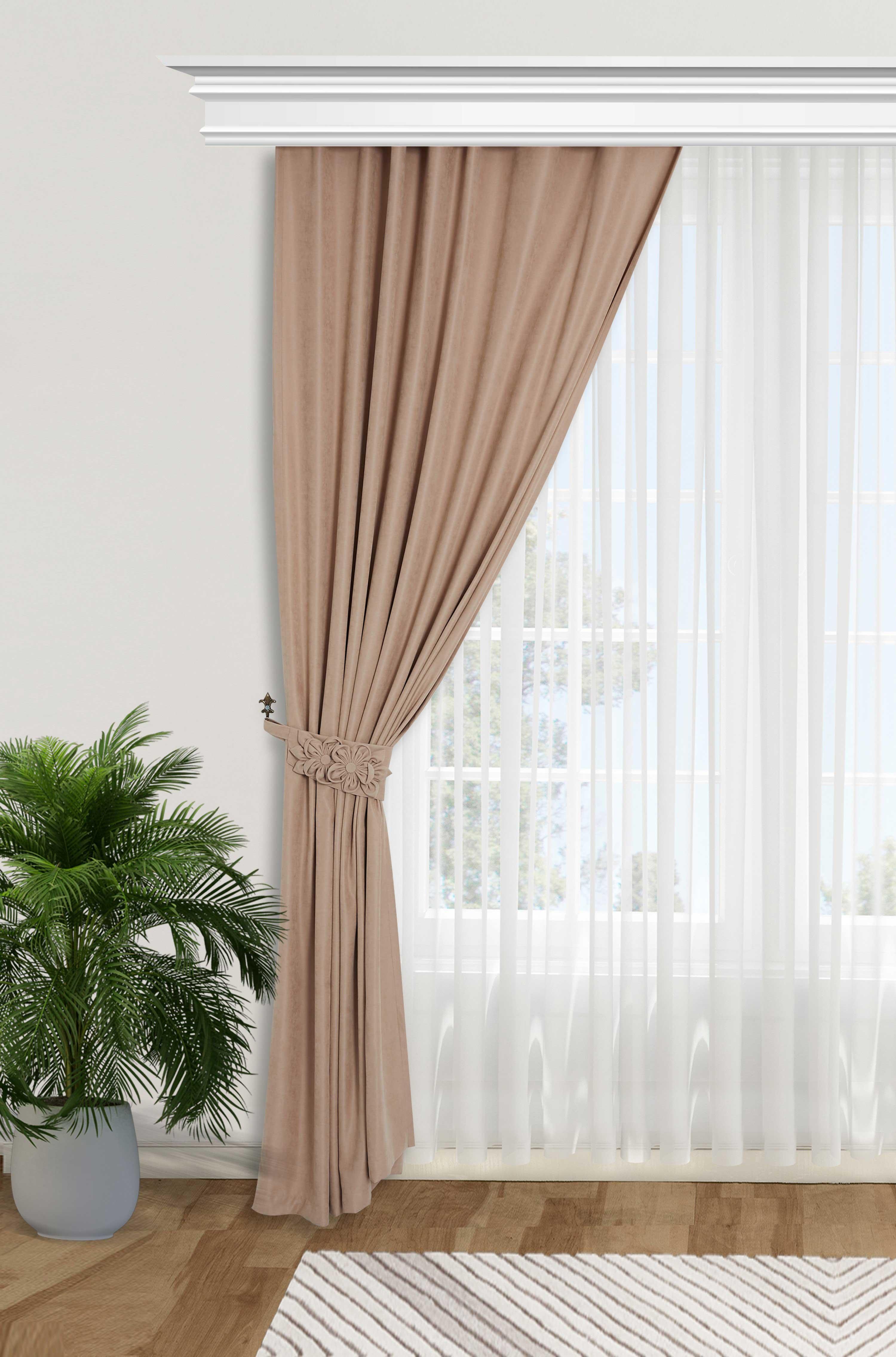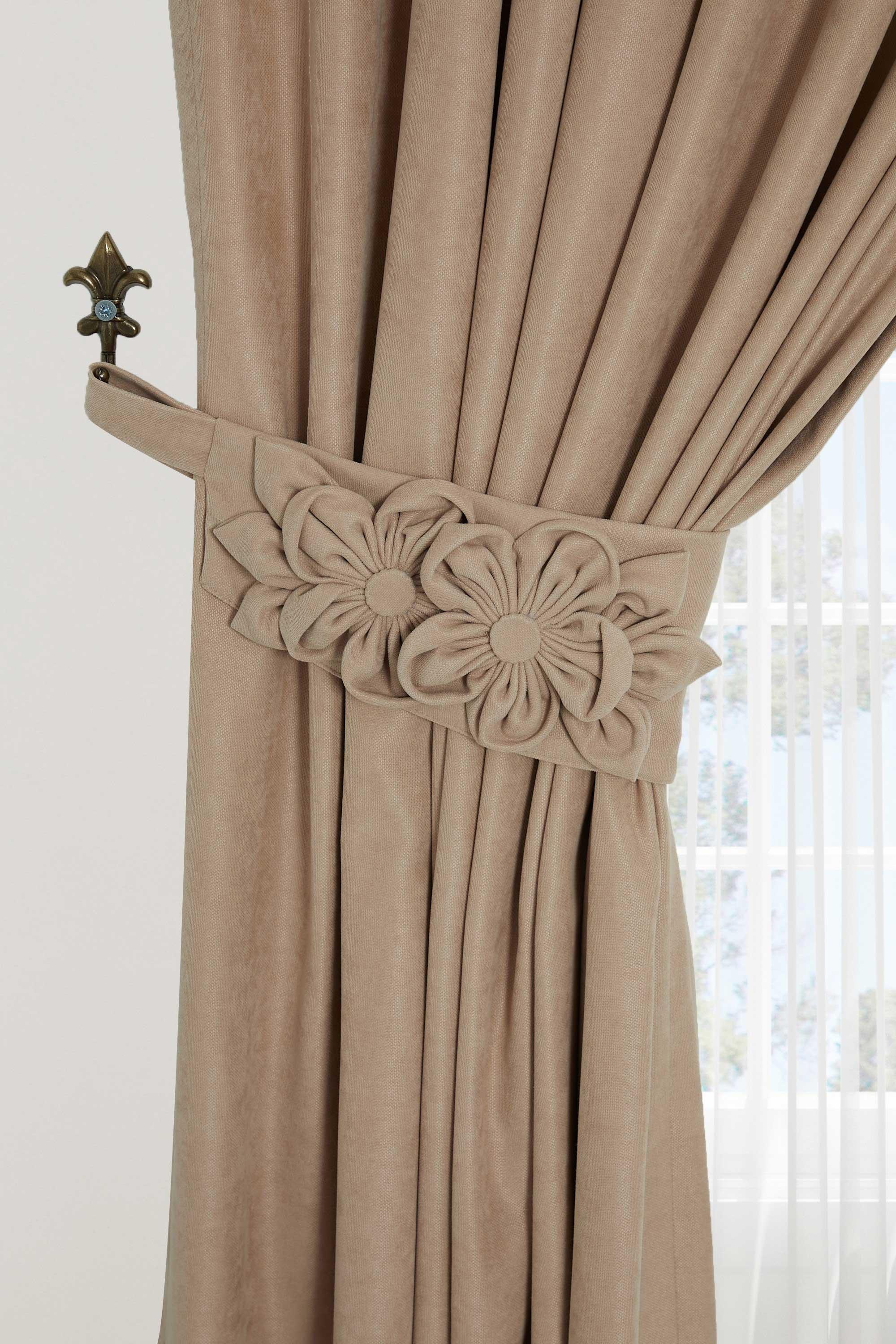 Çiçek Aksesuarlı Fon Perde Sol Kenar,PR-3SOL Vizon
