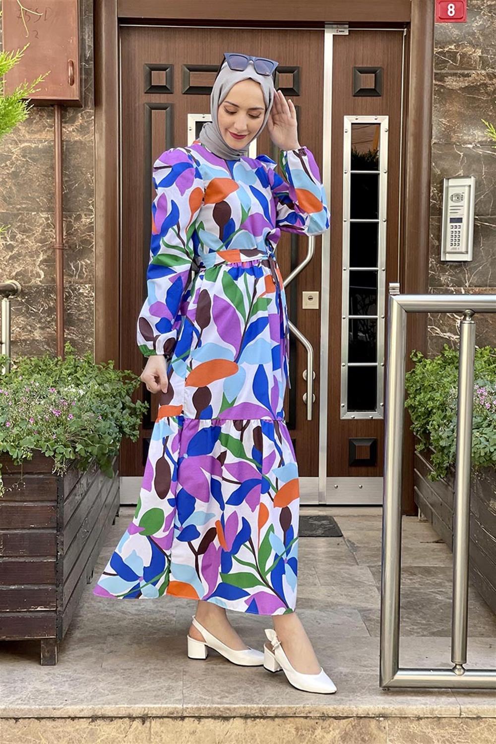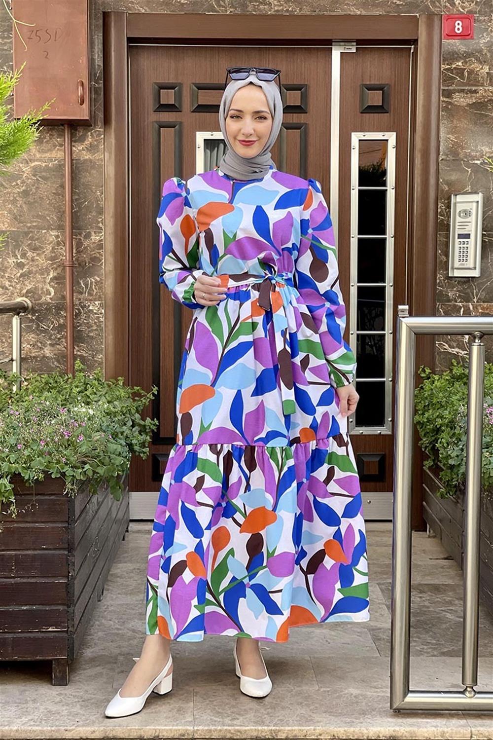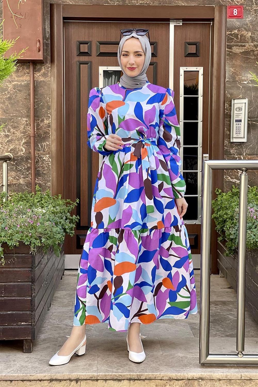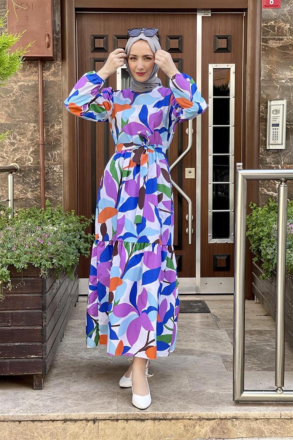 Çiçekli Tesettür Elbise MOR