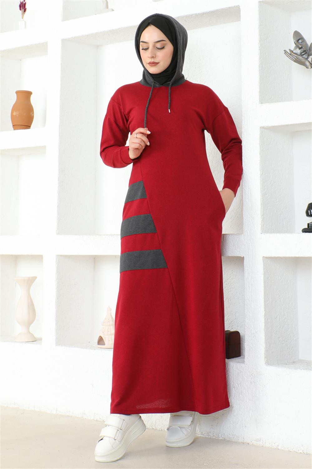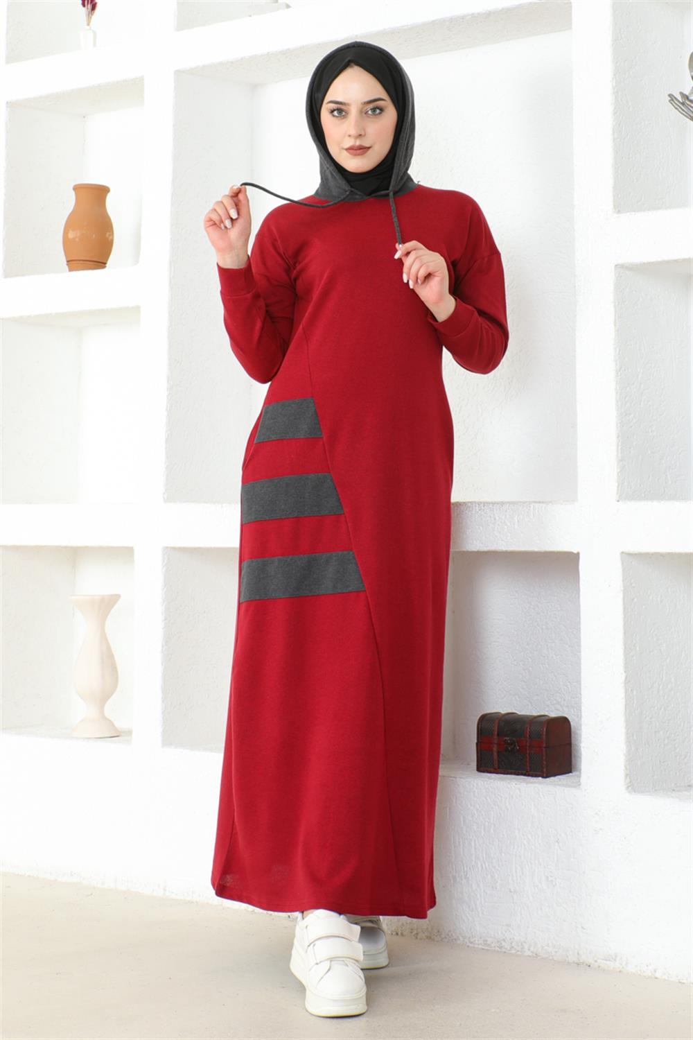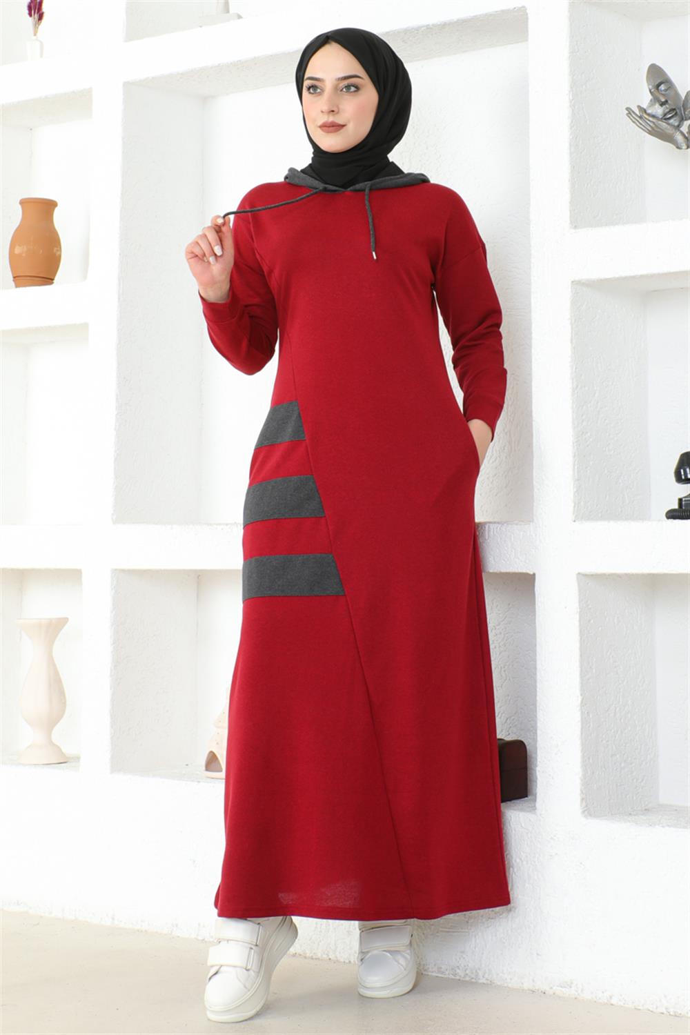 Çizgili Spor Elbise BORDO