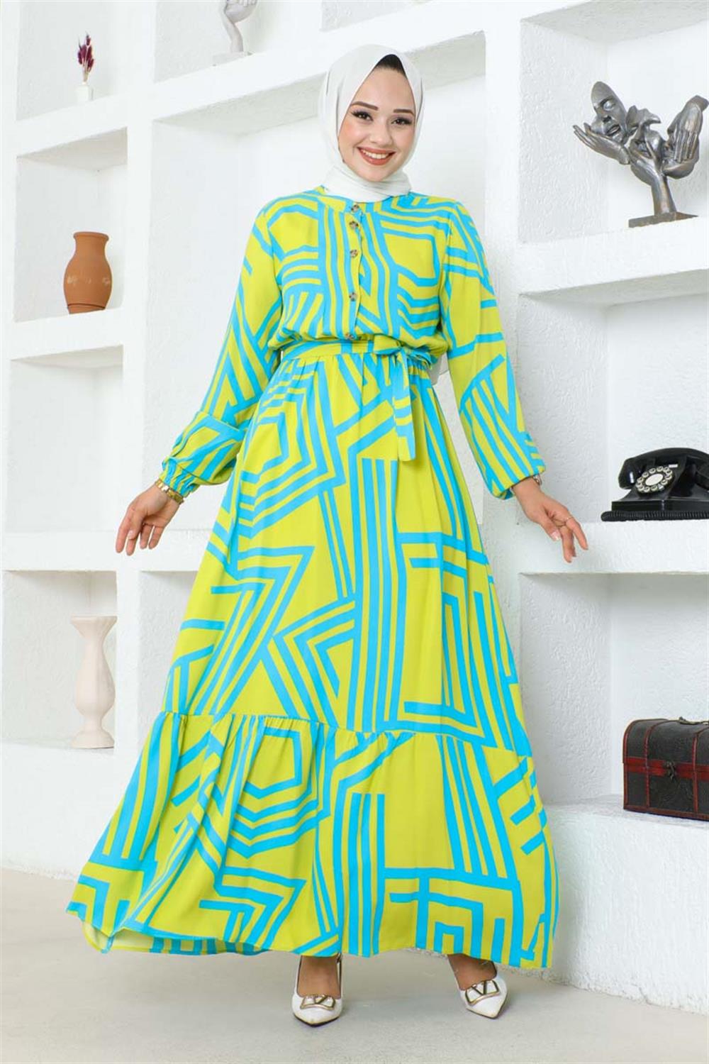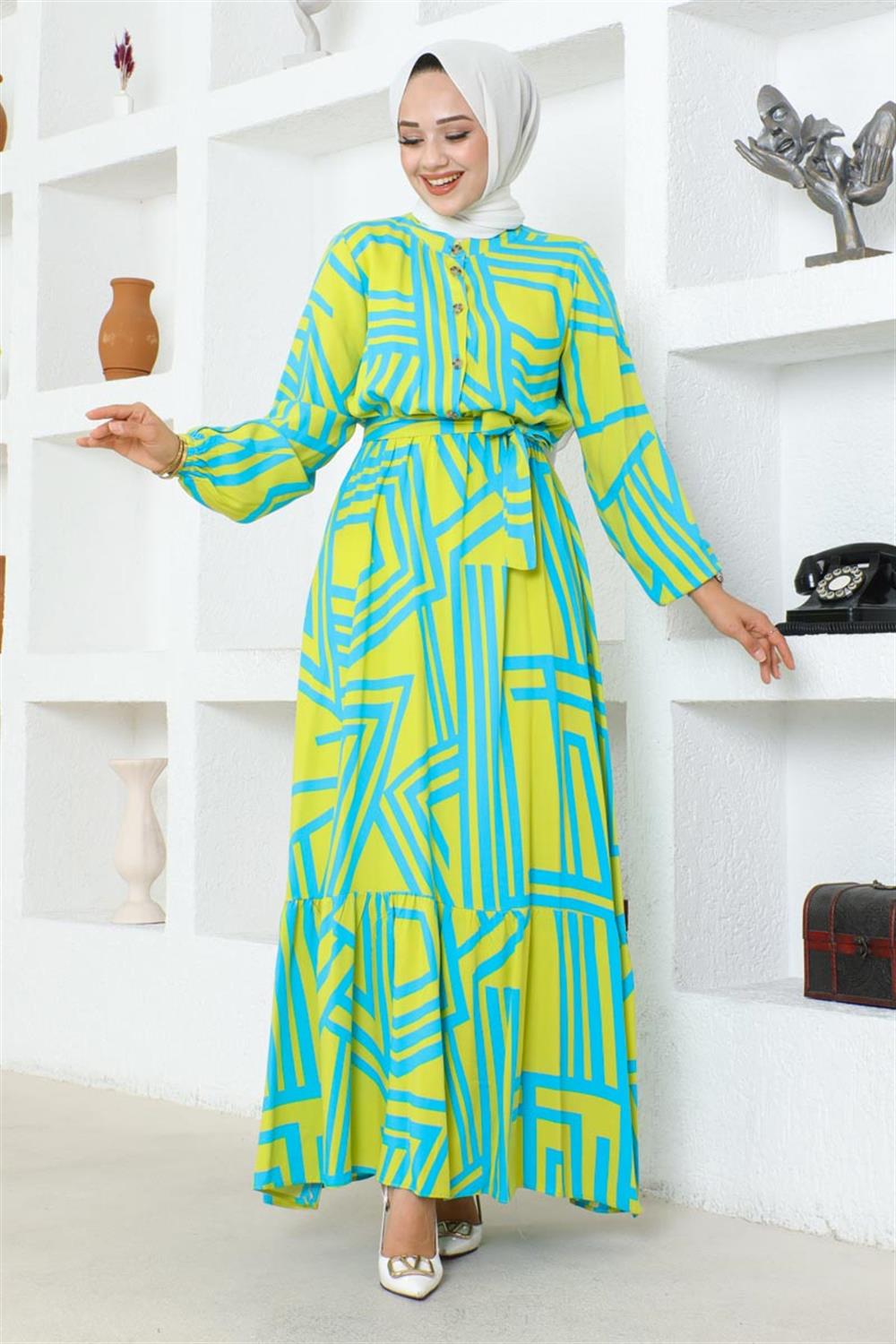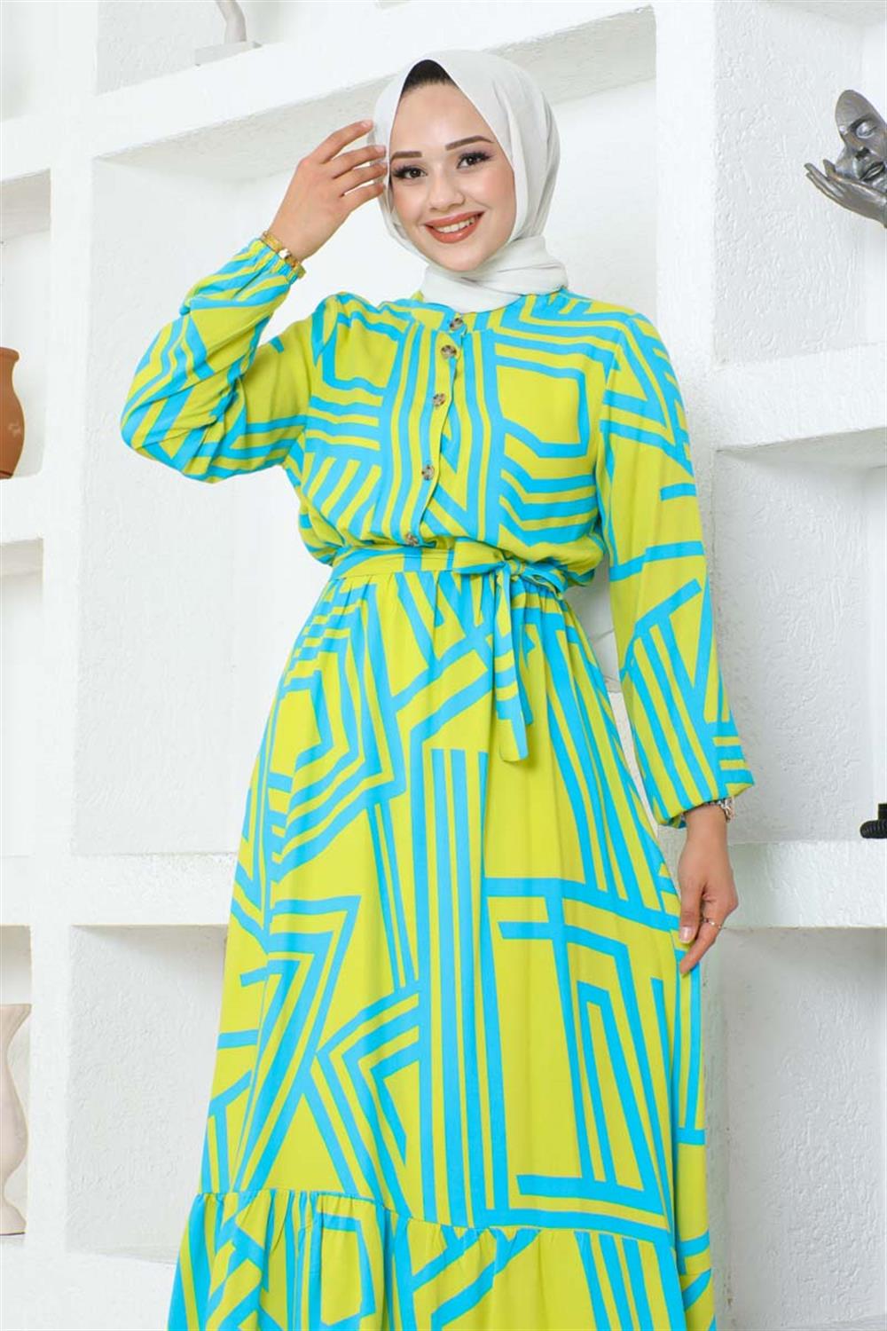 Çizgili Viskon Elbise ASİT