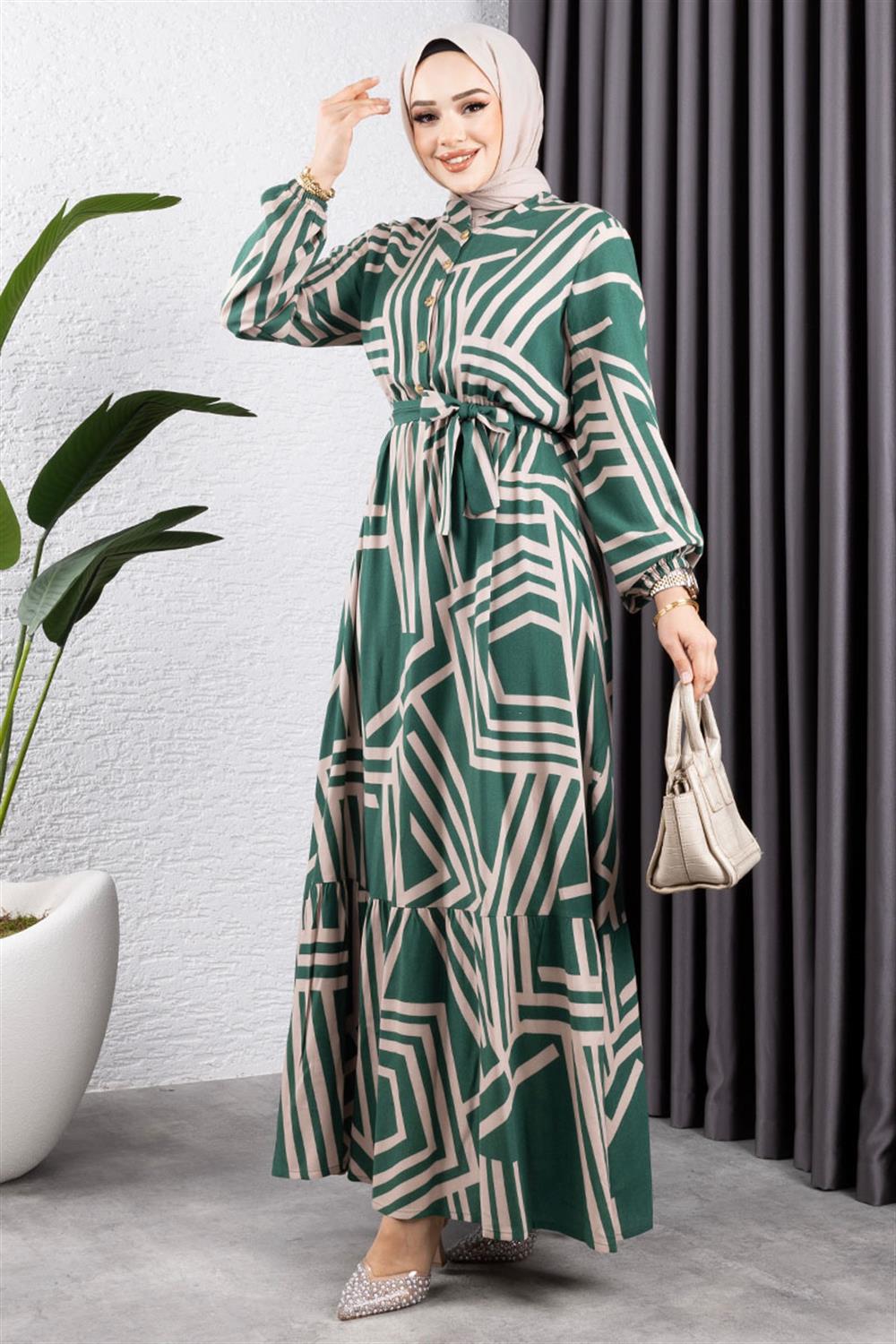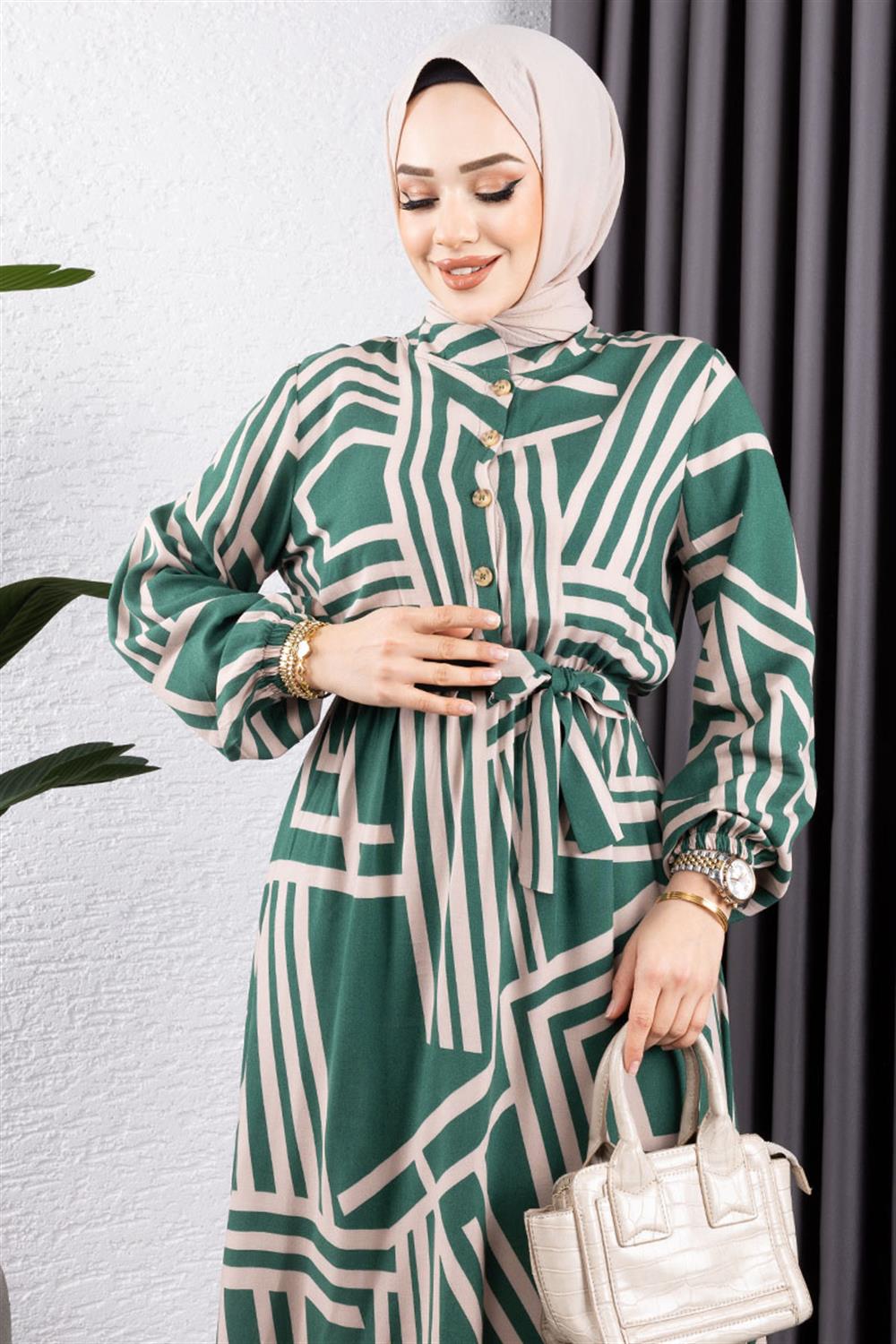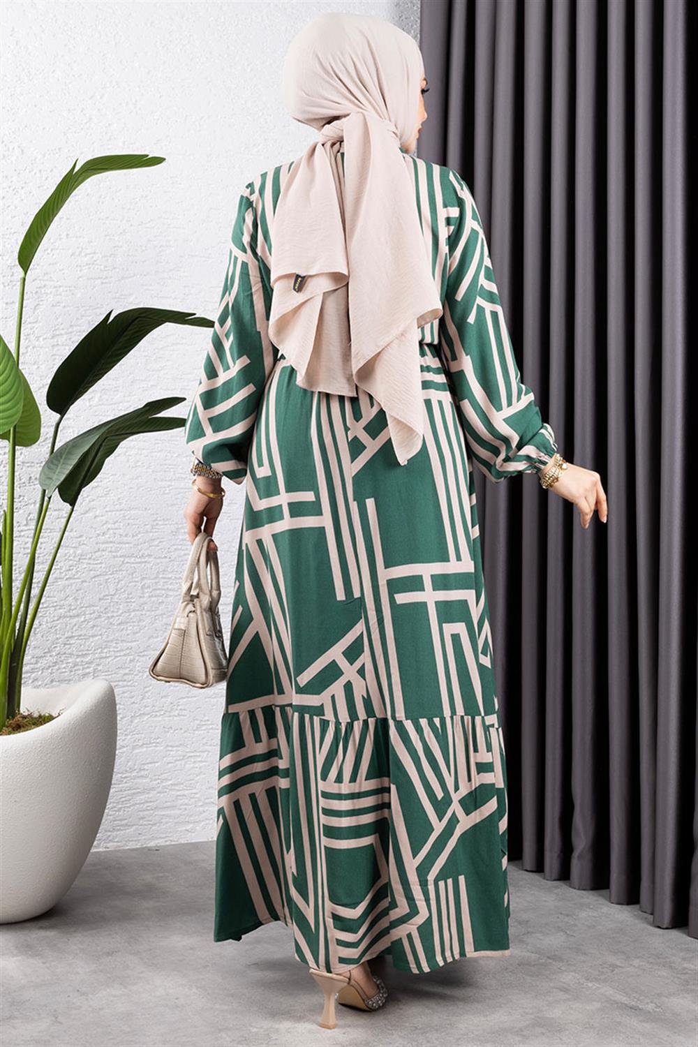Çizgili Viskon Elbise ZÜMRÜT YEŞİLİ