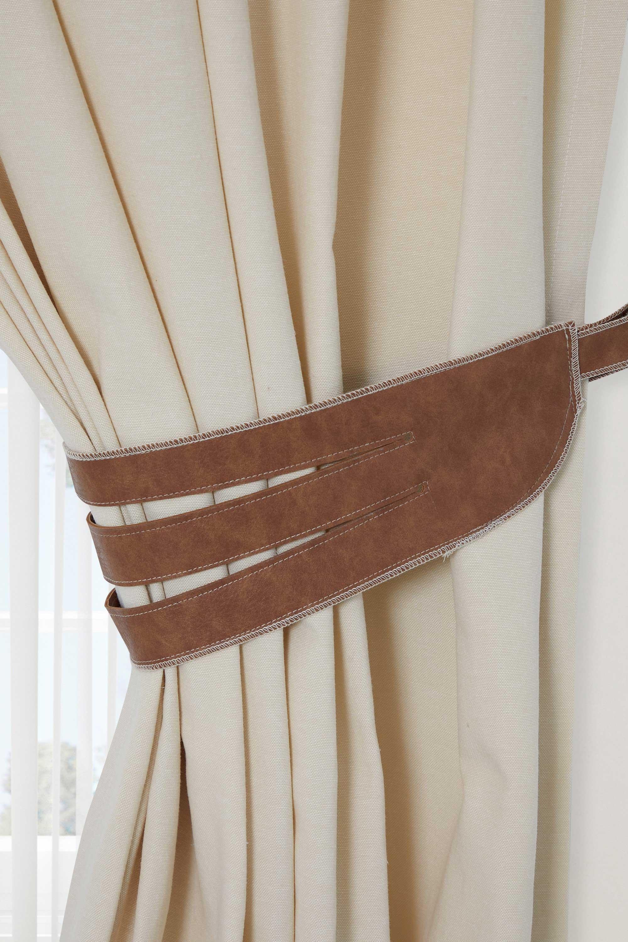 Deri Perde Tutacaklı Fon Perde Sağ Kenar,PR-6SAG Krem