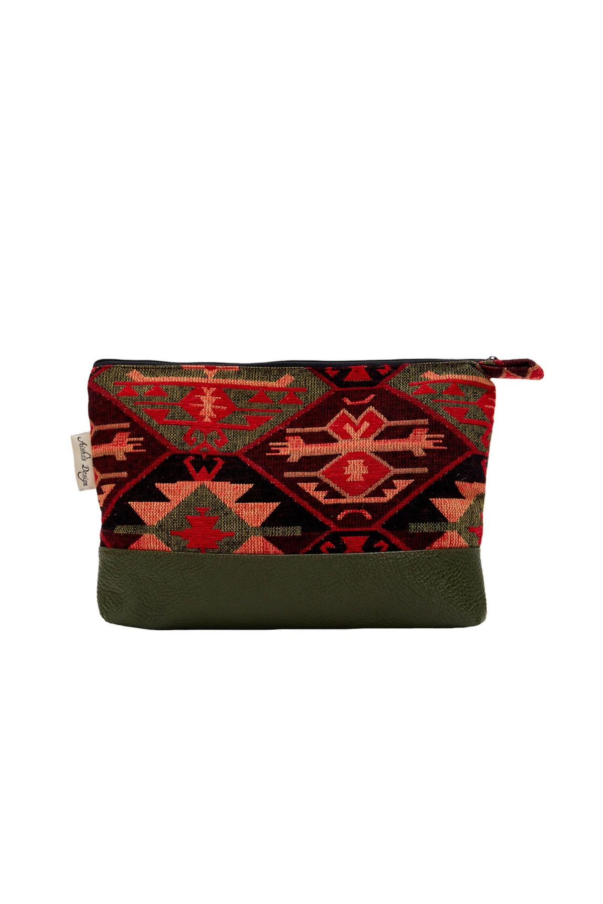Desenli Deri Detay El Çantası Küçük,CMK-4A Kilim 1 Desen - Petrol Yeşili