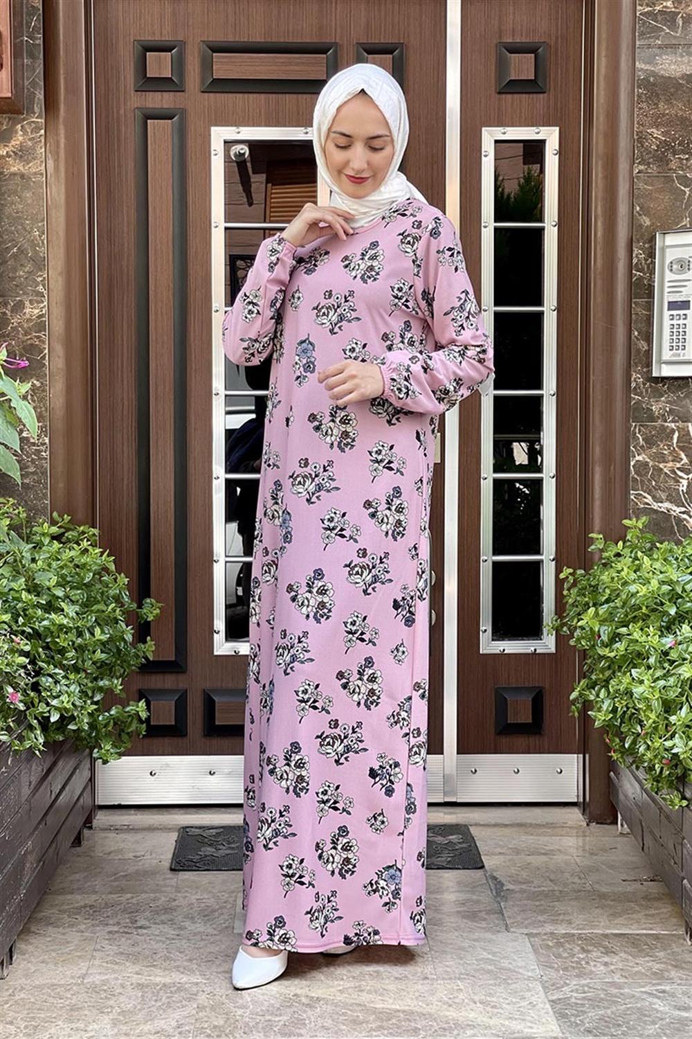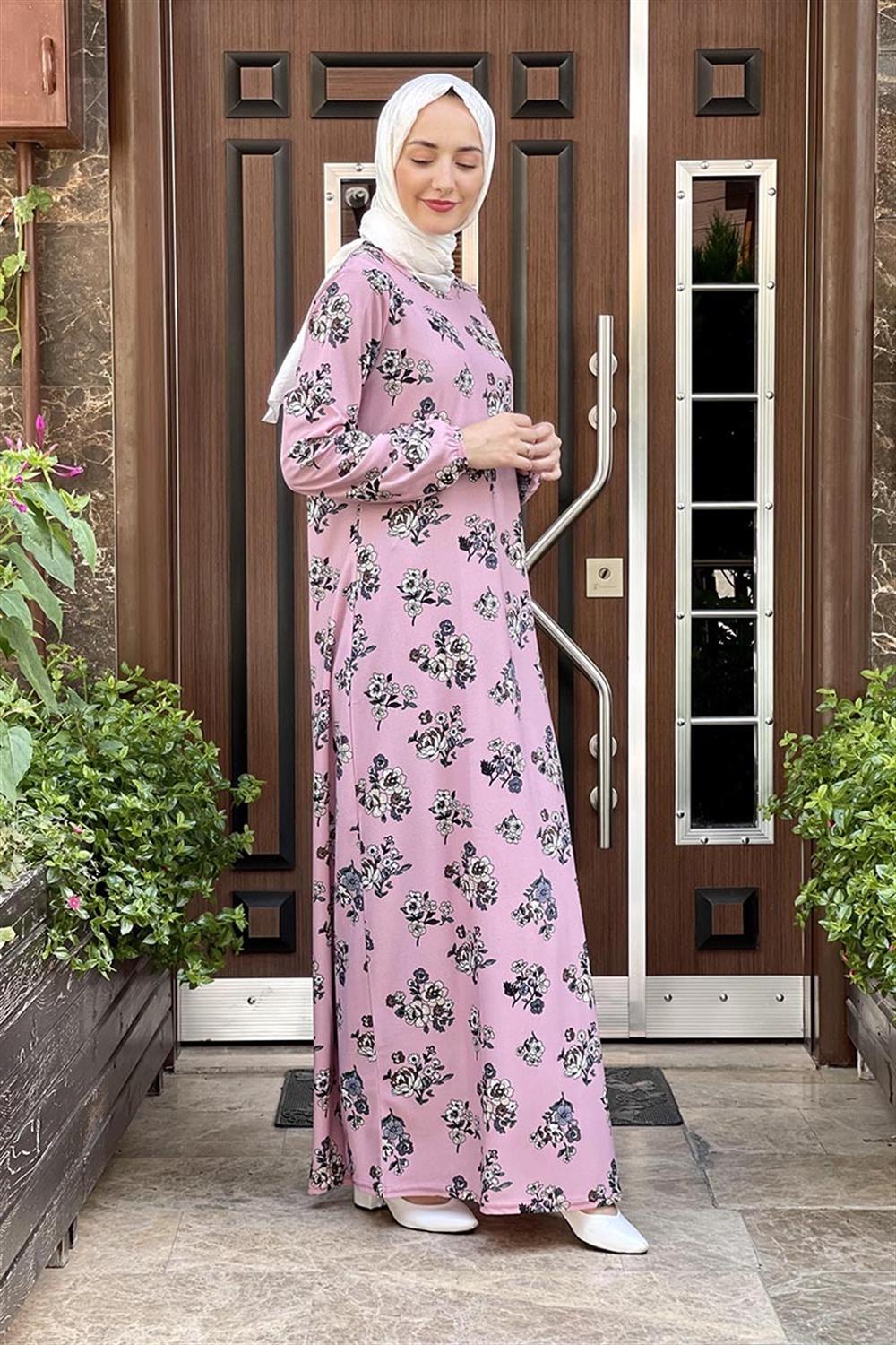 Desenli Tesettür Elbise GÜL KURUSU