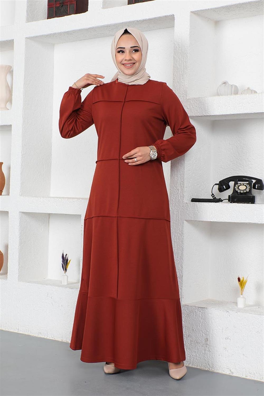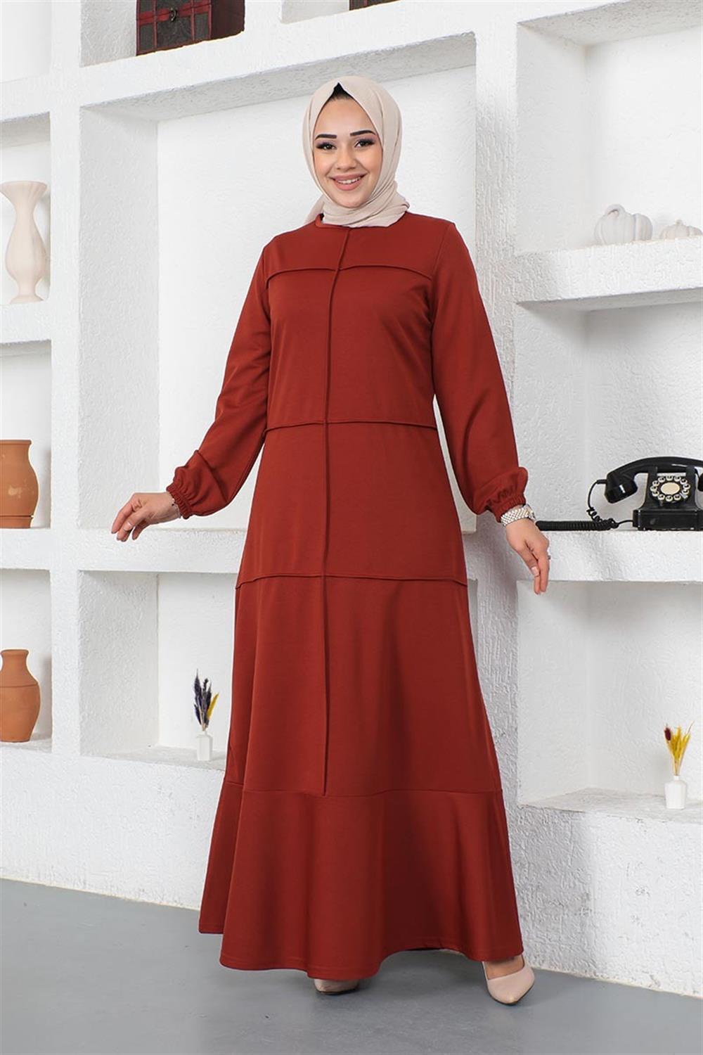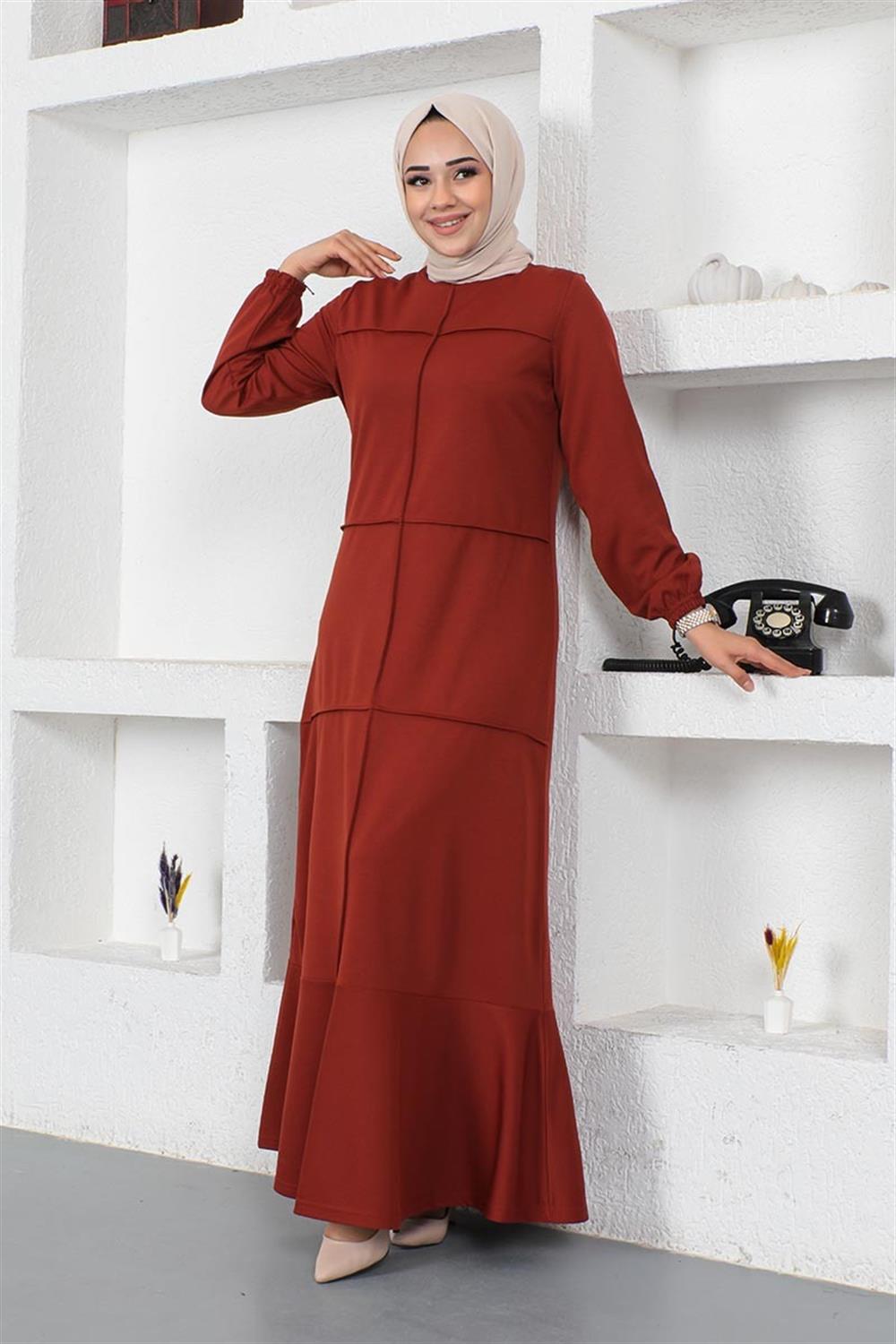 Dikiş Detaylı Elbise KİREMİT