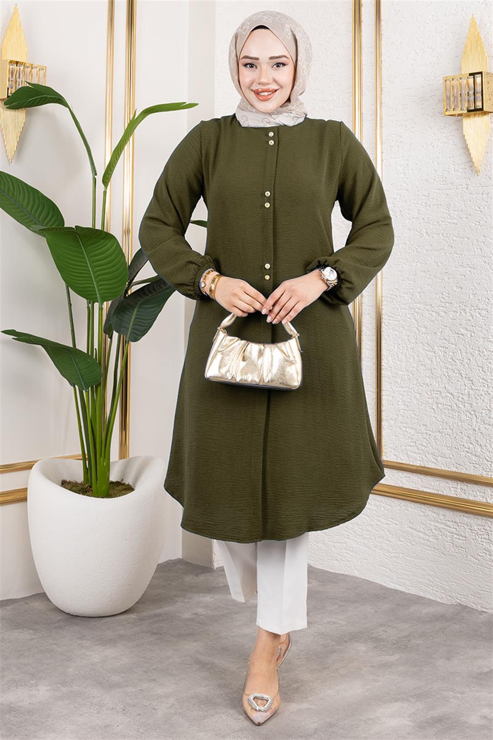 Düğme Detaylı Aerobin Tunik HAKİ