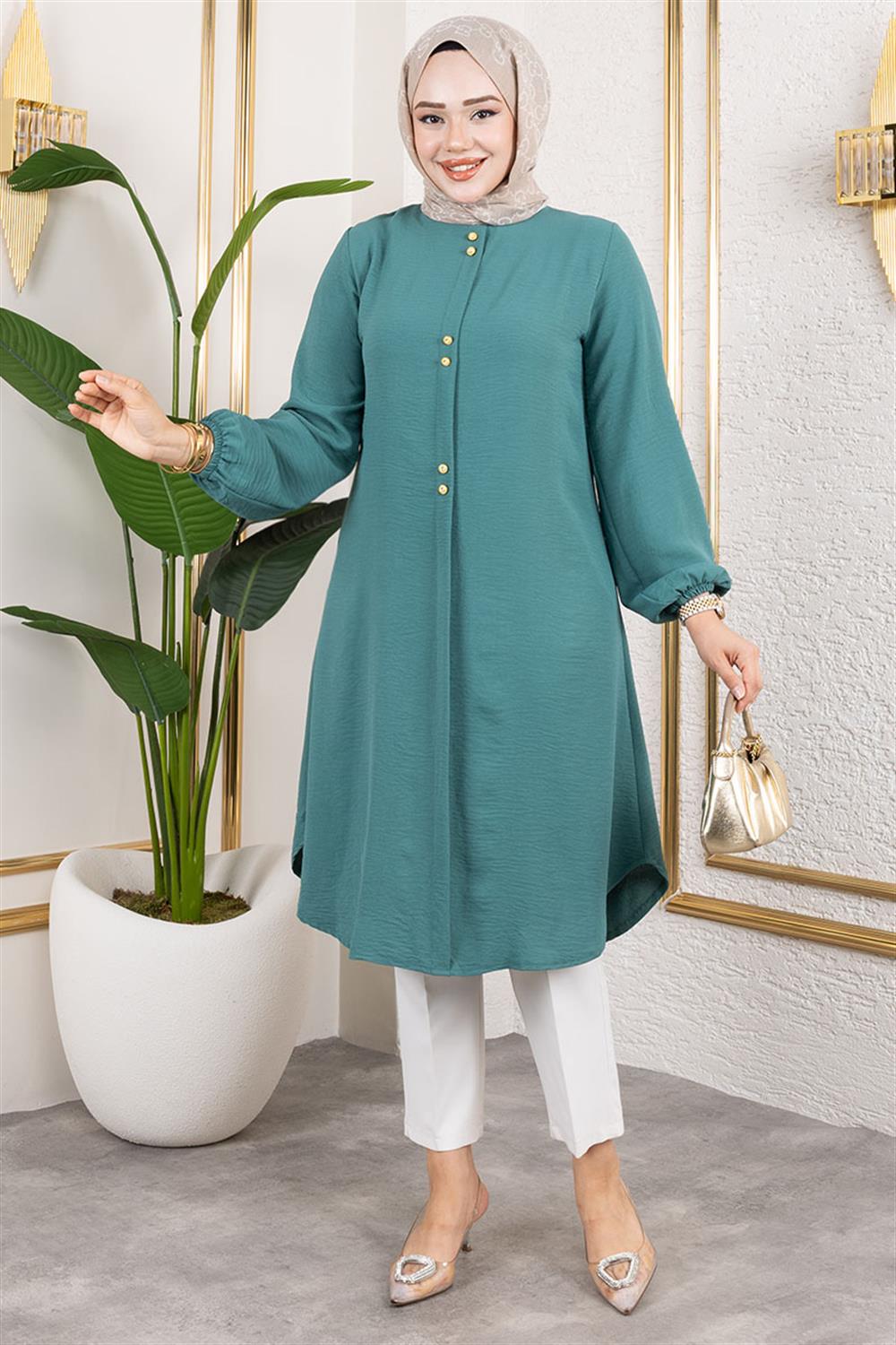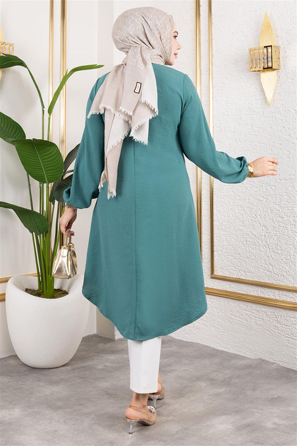 Ürün Özelliği : Yeni sezon tesettür moda ürünüdür. Sırttan kullanılabilir bir düğmesi bulunmaktadır. Ürün Bisiklet yakadır. Astarsızdır. Düğmeler aksesuardır. Manşet lastiklidir.Konsept fotoğraf çekimlerinden dolayı üründe ton farklılığı olabilir.