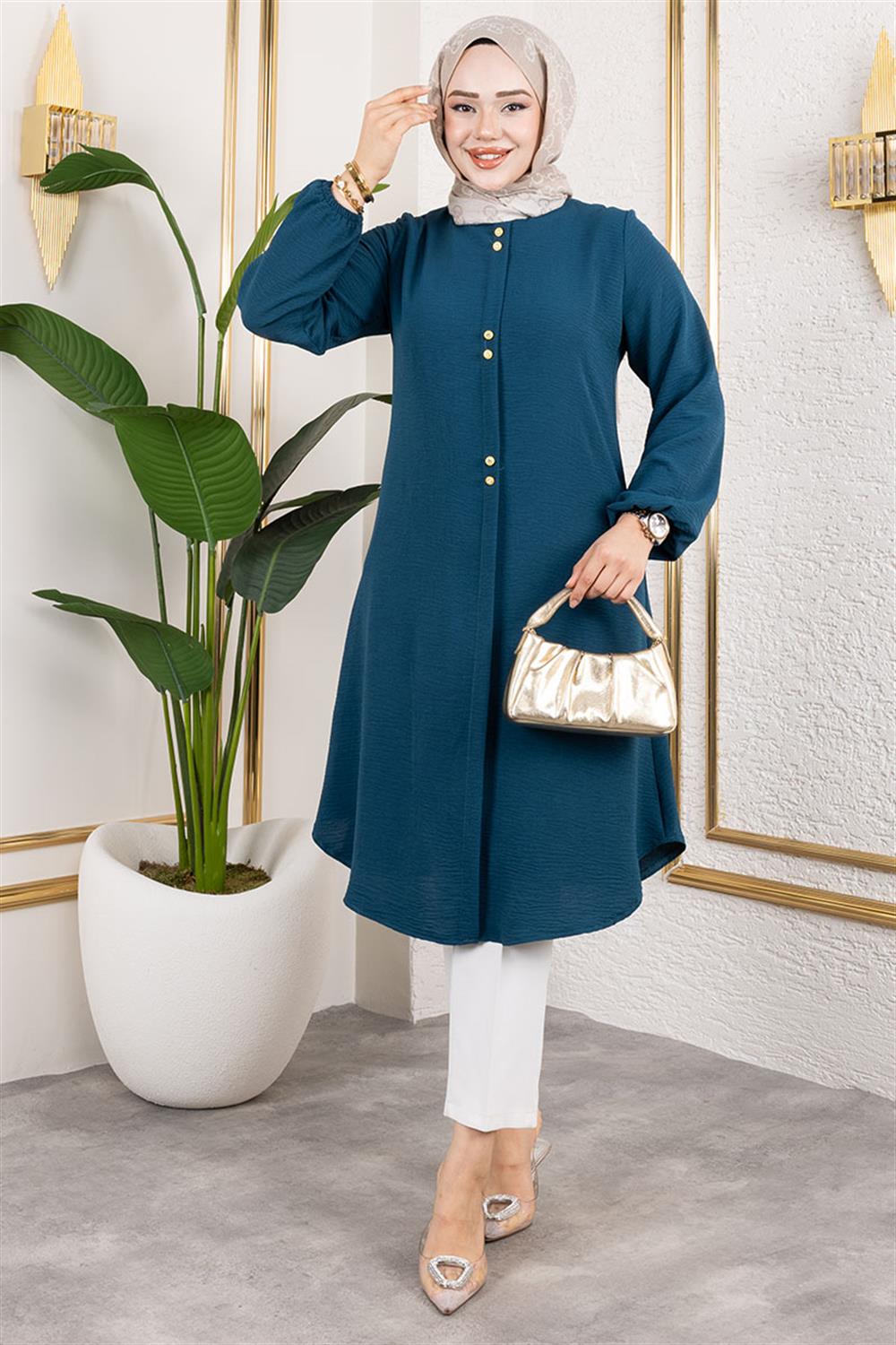 Düğme Detaylı Aerobin Tunik PETROL