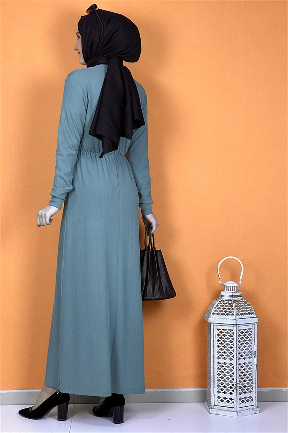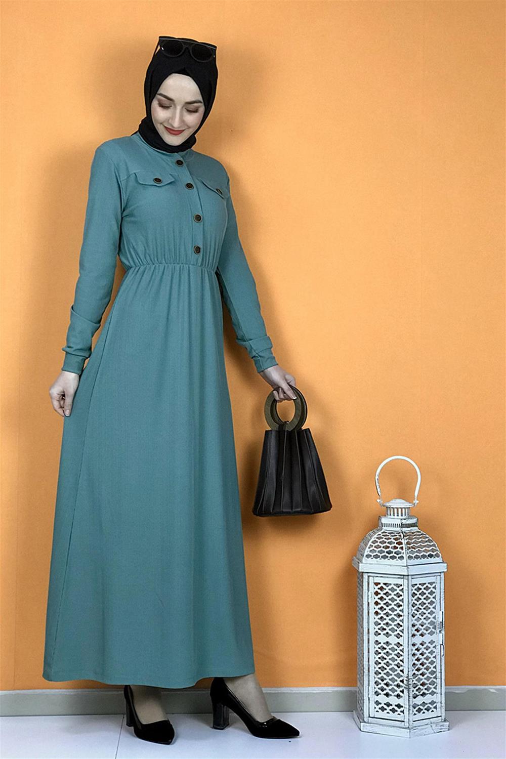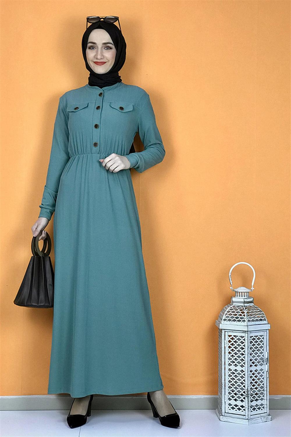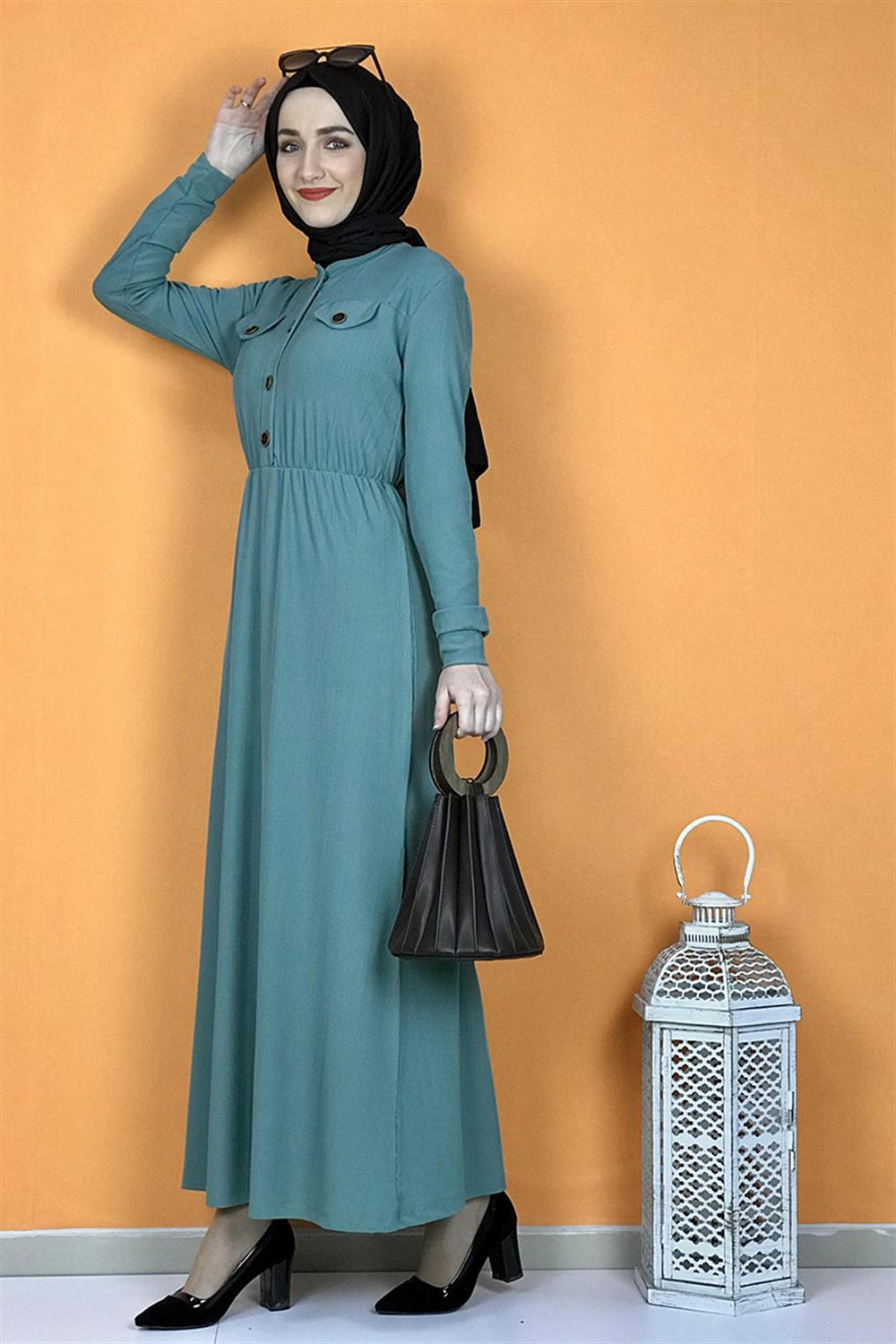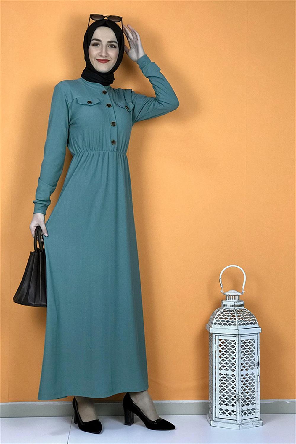 Düğme Detaylı Elbise Çağla
