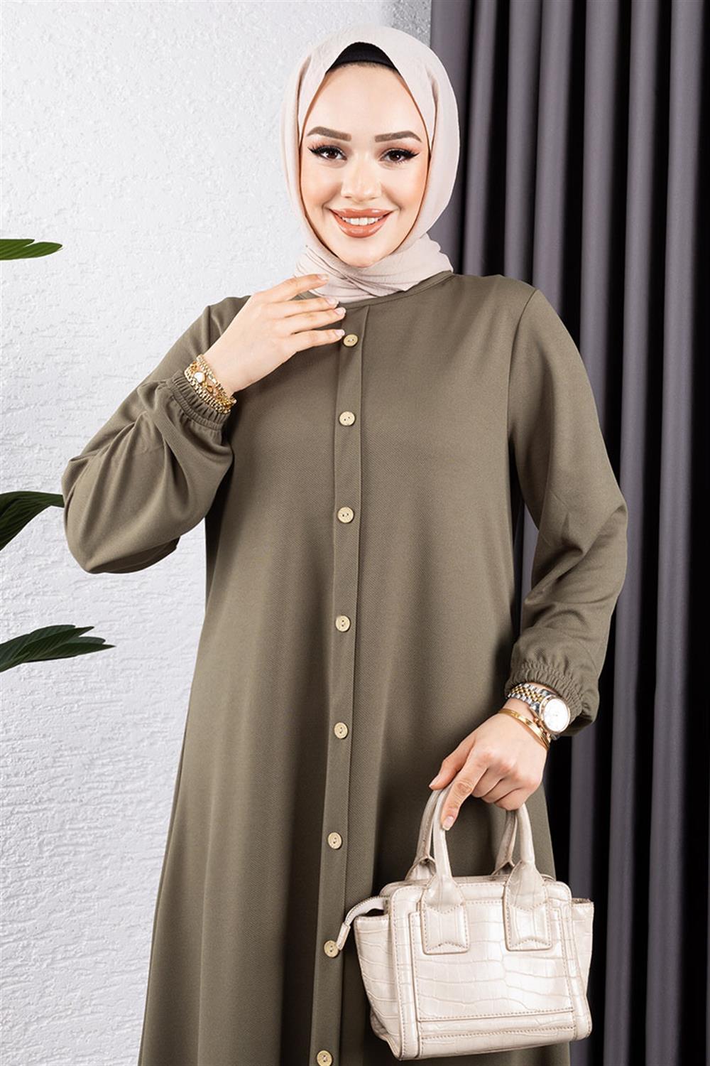 Yeni sezon tesettür moda ürünüdür. İç göstermez. Kemer ve düğme detayı bulunmaktadır.