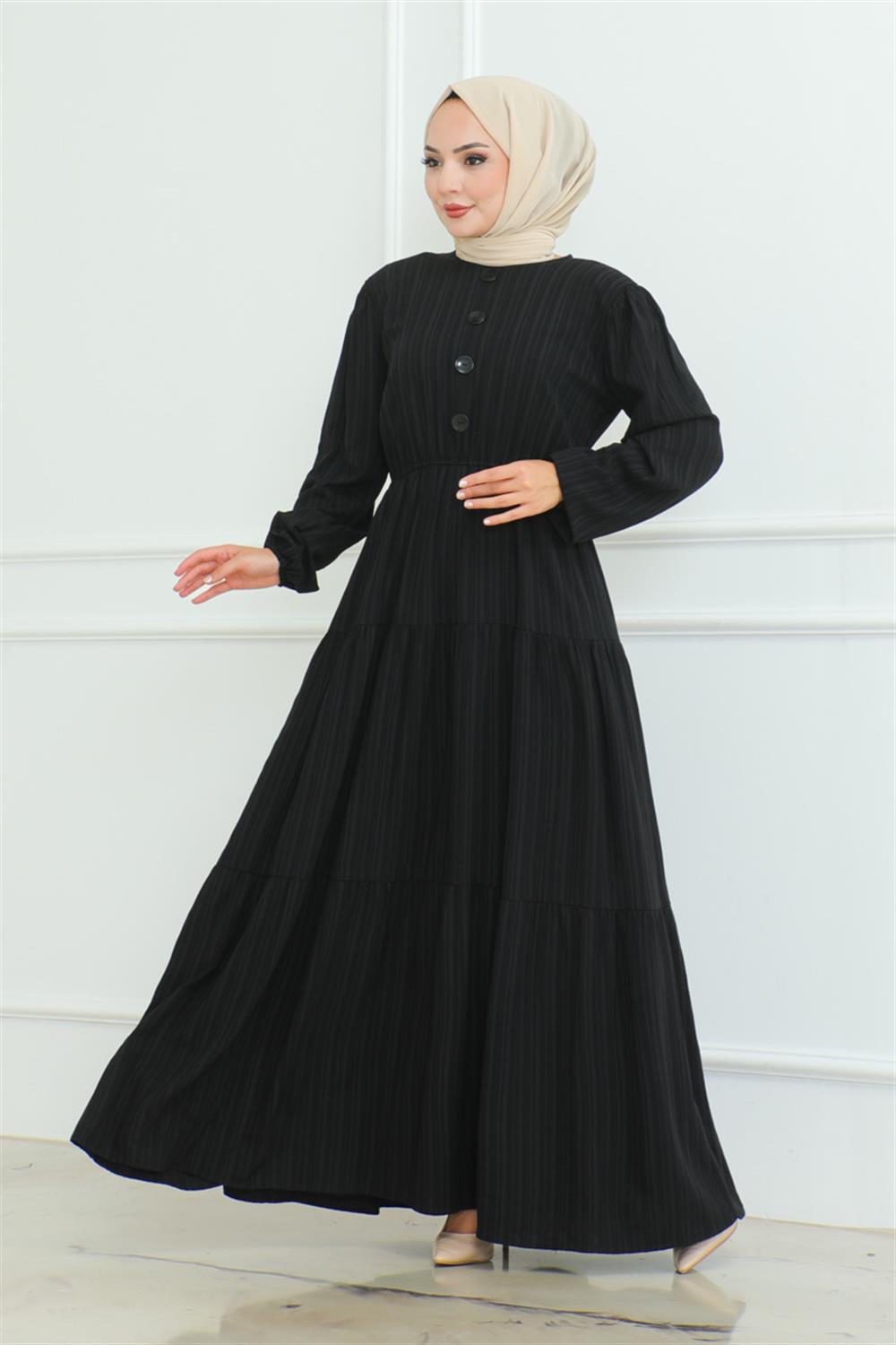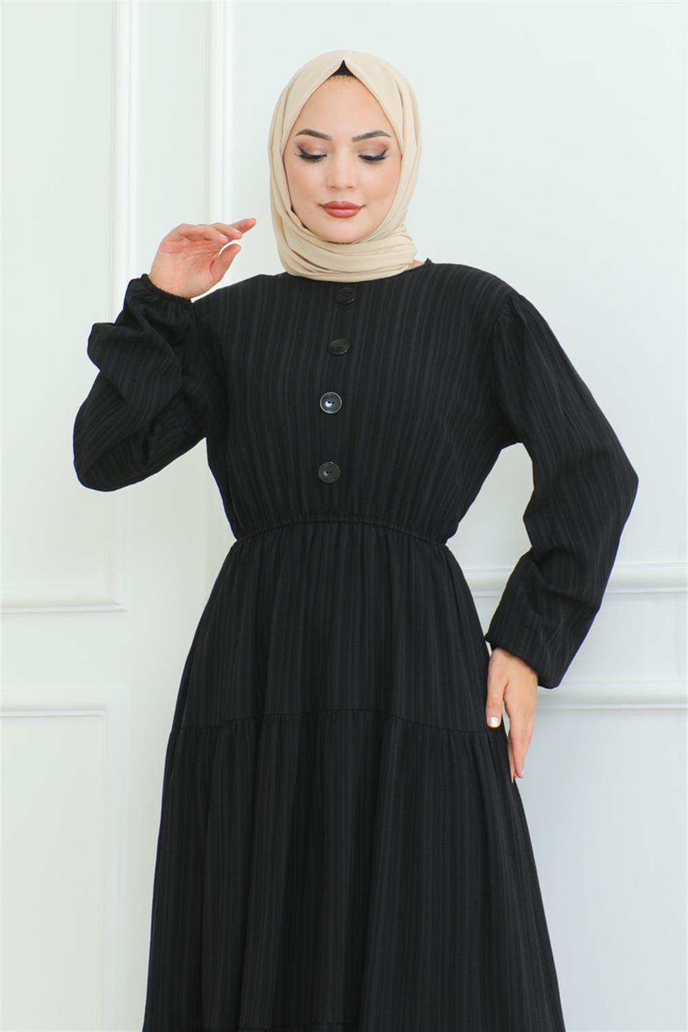 DÜĞME DETAYLI KIRINKIL ELBİSE