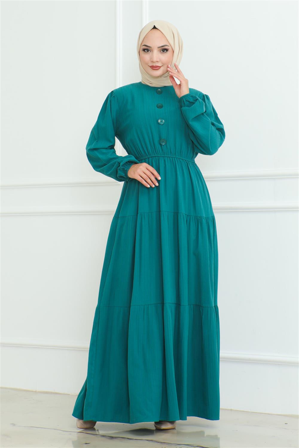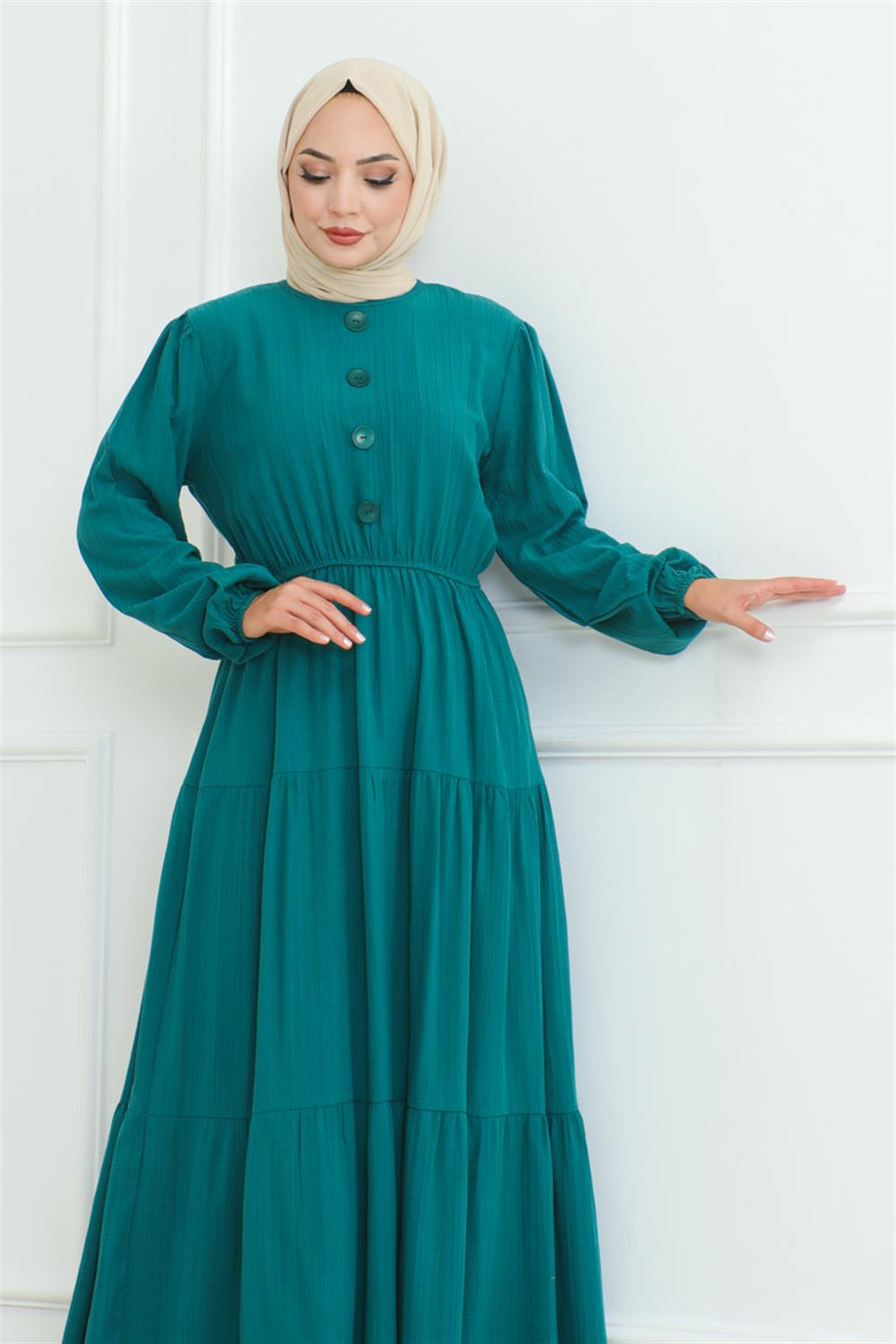 DÜĞME DETAYLI KIRINKIL ELBİSE