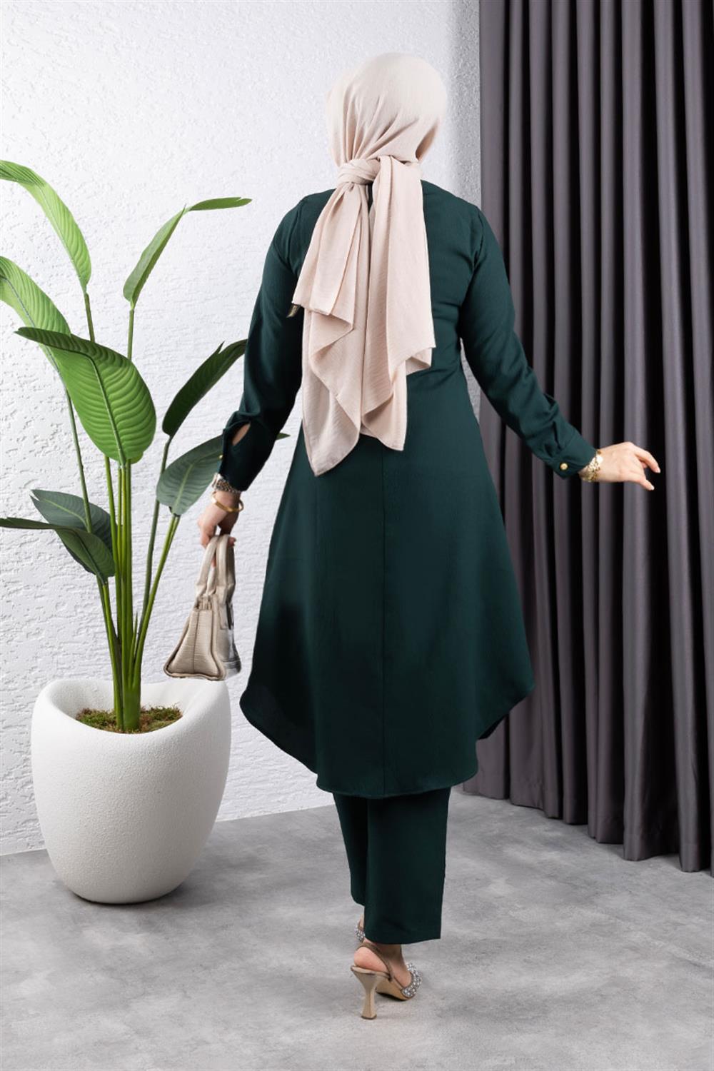 DÜĞMELİ İKİLİ TAKIMÜRÜN KODU : 0309RENK : ZümrütAKSESUAR : Düğme DetaylıDESEN : SadeYAKA : Sıfır YakaKOL : Uzun KolluKUMAŞ : KrepMEVSIM : 4 MevsimKALIP : Mankenin Giydiği Beden: 42 Uzunluk: 130Pantolon Özellik Bilgisi:106 cm,Lastikli,Sade,Astarsız,4 Mevsim Zümrüt Yeşili Rengi kullanılmıştır. Ürün astarsız kullanıma sahiptir. Sade bir görünümdedir. Her giyside tercih edilen sıfır yaka şeklidir. Uzun kolludur. Krep sentetik bir kumaş türü olup kullanımı rahat ve kullanışlıdır. 4 Mevsim kullanıma uygundur. Büyük beden seçeneği mevcuttur.MANKENIMIZIN ÖLÇÜLERI :BASEN :92, BEL : 62, GÖĞÜS : 86, BOY : 175