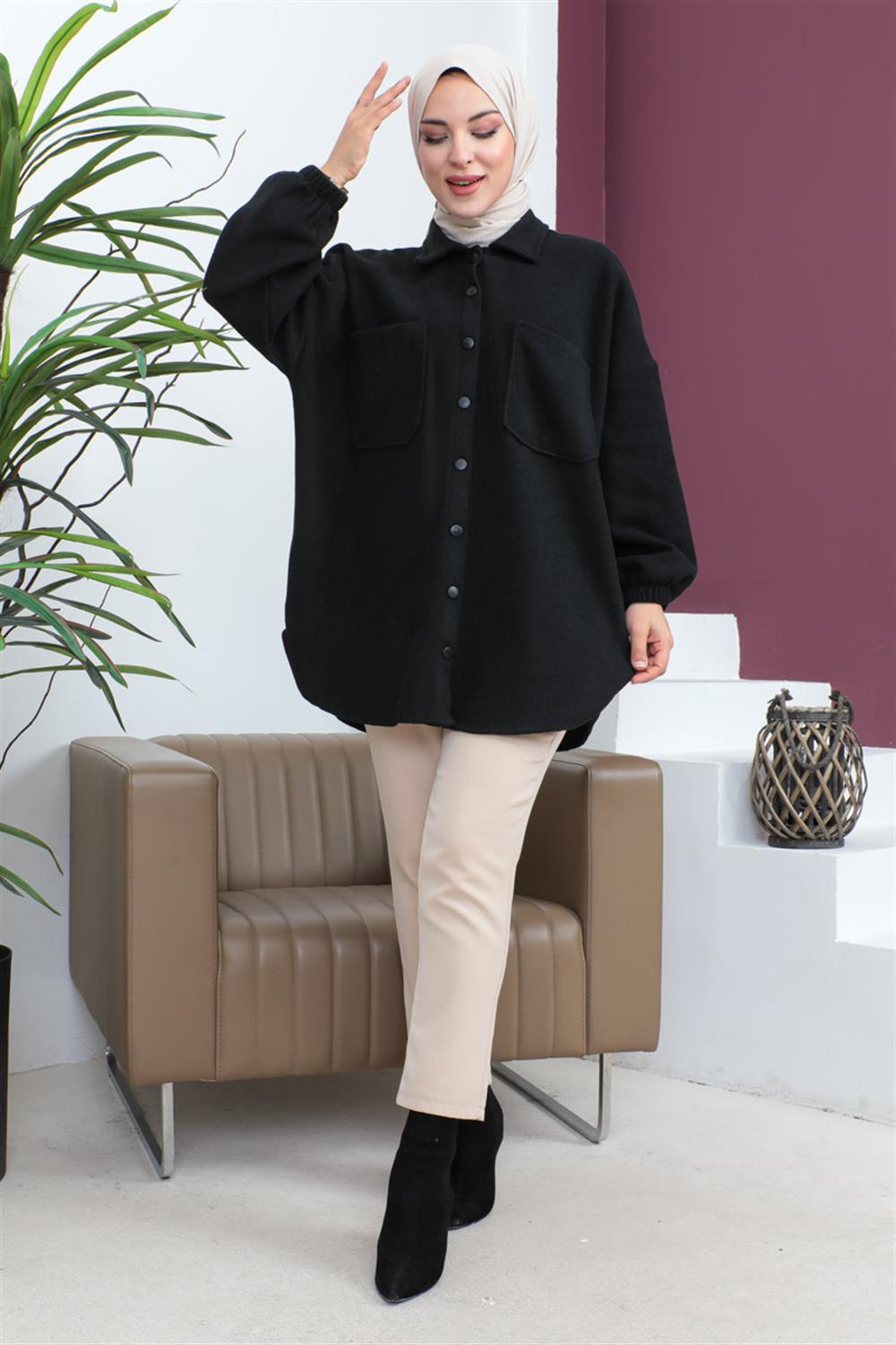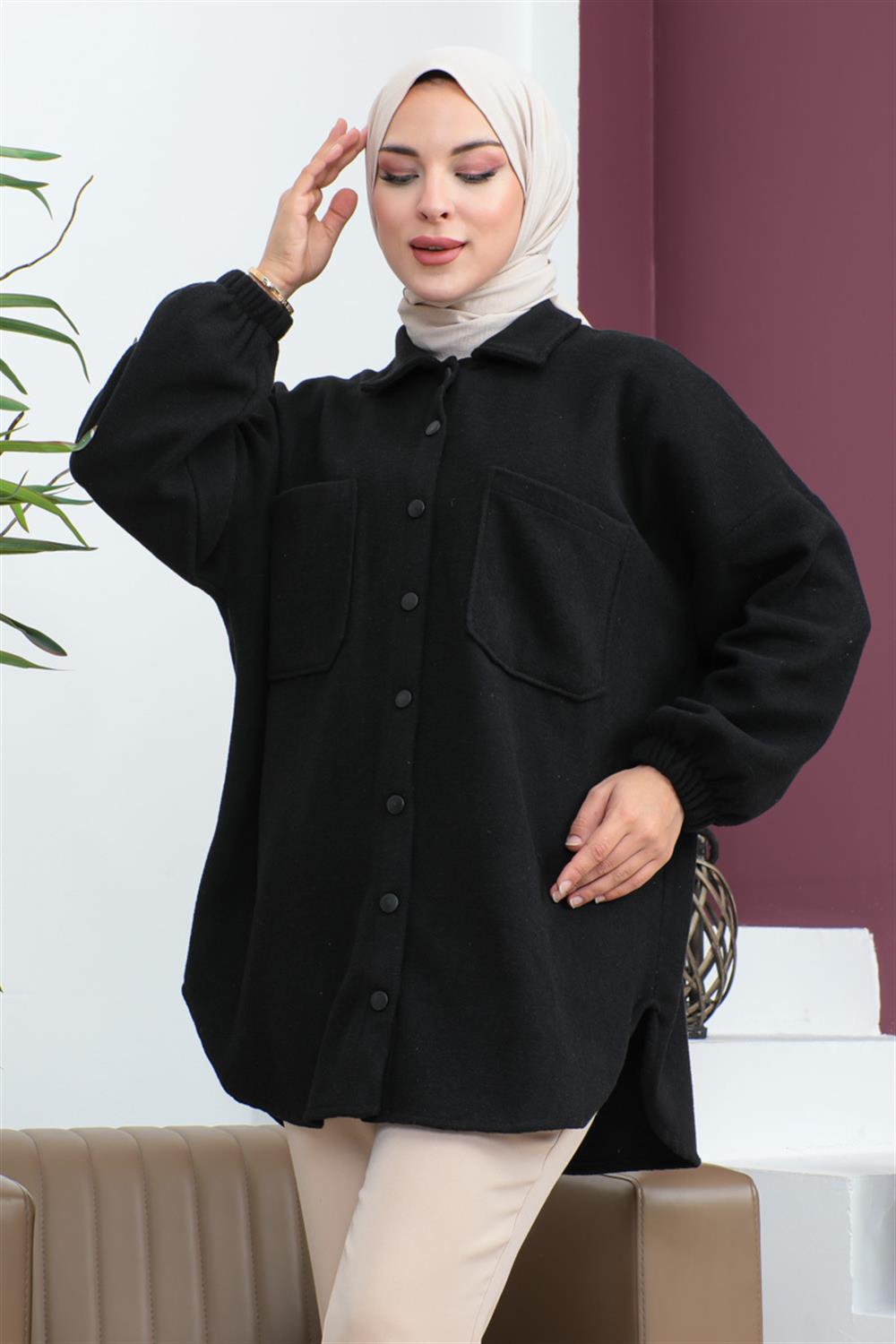 Yeni sezon tesettür moda ürünüdür.Gömlek yakadır.Kolları lastiklidir.Manşet düğmeleri aktiftir.Uzun kolludur.Ürün renginde konsept çekimlerinden dolayı ton farklılığı olabilir.