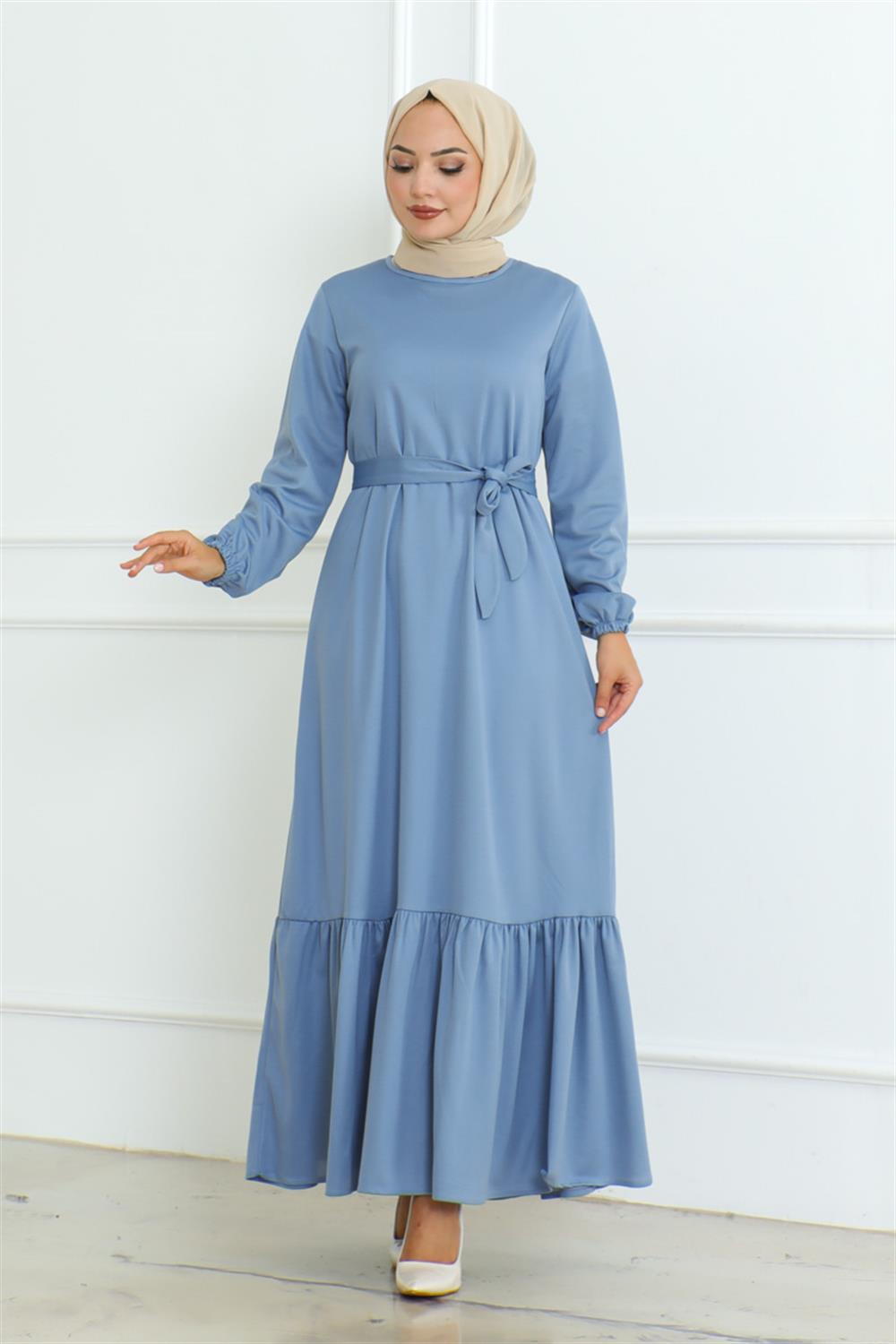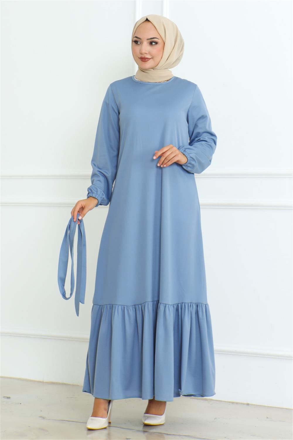 Eteği Fırfırlı Tesettür Elbise