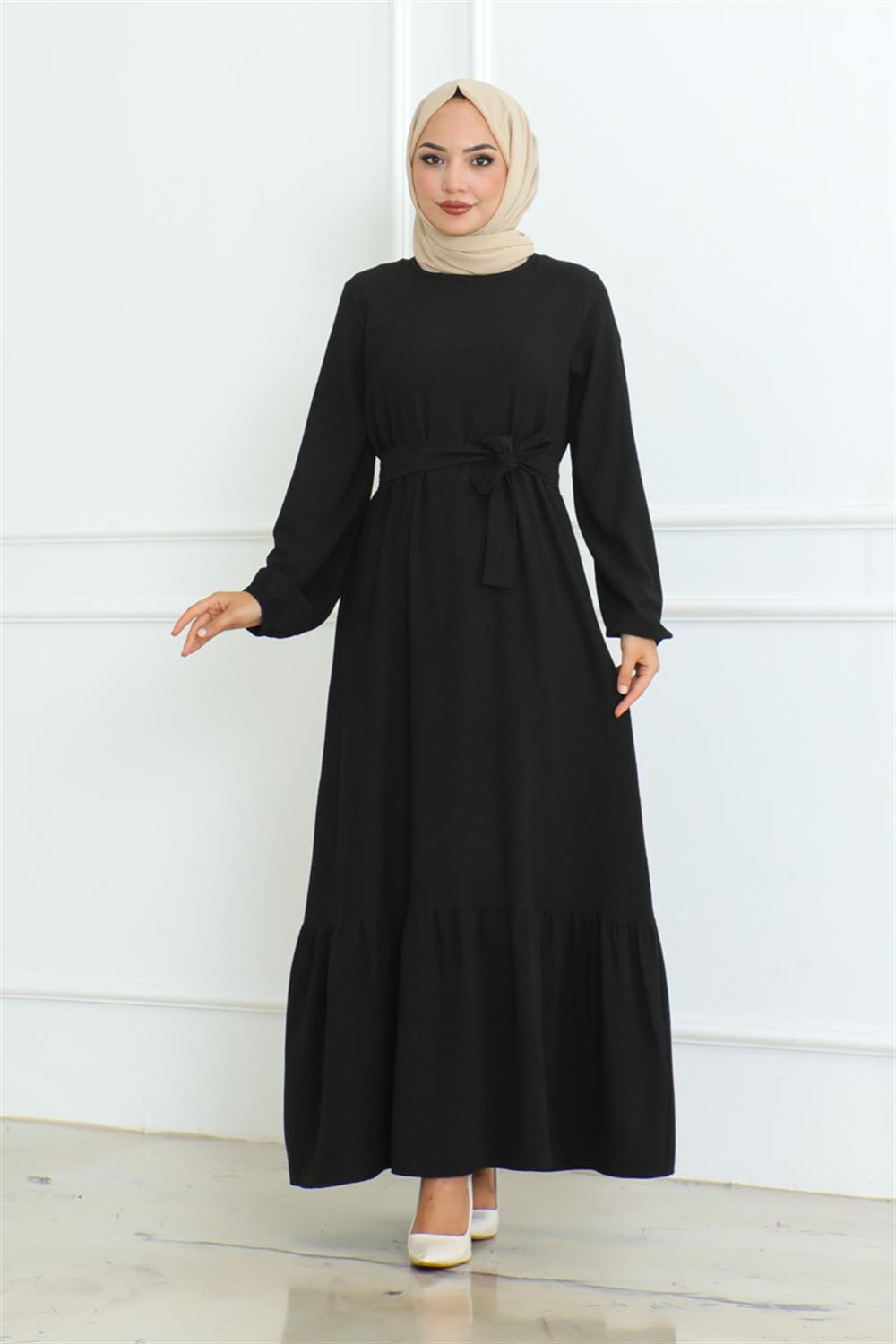 Eteği Fırfırlı Tesettür Elbise SİYAH