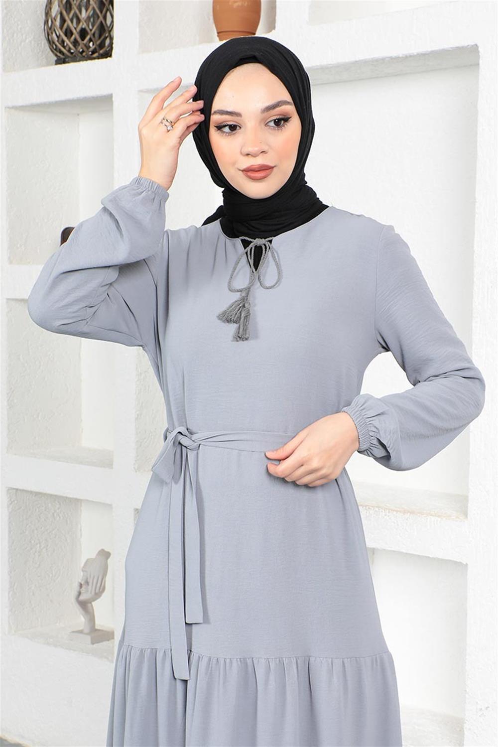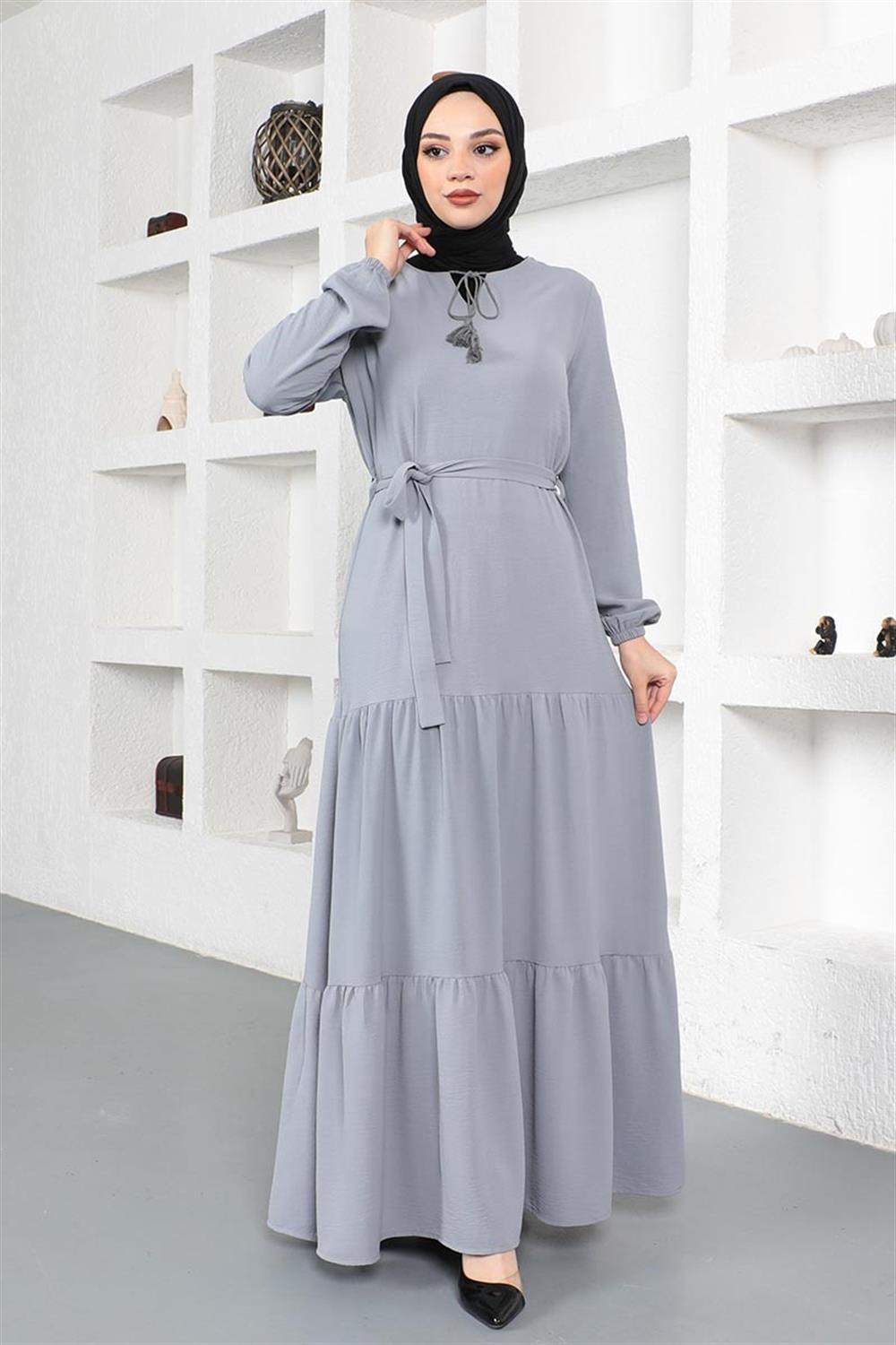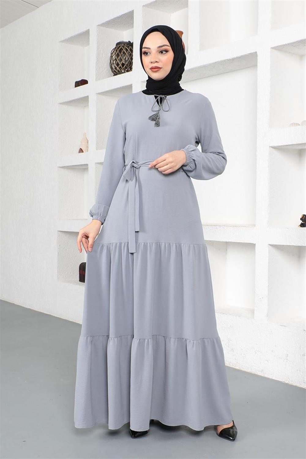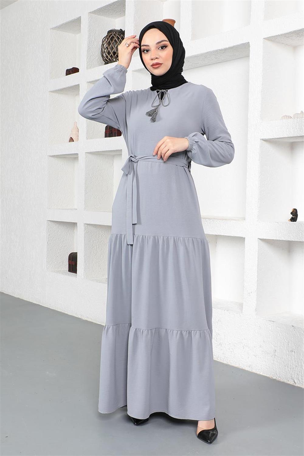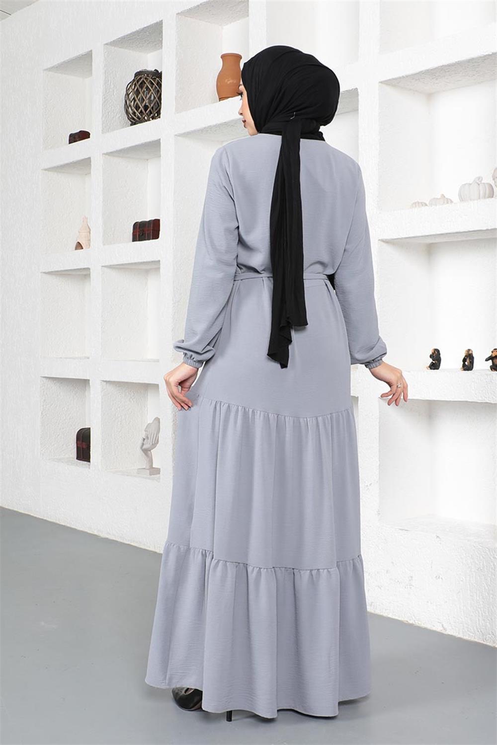 Eteği Katlı Aerobin Elbise GRİ