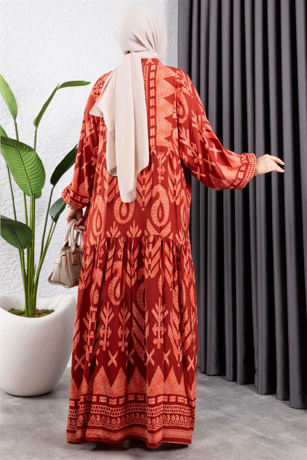 Etnik Desen Viskon Elbise