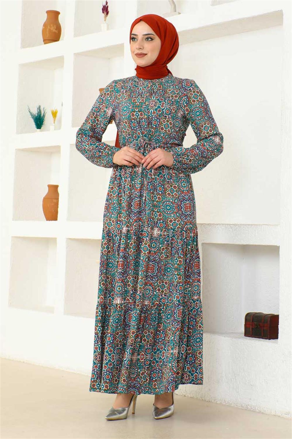 •  Etnik Desen Viskon Elbise