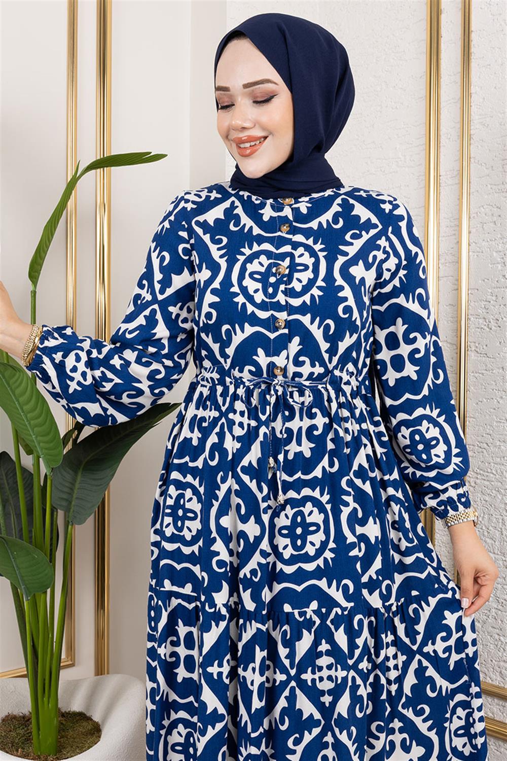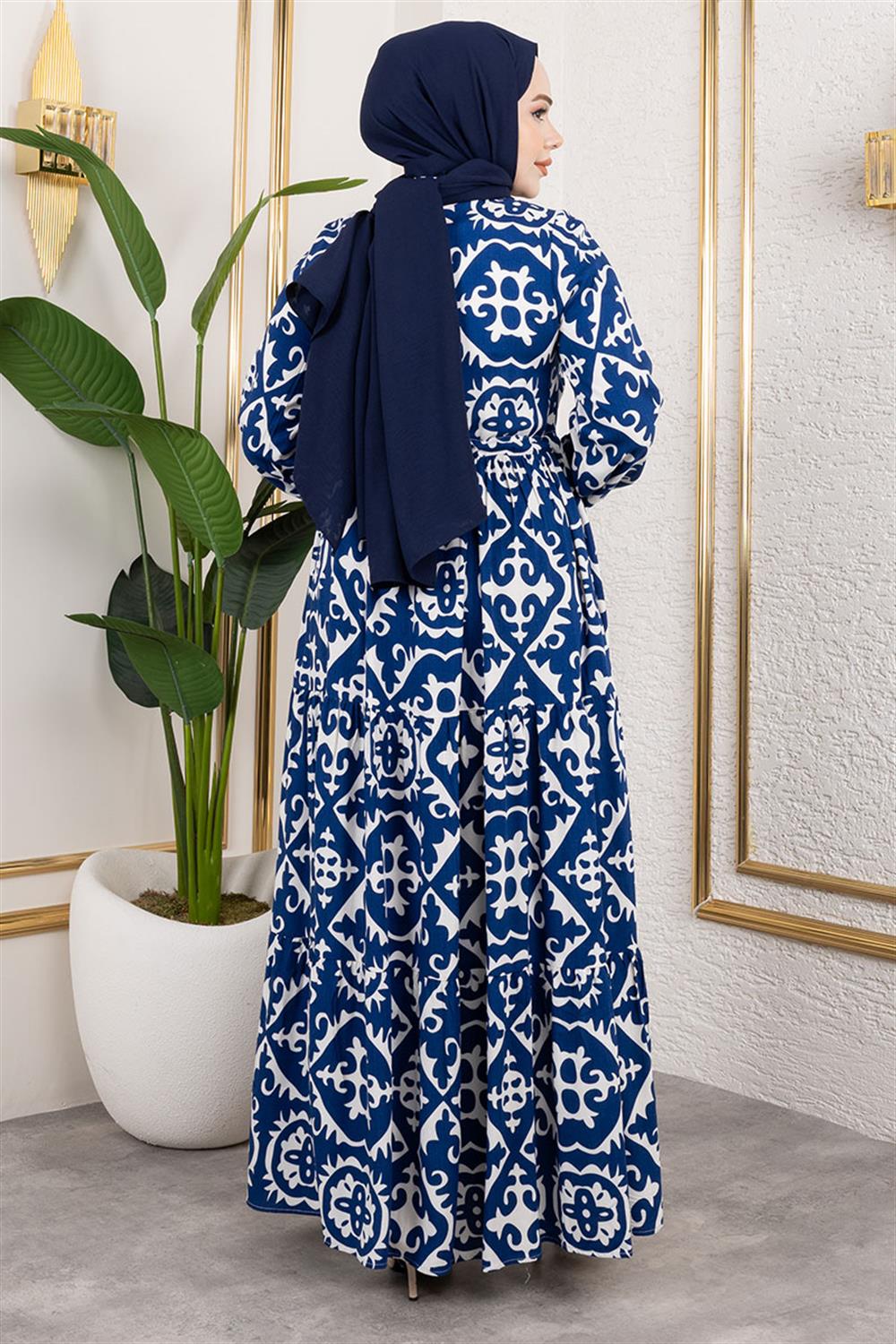 Etnik Desenli Viskon Elbise