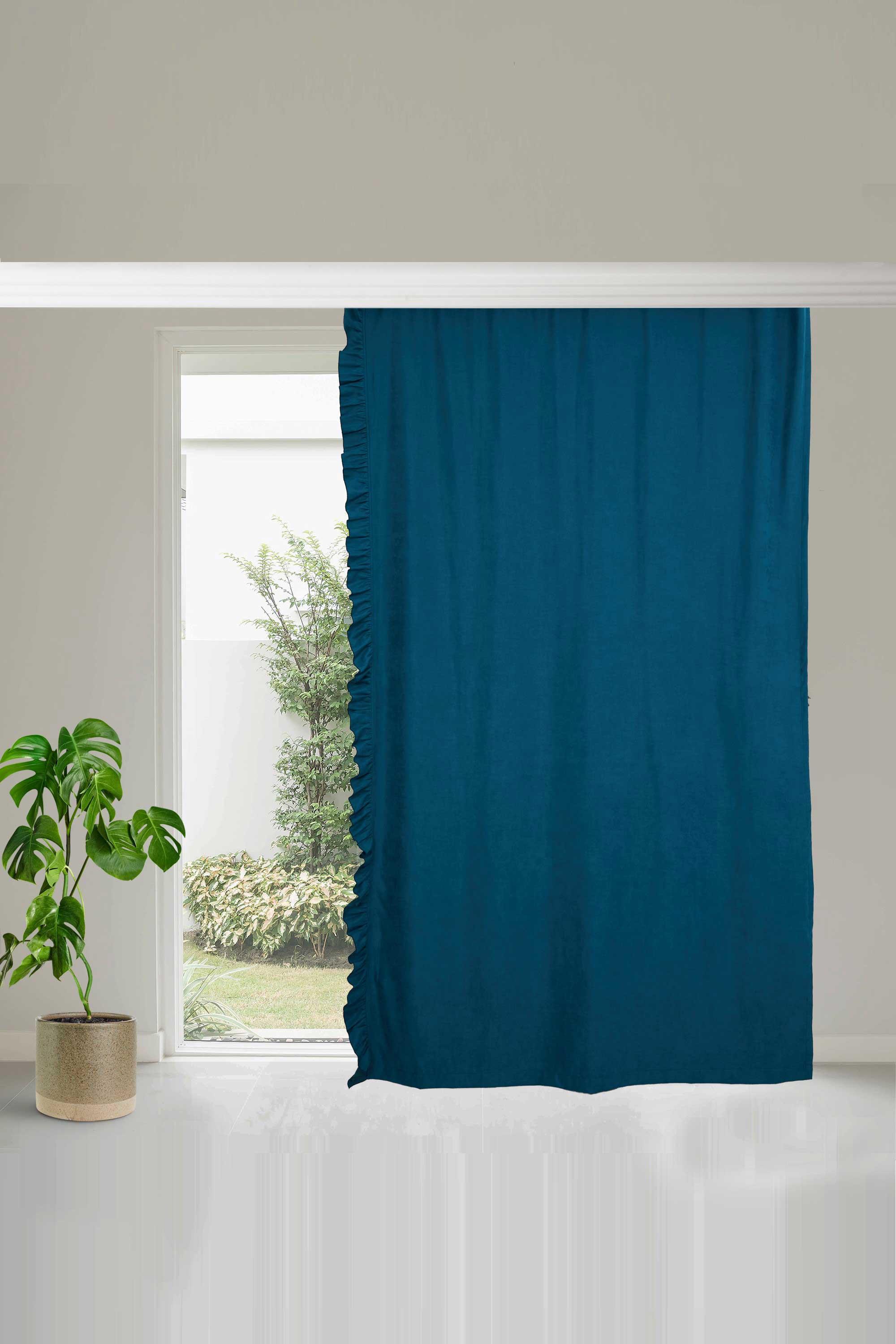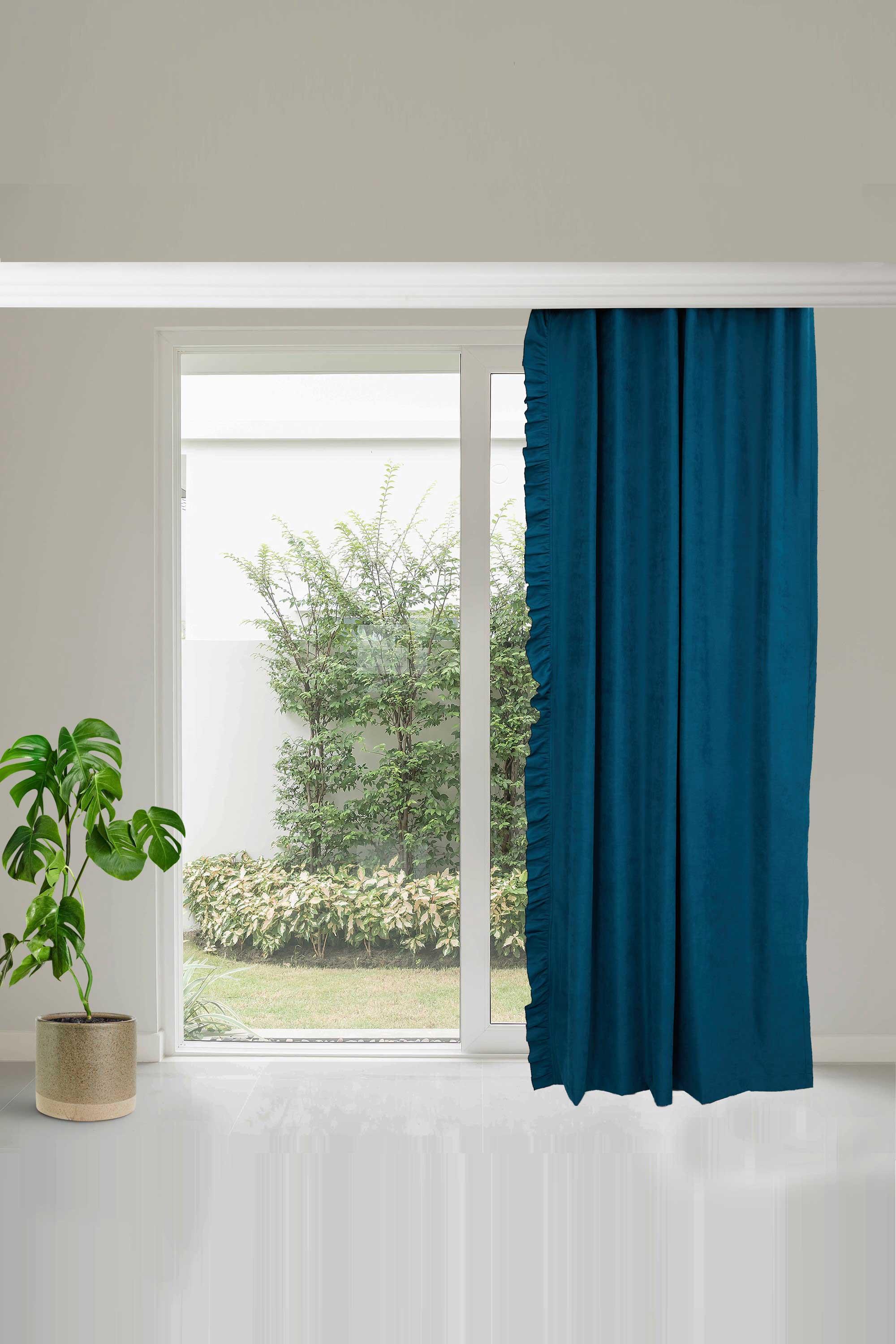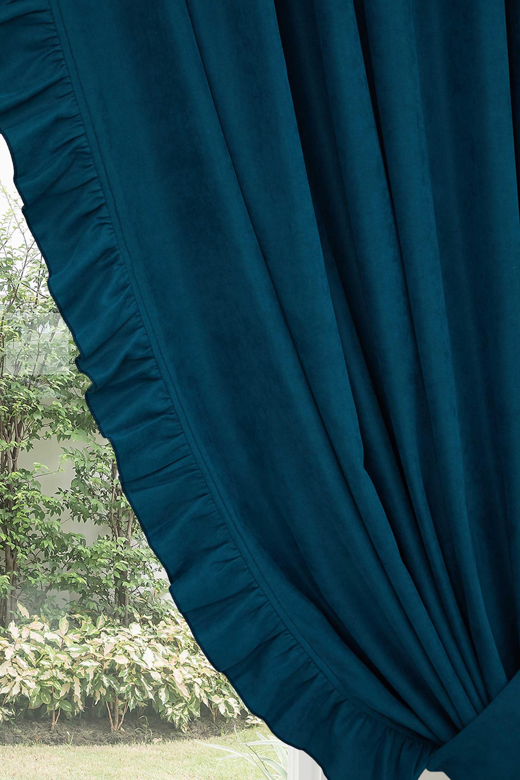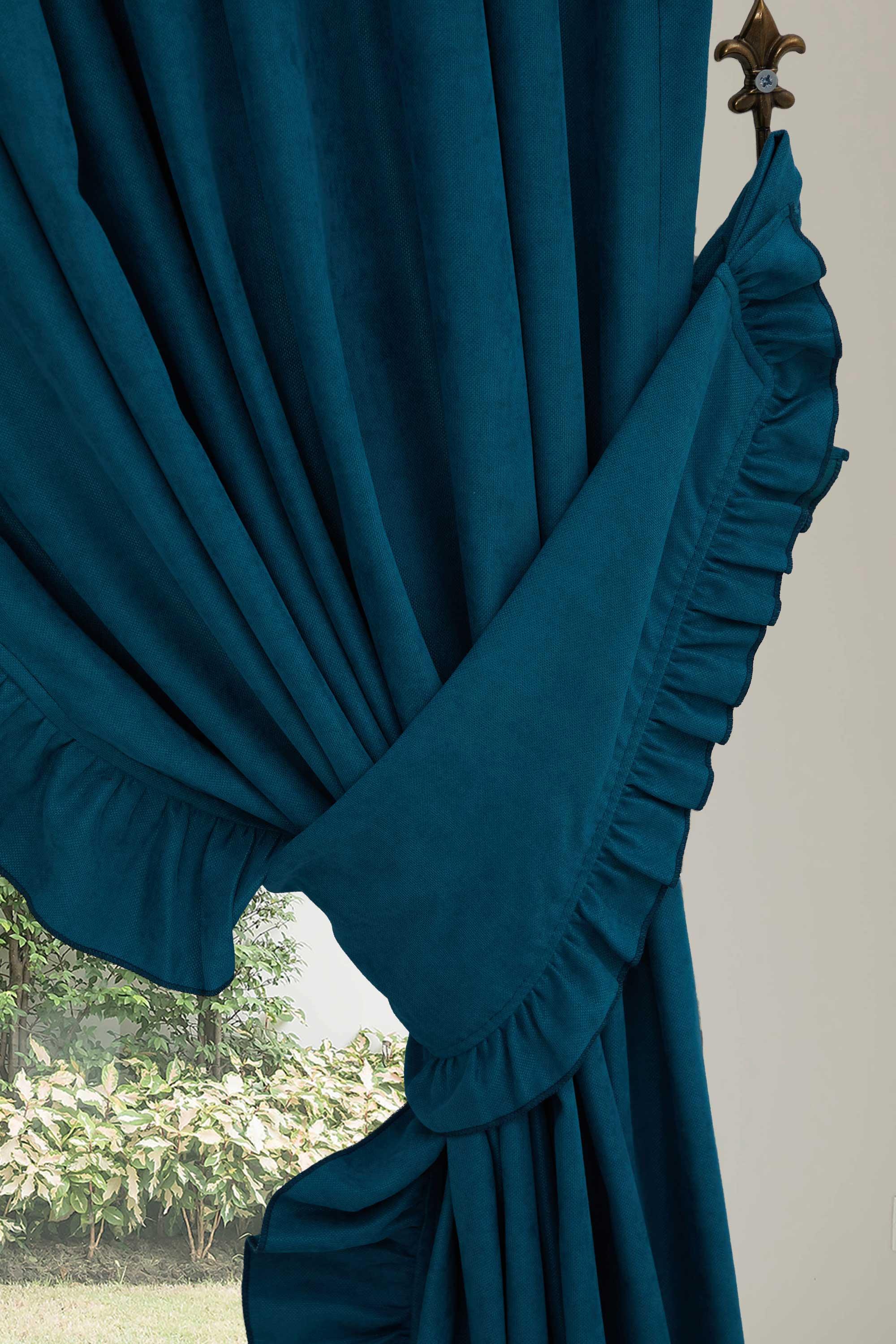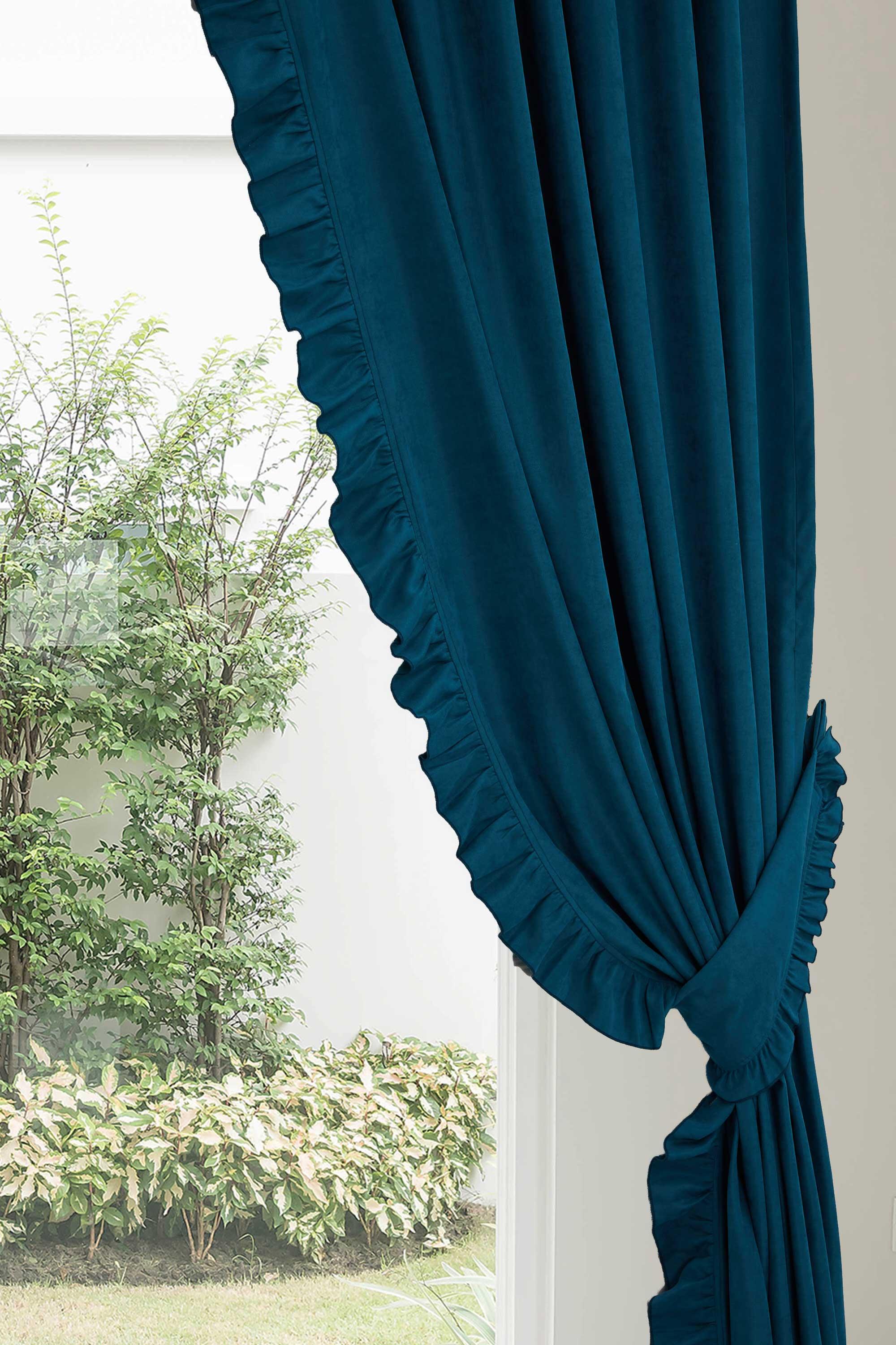 Fırfır Kenarlı Fon Perde Sağ Kenar245x140 cm,PR-2SAĞ Petrol Yeşili