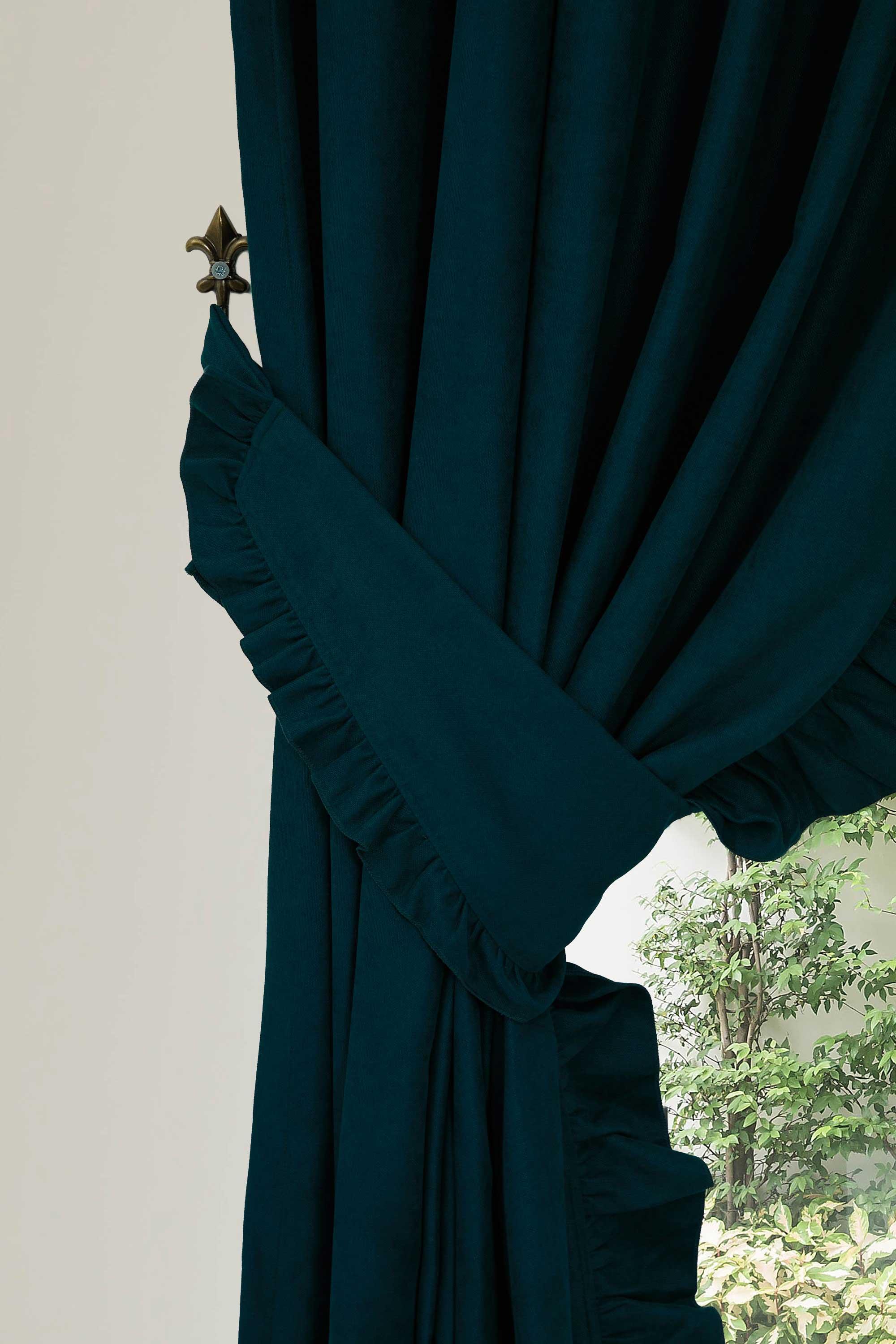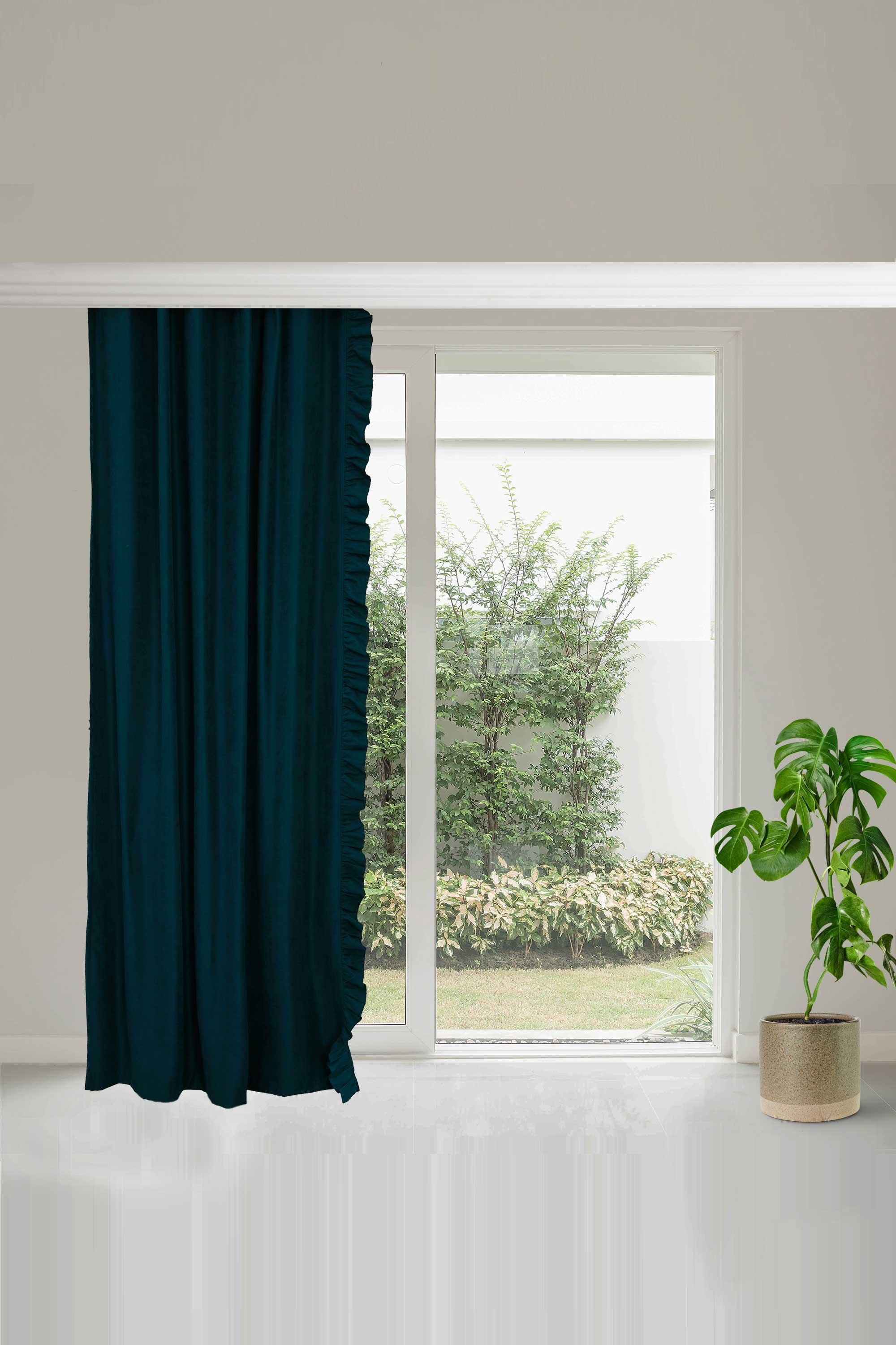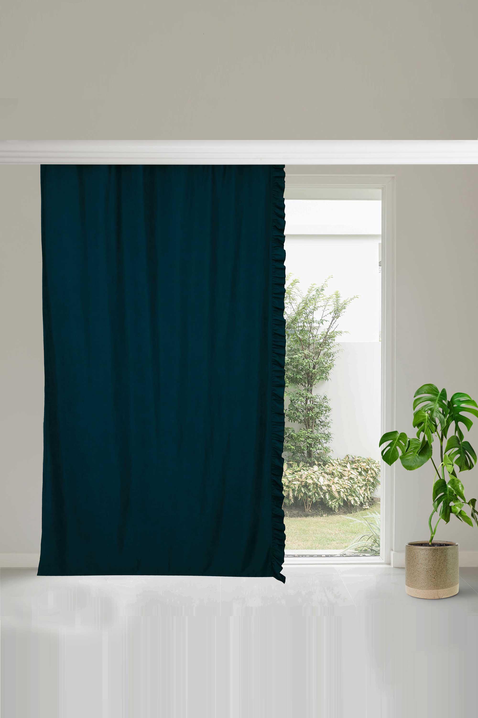 Fırfır Kenarlı Fon Perde Sol Kenar245x140 cm,PR-2SOL Petrol Mavisi
