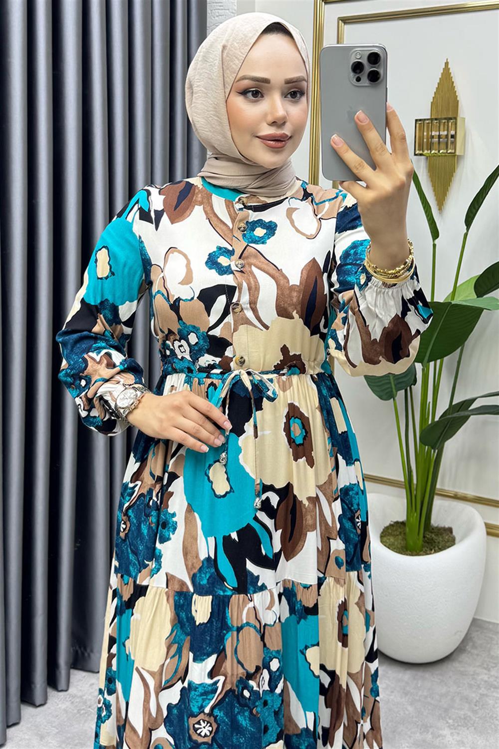 Beli Bağcıklı Viskon Elbise, dört mevsim rahatlıkla kullanabileceğiniz, tesettür tasarımına sahip şık bir seçenektir. Yumuşak viskon kumaşı, bisiklet yakası ve yarım düğmeli ön kısmı ile modern ve fonksiyonel bir görünüm sunar. Elde yıkama önerilen bu elbise, astarsız yapısıyla hafif ve konforlu bir kullanım sağlar. Bağcıklı beli sayesinde vücuda mükemmel uyum sağlayan bu model, manşet lastikli kolları ile de kullanışlıdır.