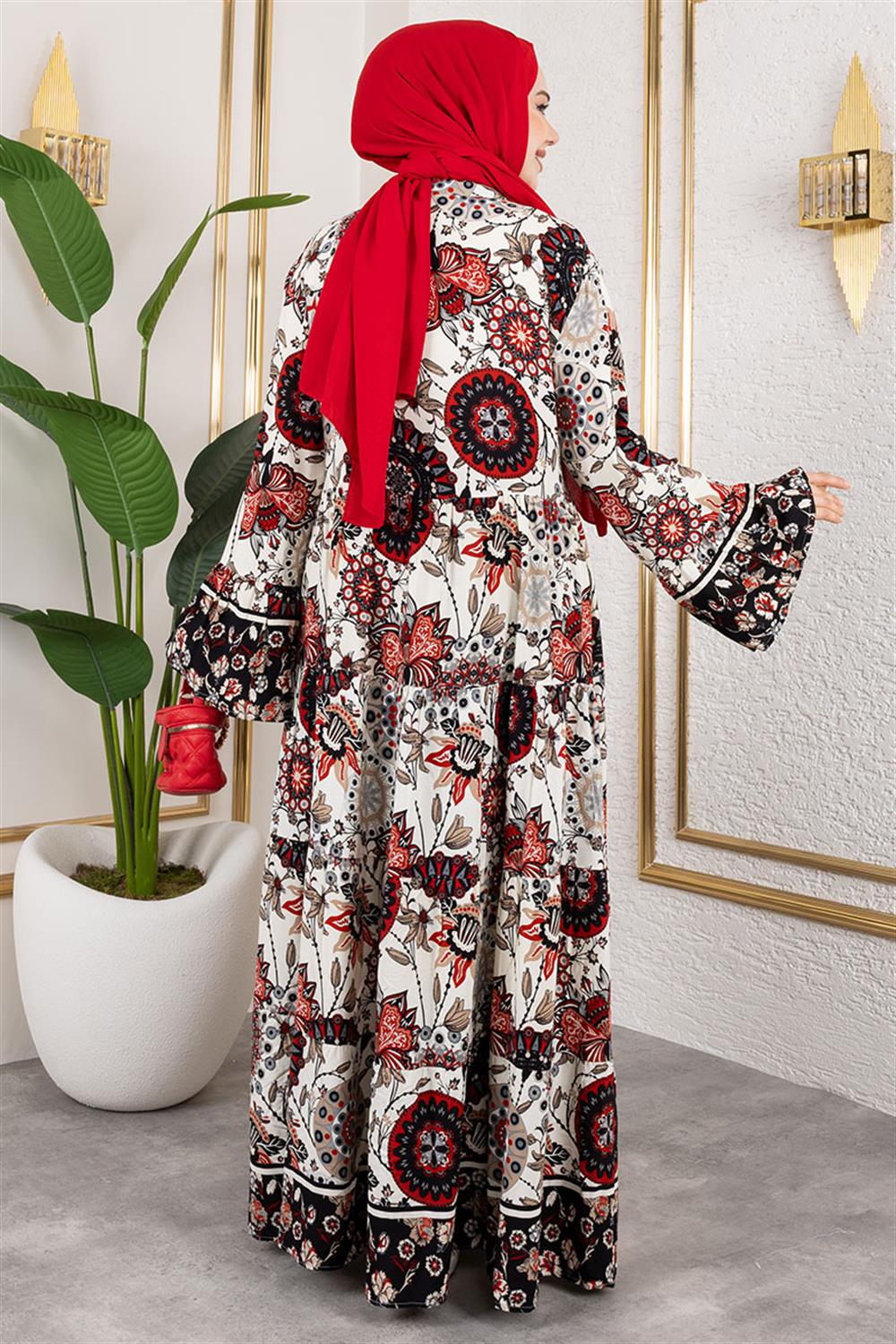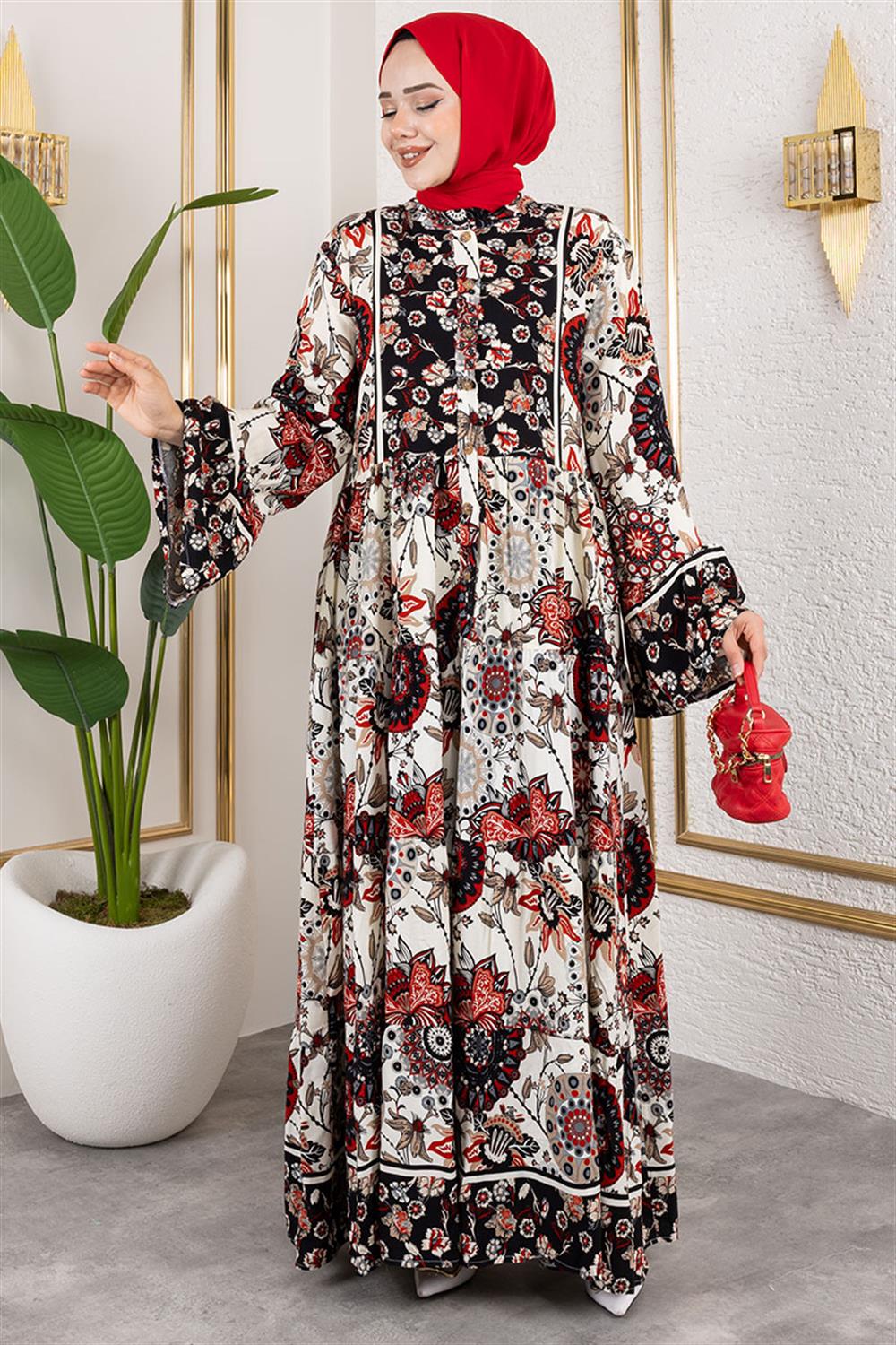 Viskon kumaştan üretilmiştir. Hakim yaka detayı ile rahat kullanıma sahiptir.