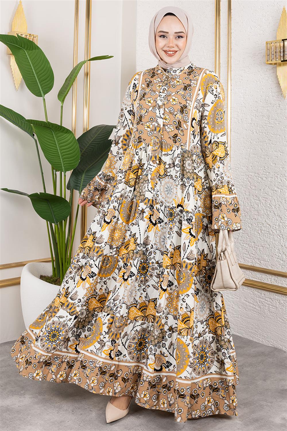 Geniş Kol Tesettür Elbise VİZON